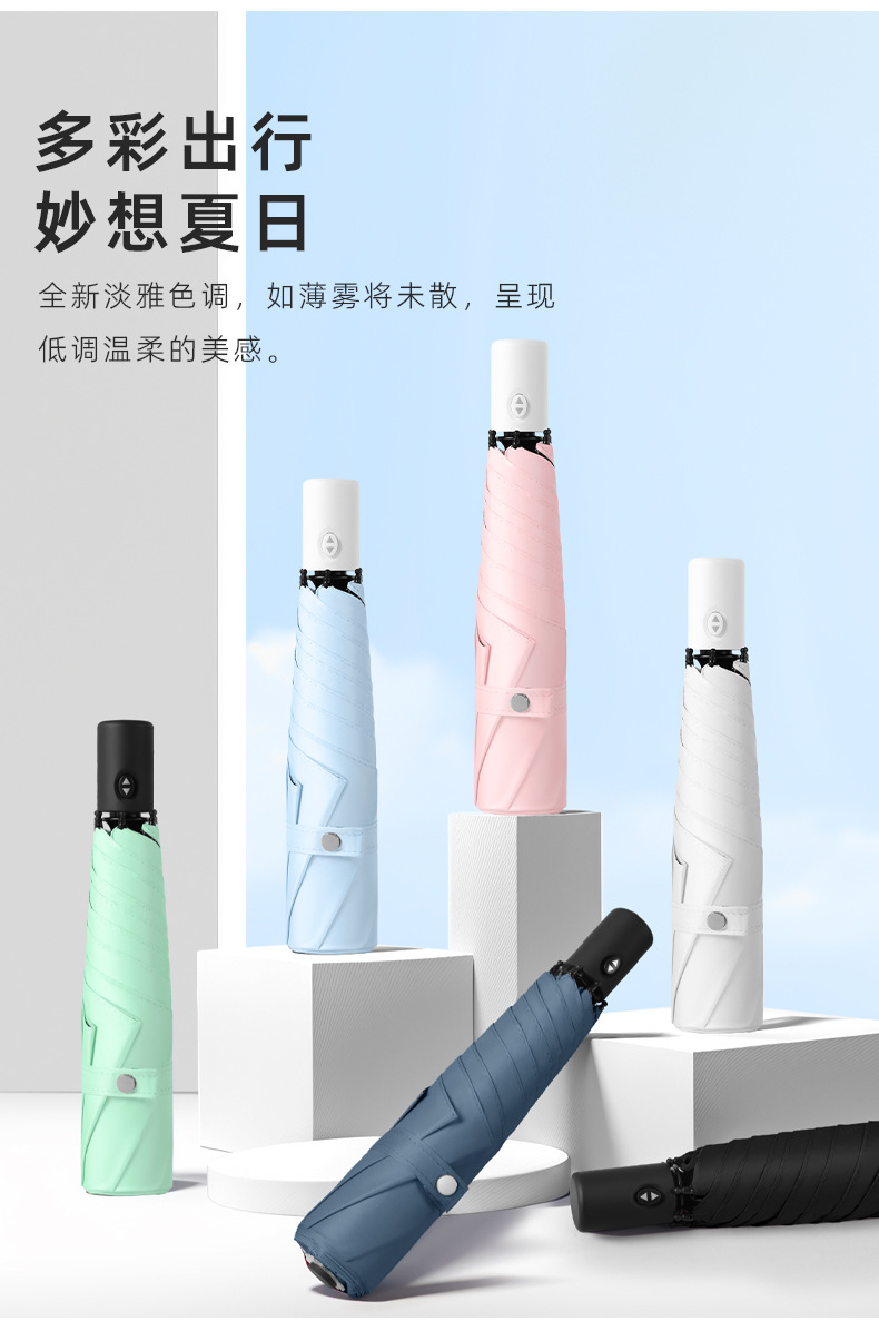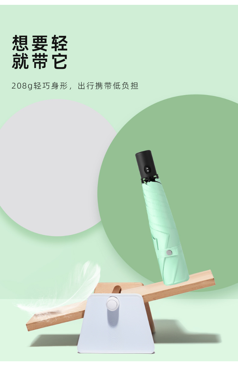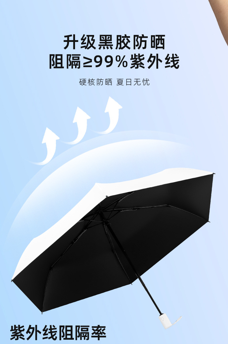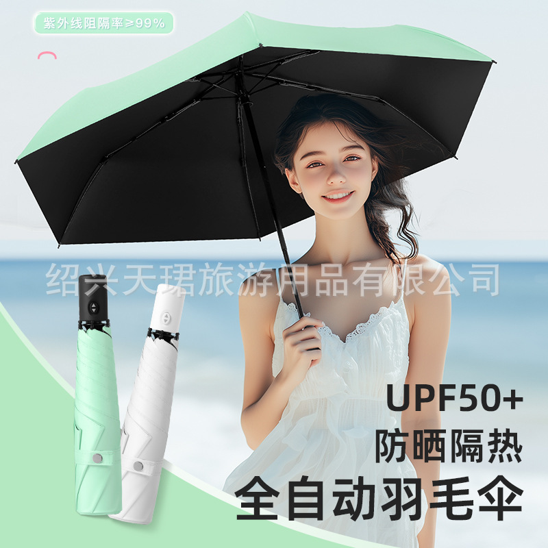 全自动超轻羽毛伞防晒防紫外线跨境晴雨两用三折黑胶晴雨伞LOGO