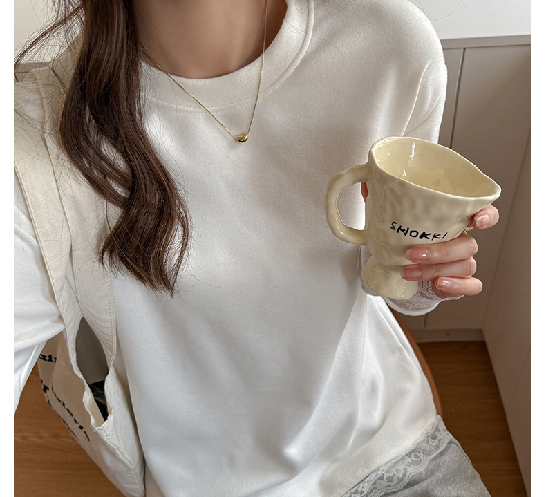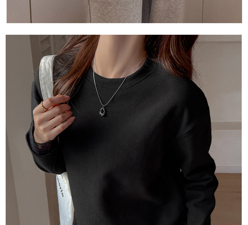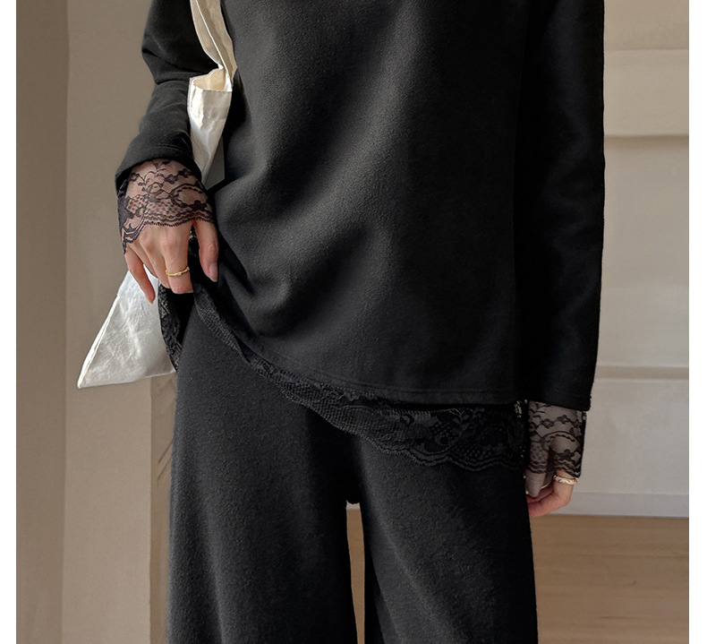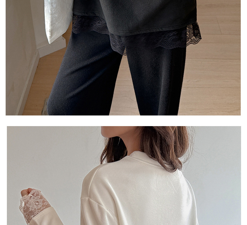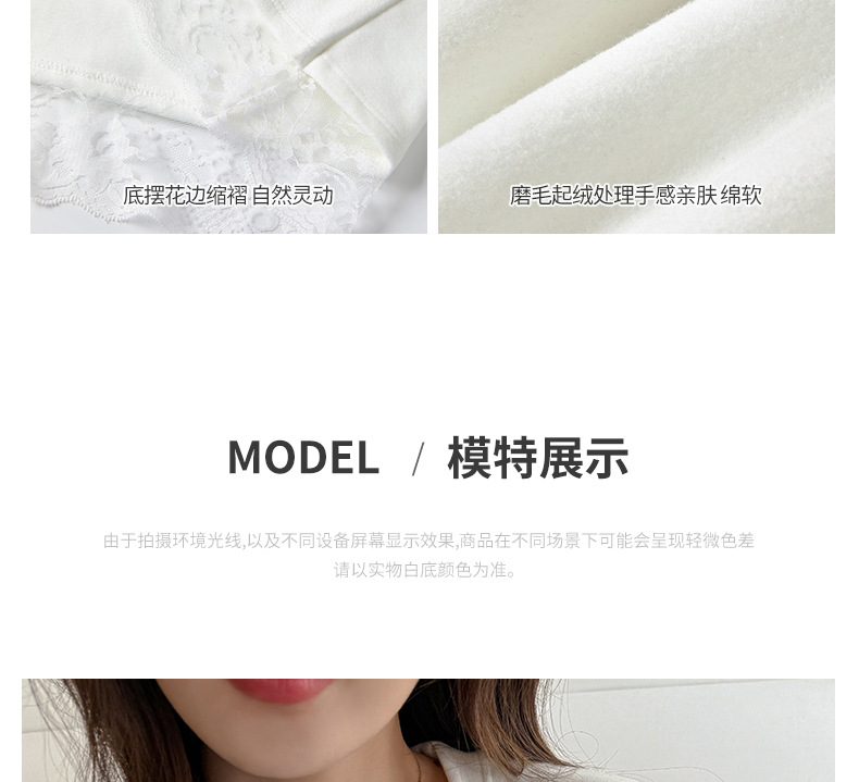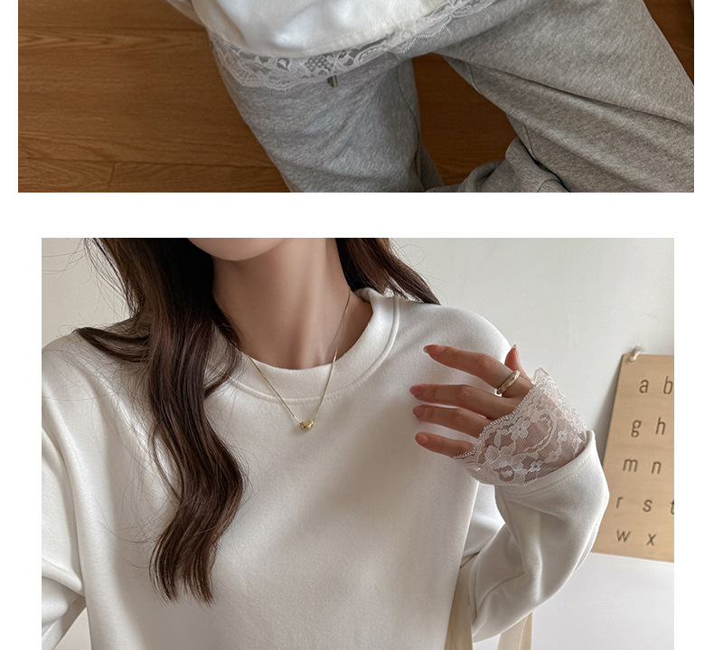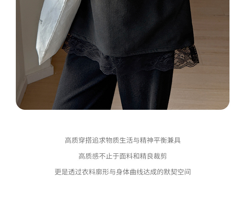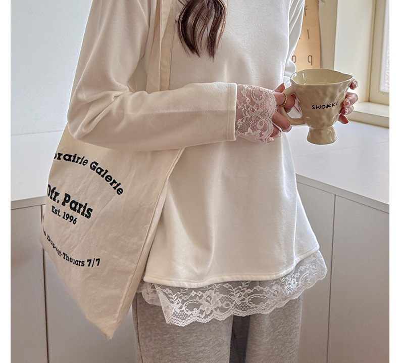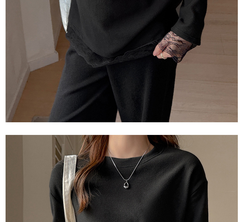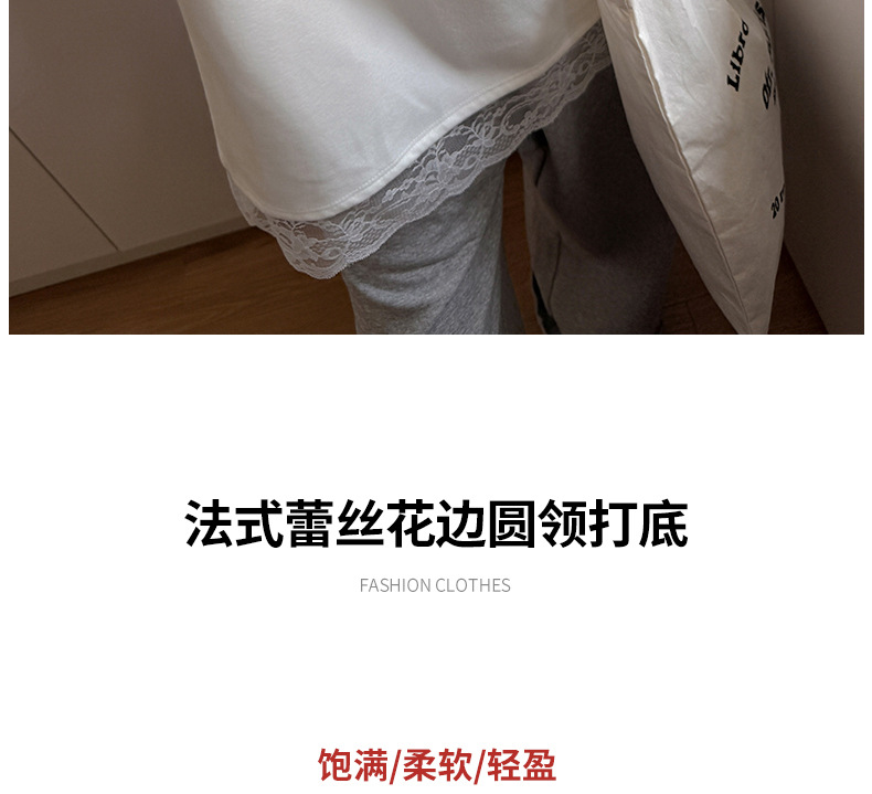 秋冬季蕾丝拼接德绒加厚磨毛德绒圆领长袖t恤宽松版设计感打底衫