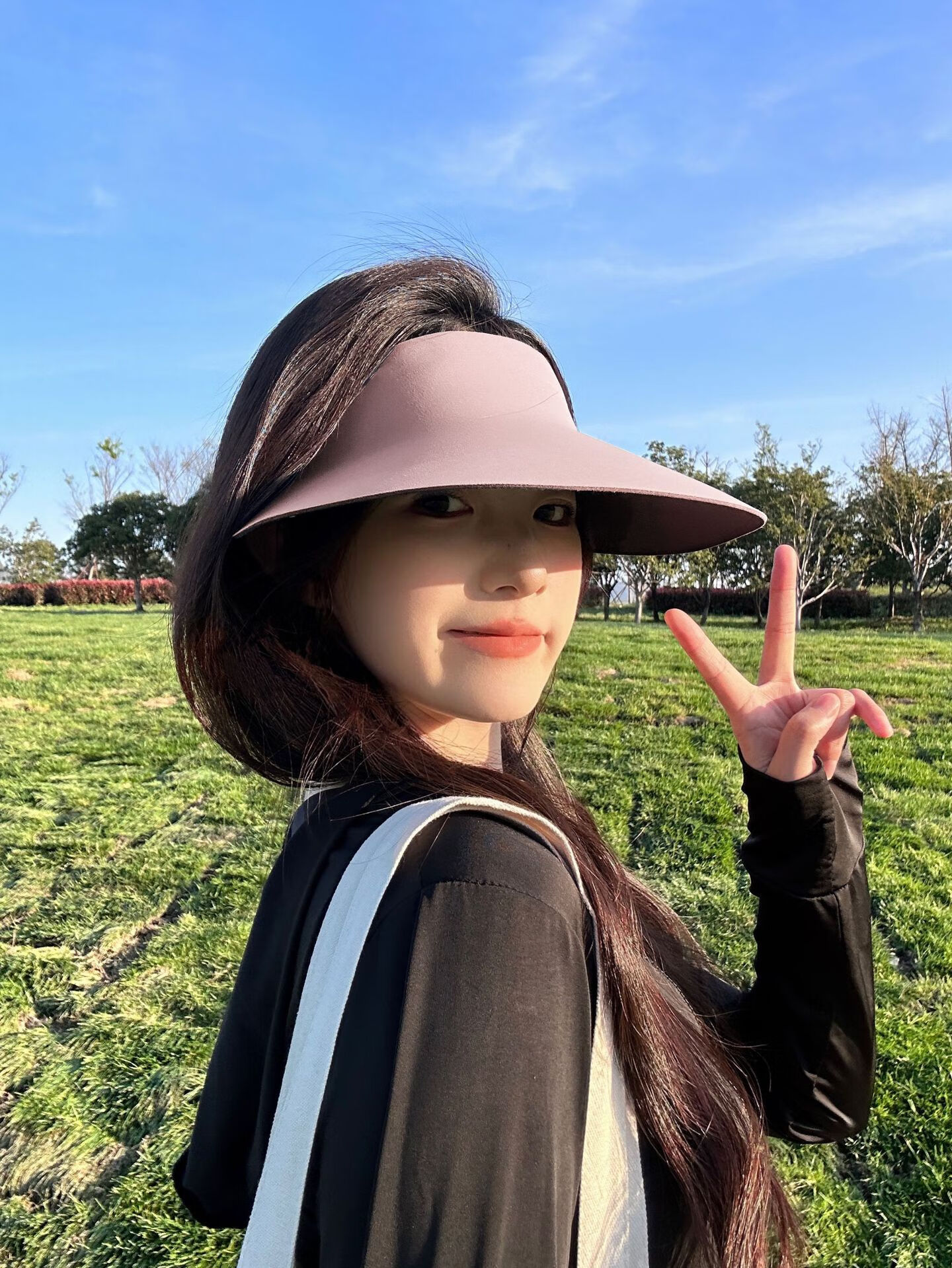 防晒帽子女遮脸太阳帽户外运动骑车无痕科技空顶帽防紫外线一体帽