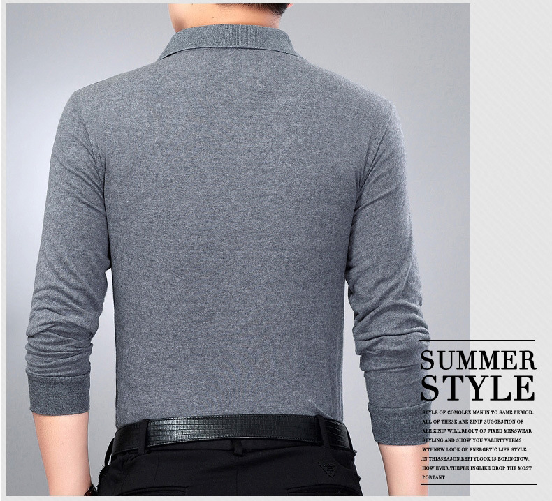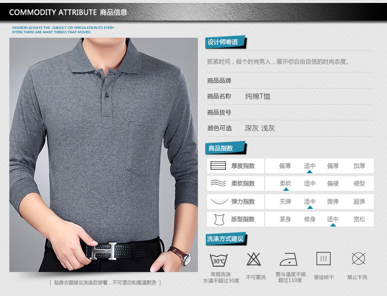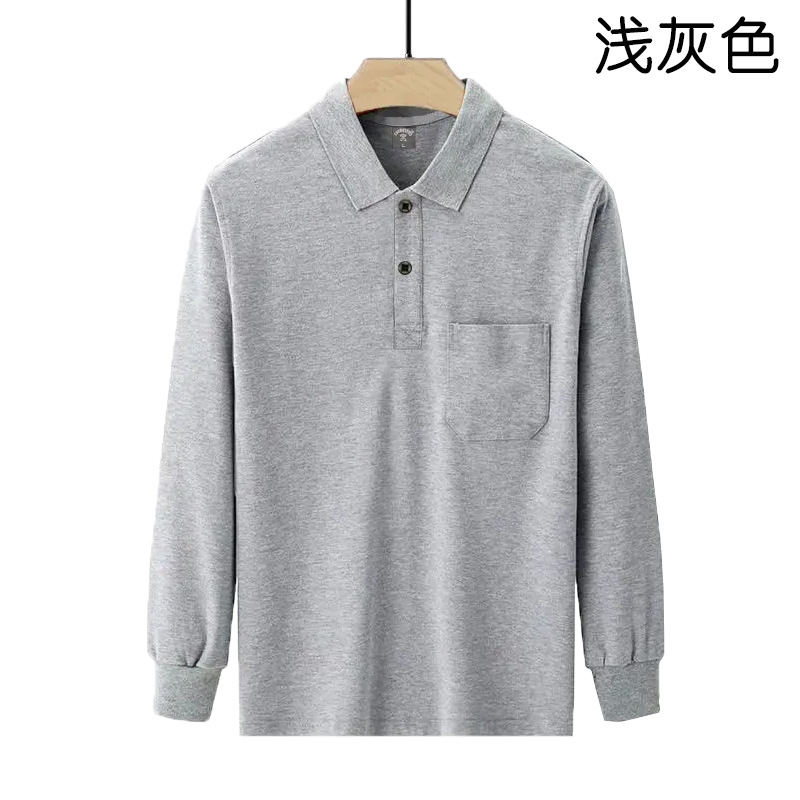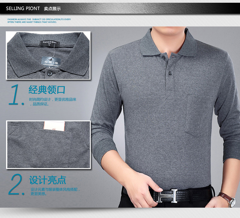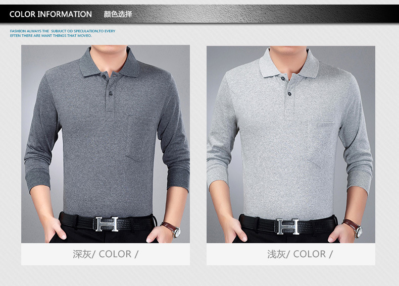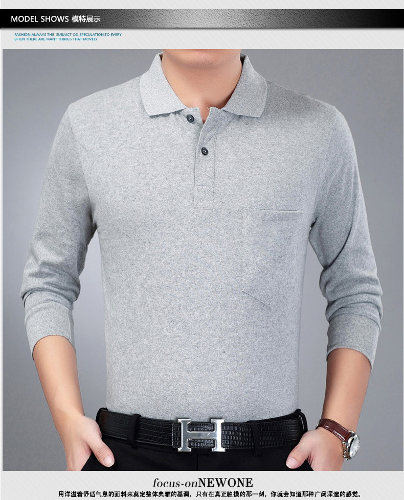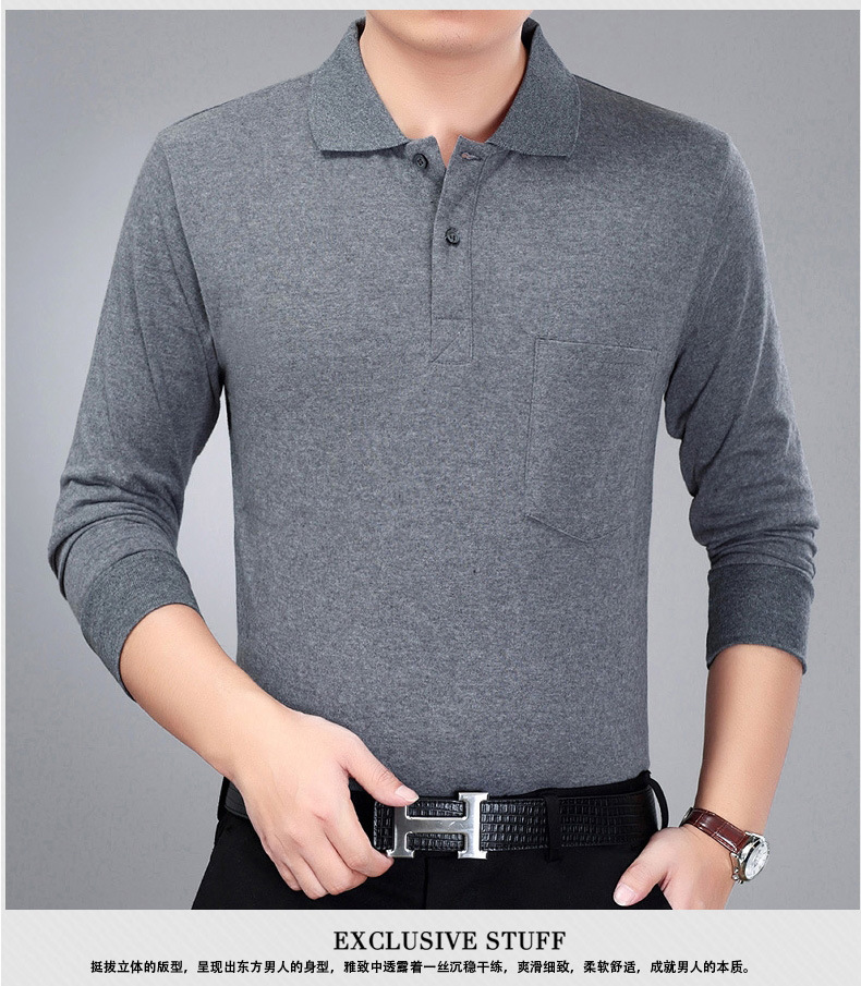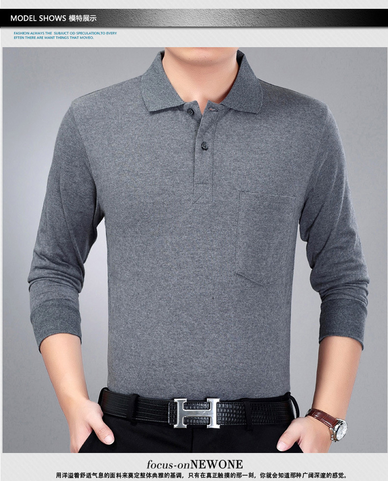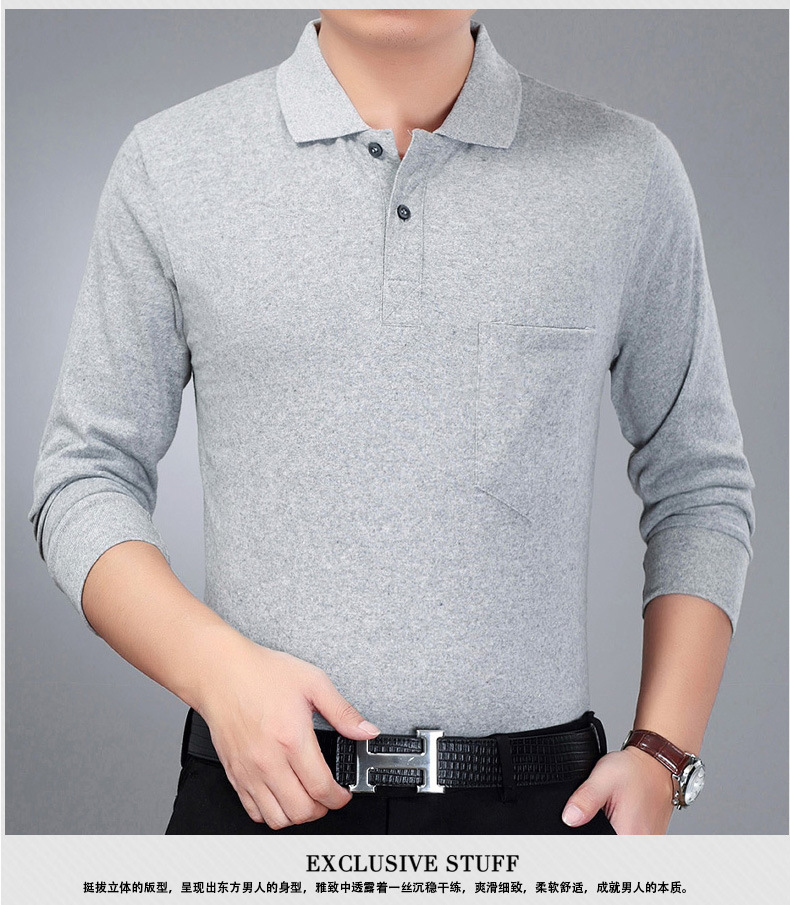 春秋款男士长袖T恤男中老年爸爸装净色T恤宽松大码纯色休闲T恤衫