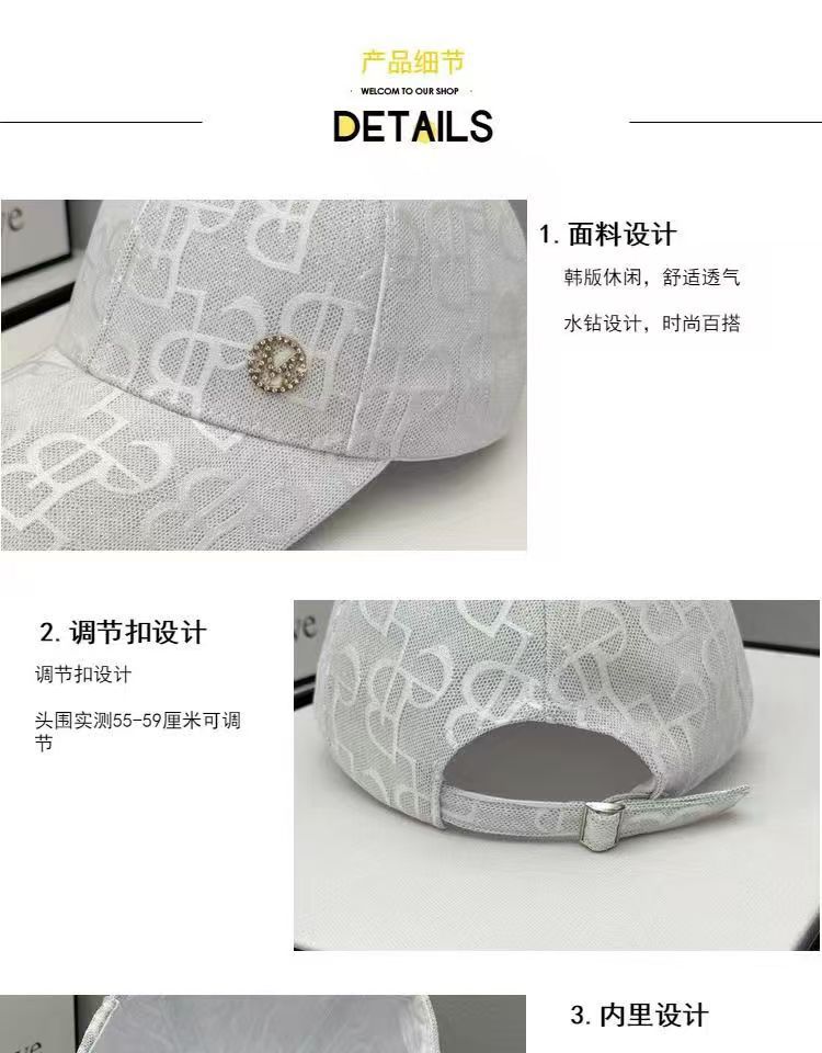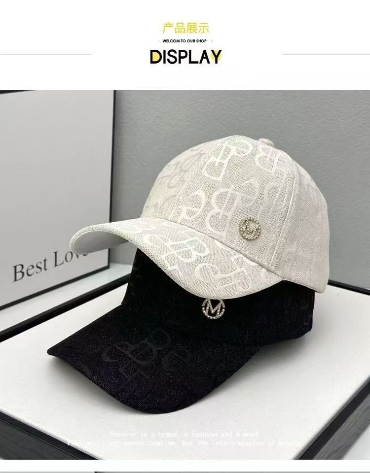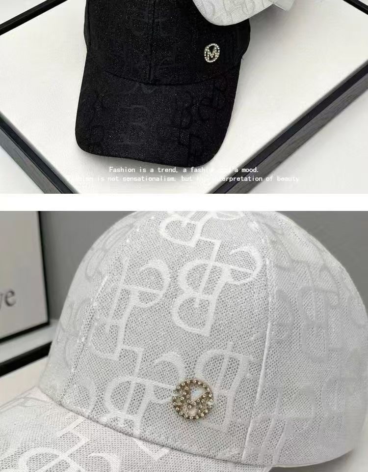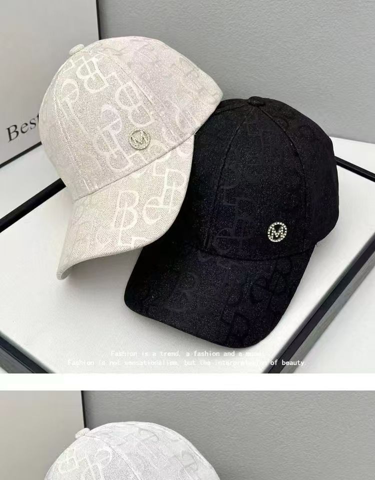 潮牌镶钻M标时尚鸭舌帽子女字母提花春夏季休闲防晒遮阳棒球帽
