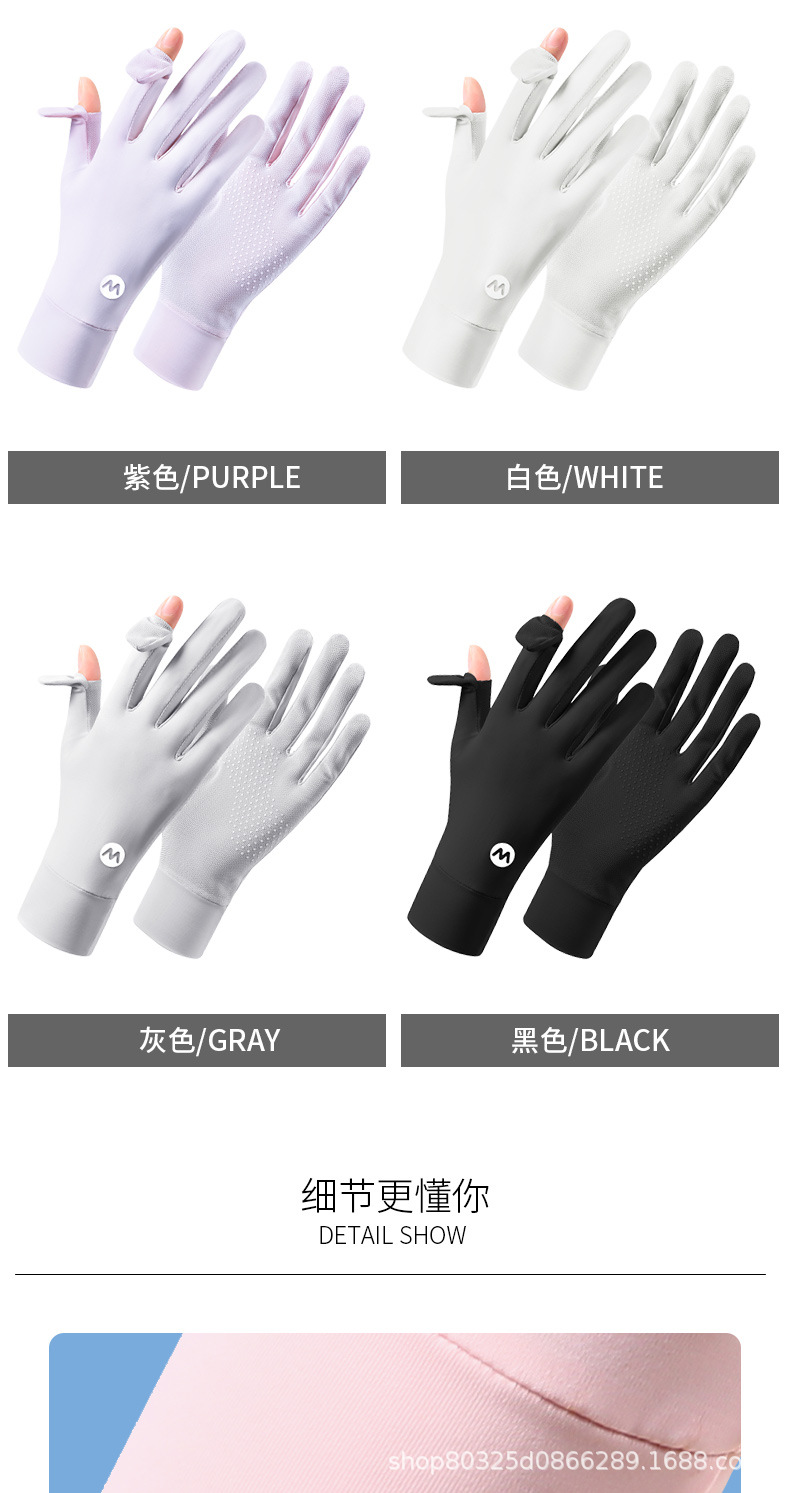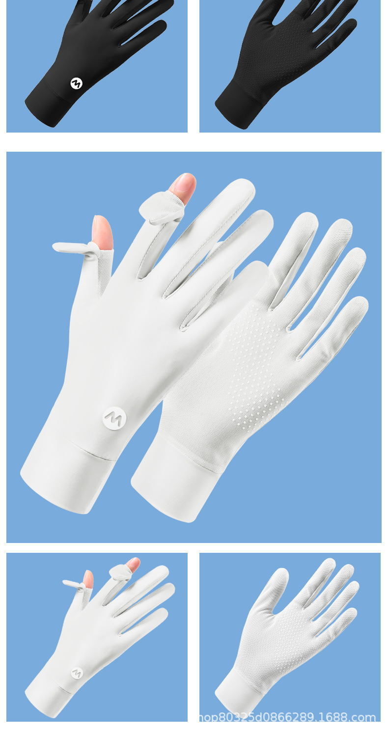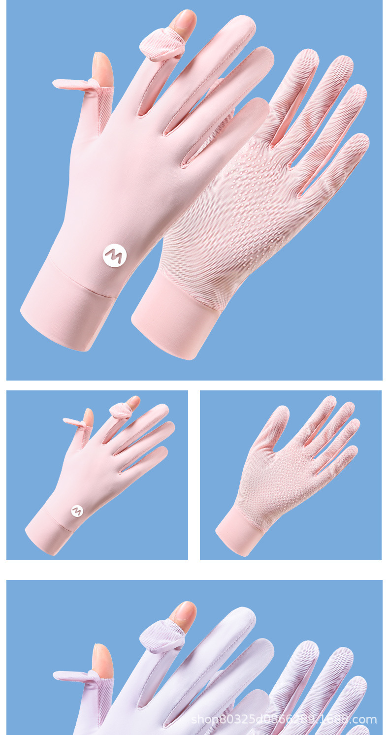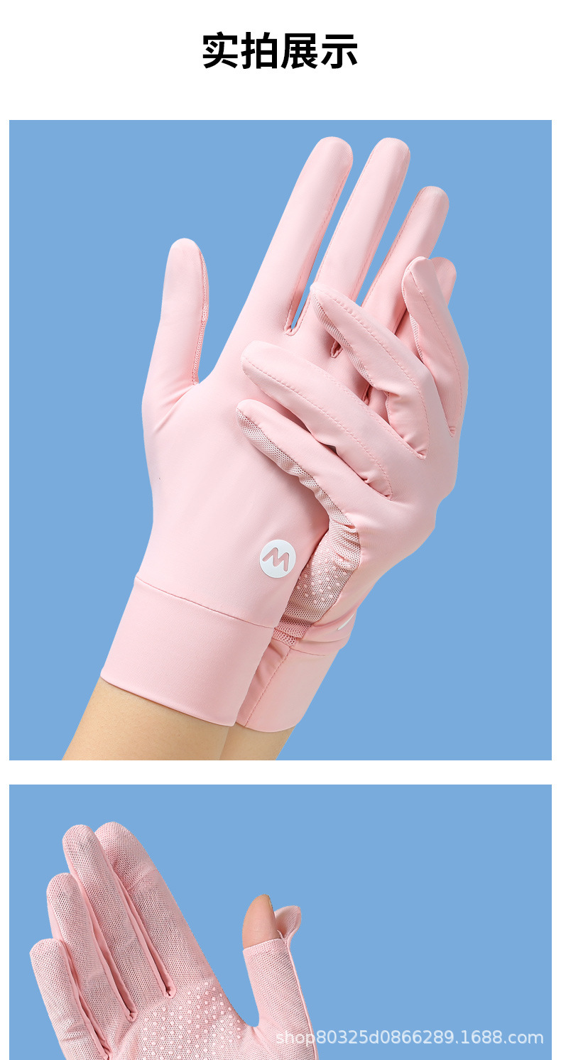 翻盖冰丝手套女士防晒夏季防紫外线透气防滑采茶美甲骑行开车露指