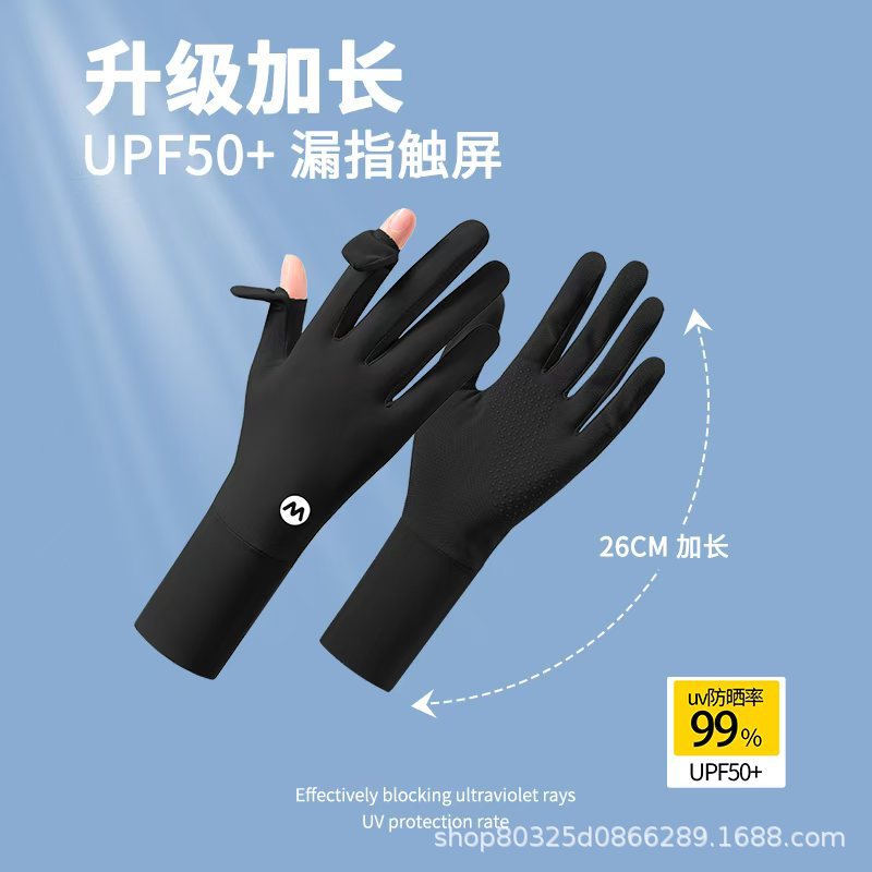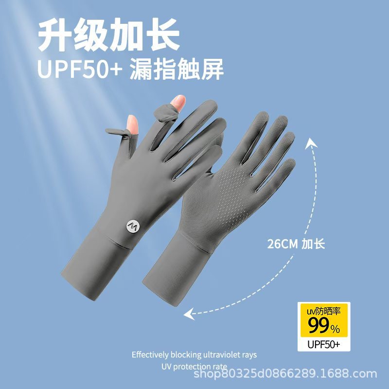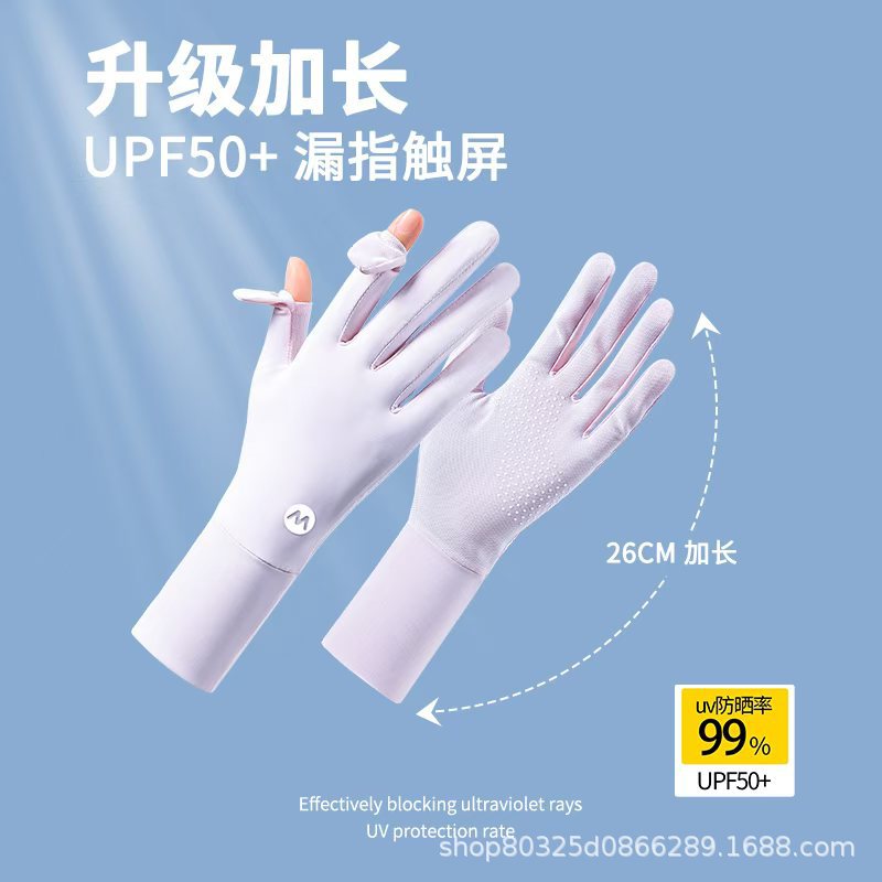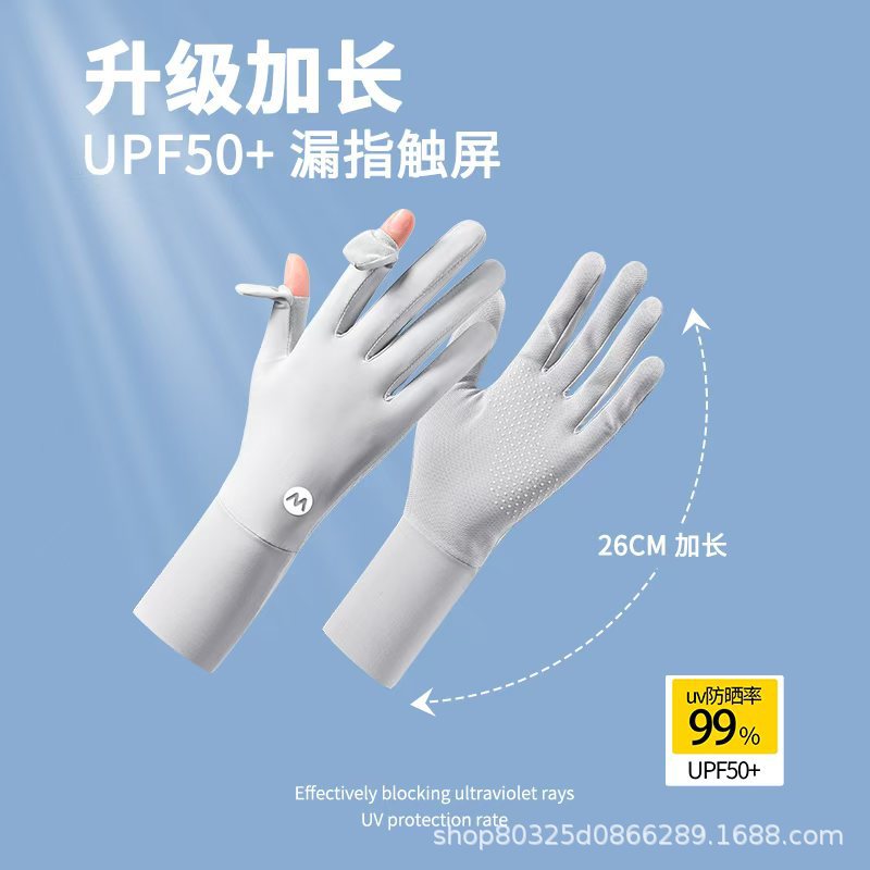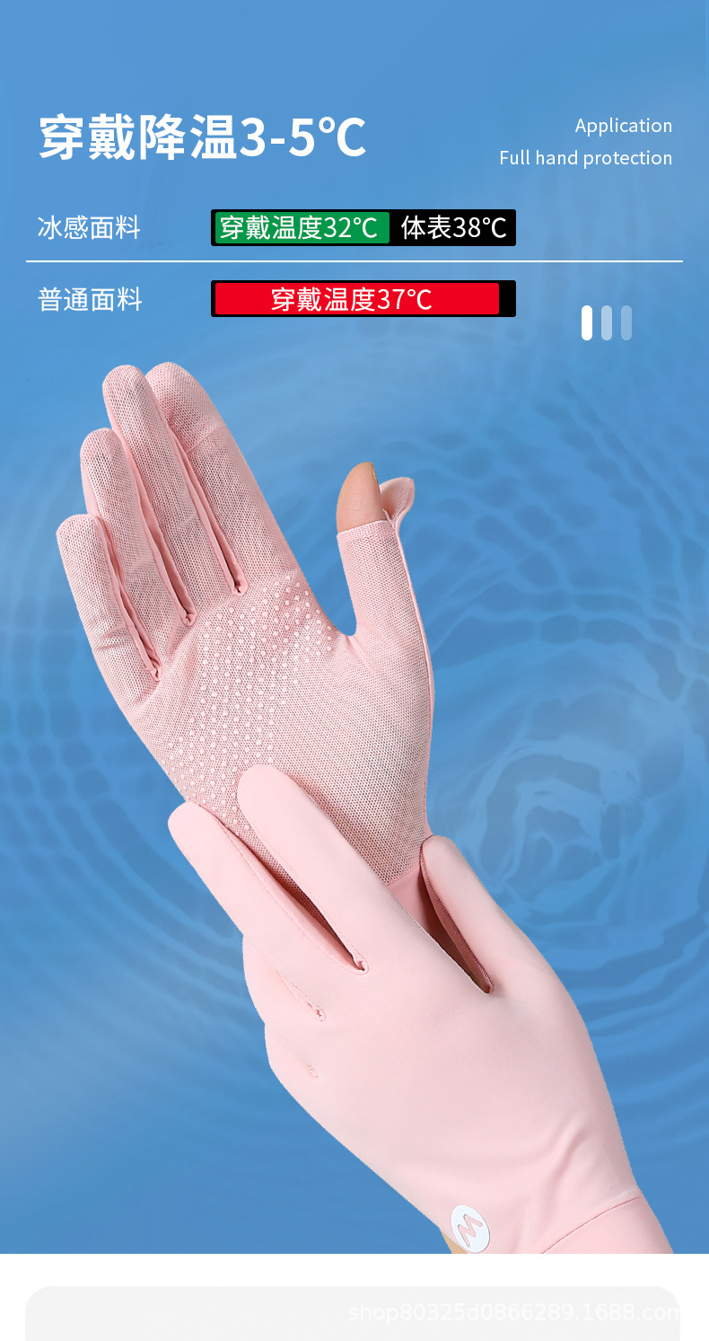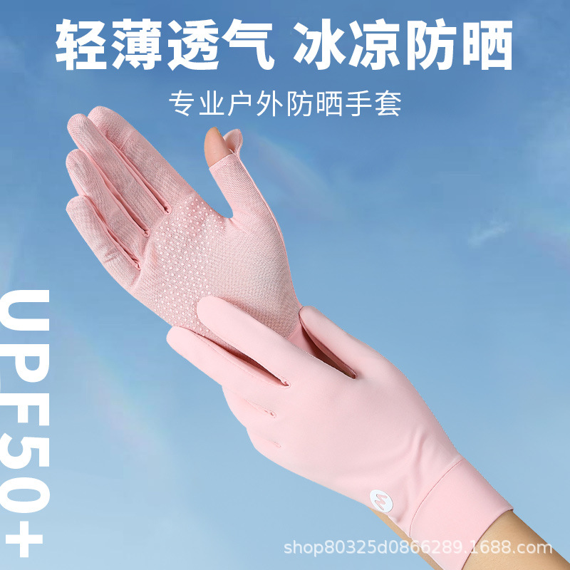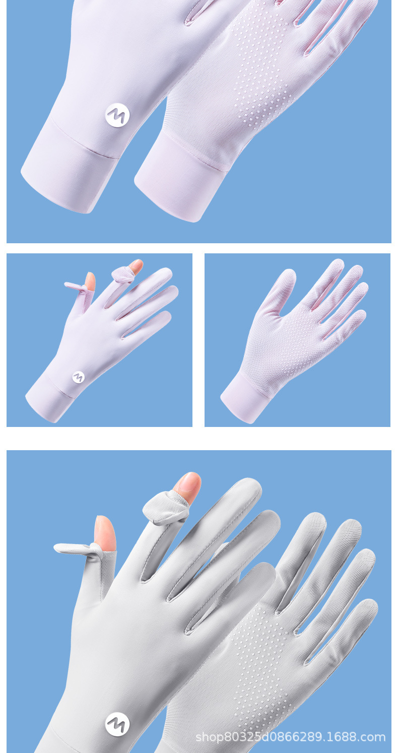 翻盖冰丝手套女士防晒夏季防紫外线透气防滑采茶美甲骑行开车露指