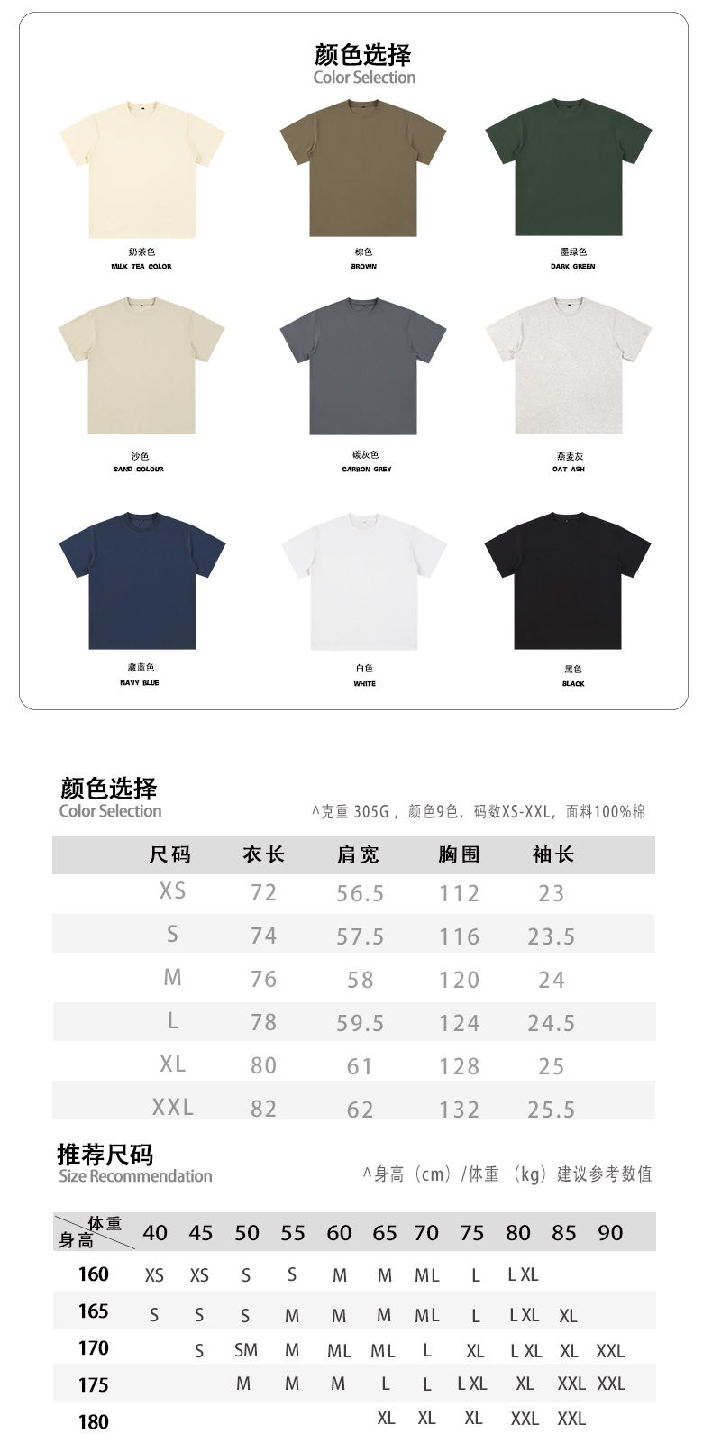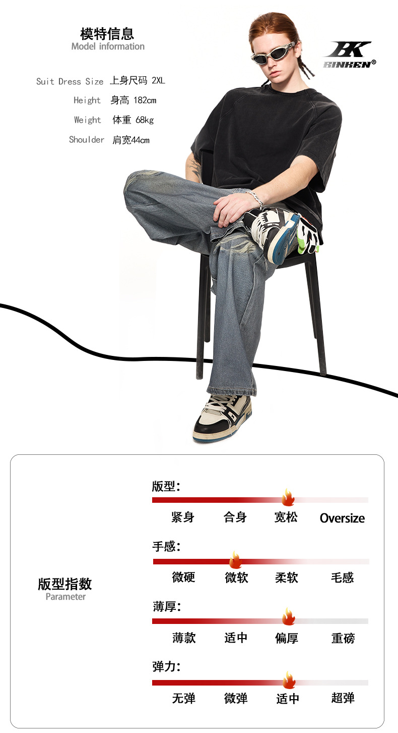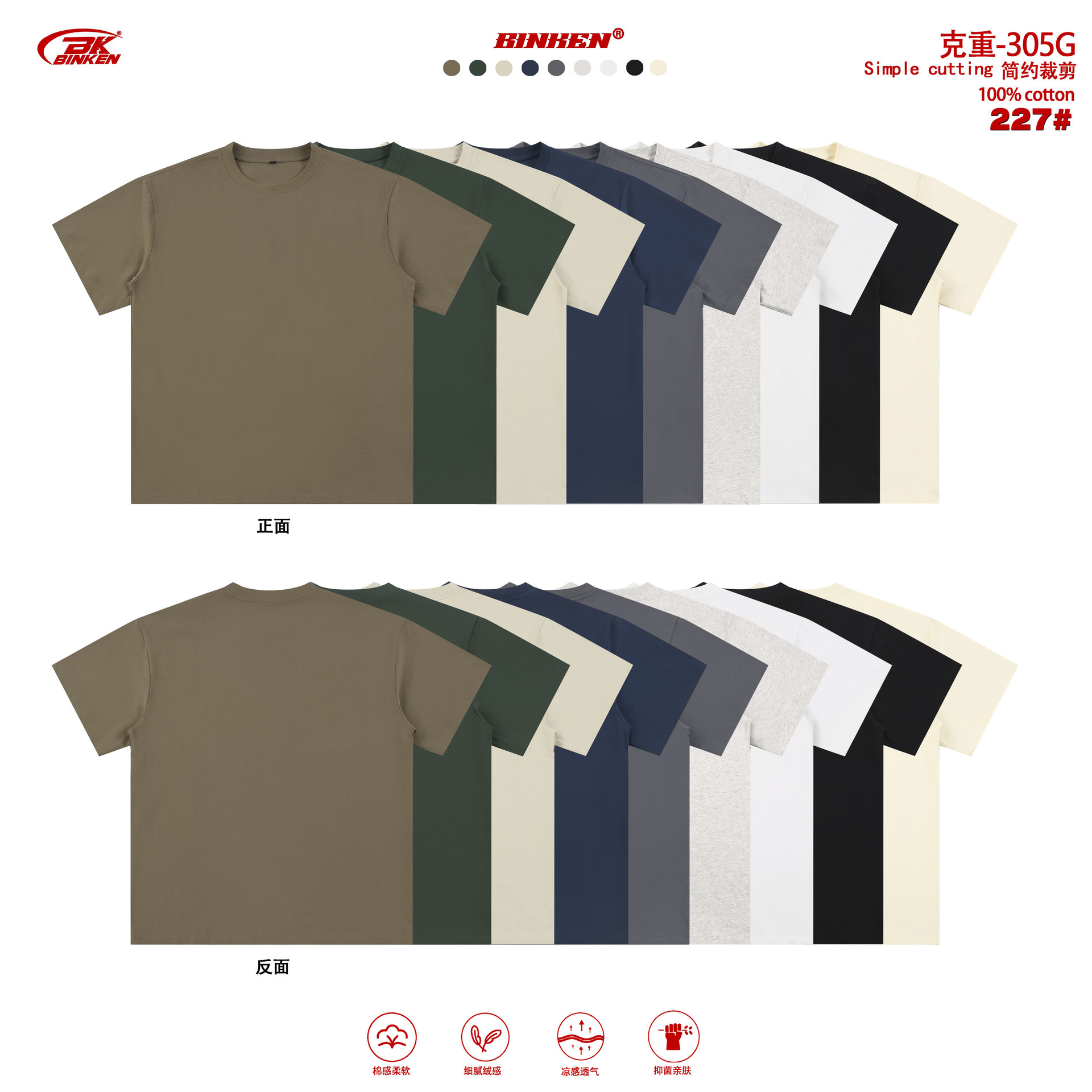 BK男装305g基础款重磅纯棉t恤男潮牌宽松美式t恤青少年纯色短袖