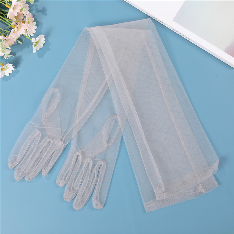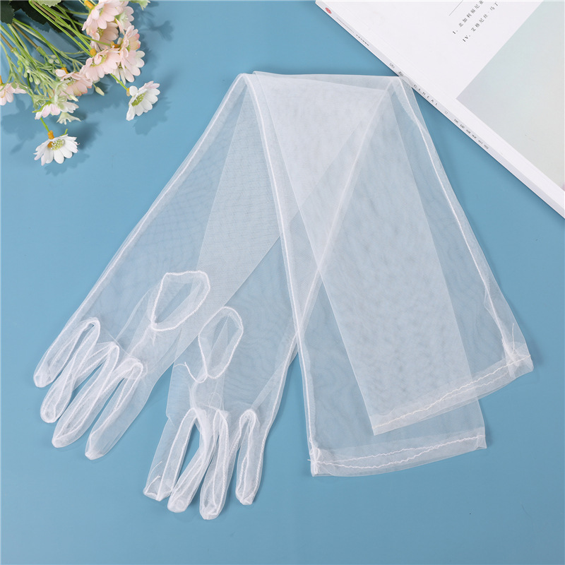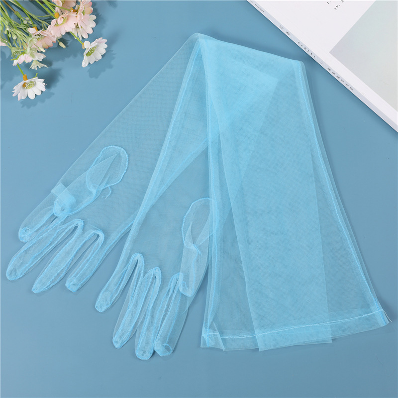 厂家批发70CM超长DIY薄纱新娘手套连指蕾丝防晒时尚多巴胺