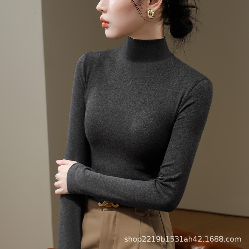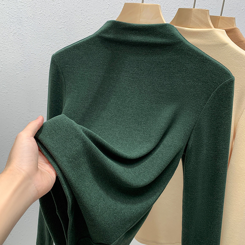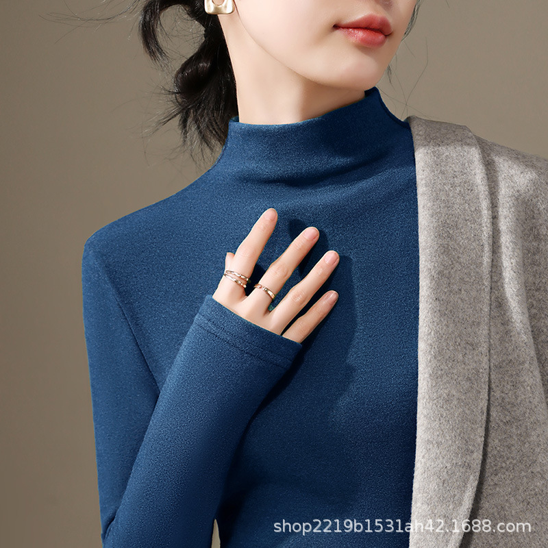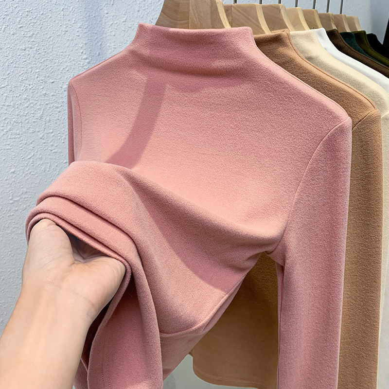 半高领德绒打底衫女2025年新款女装双面磨毛t恤保暖内搭收腰上衣