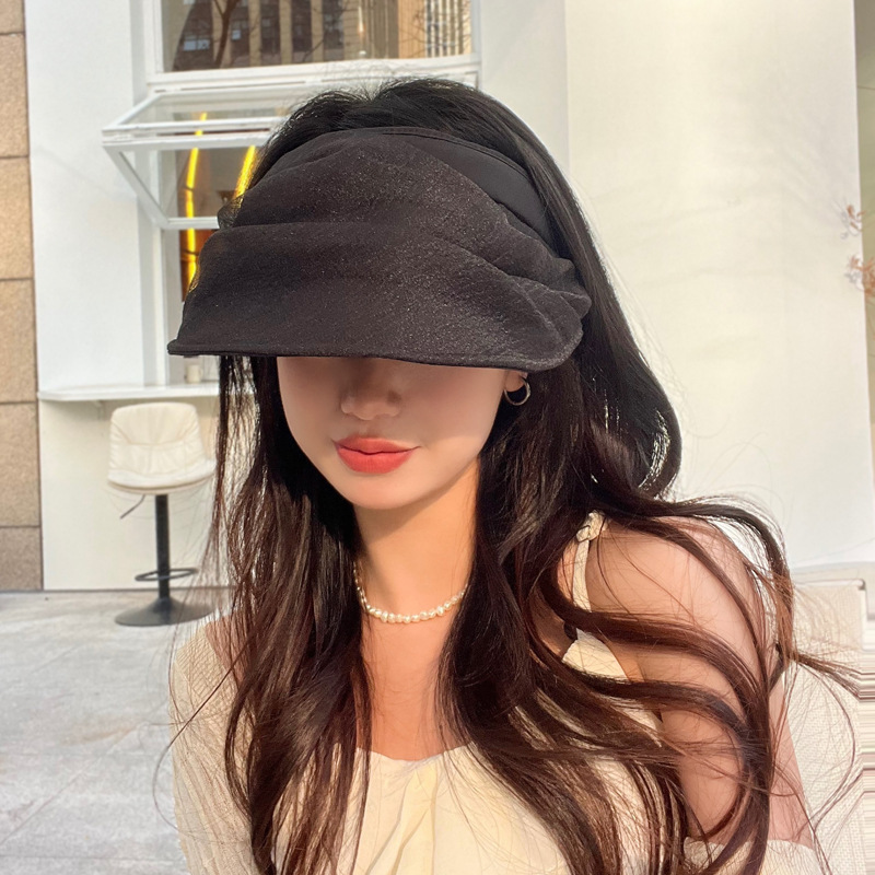 防晒遮阳帽帽子女韩版珍珠欧根纱大帽檐空顶帽出游批发防紫外线