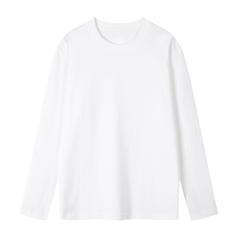 白色长袖t恤女早春简约宽松纯棉打底衫春秋叠穿内搭纯色体恤上衣