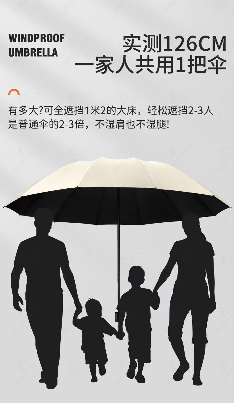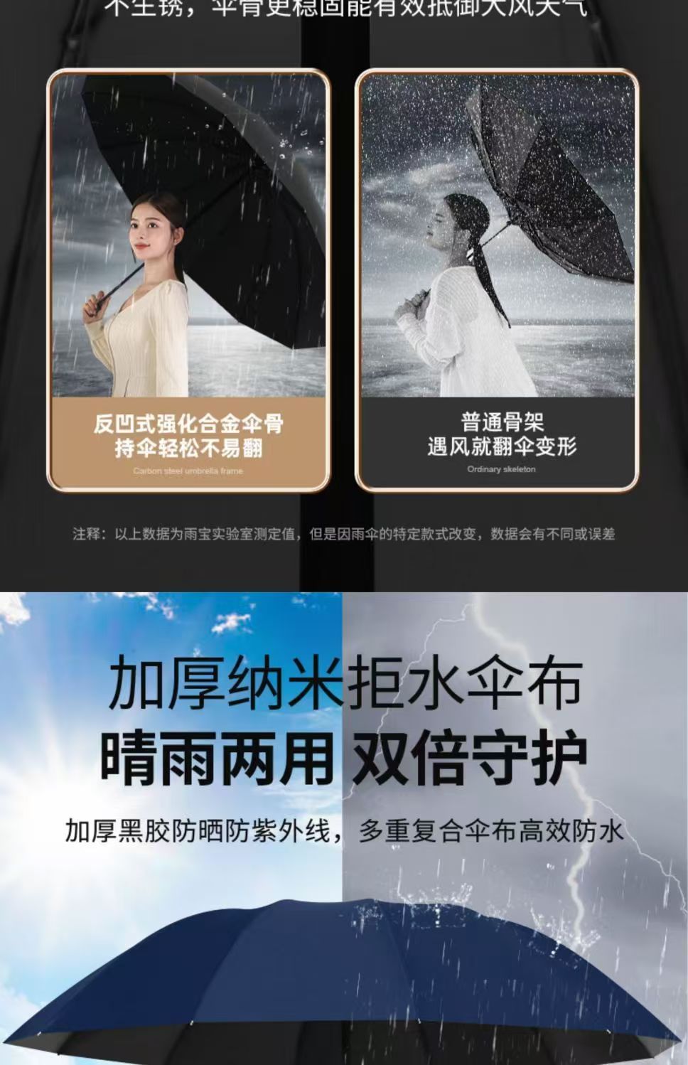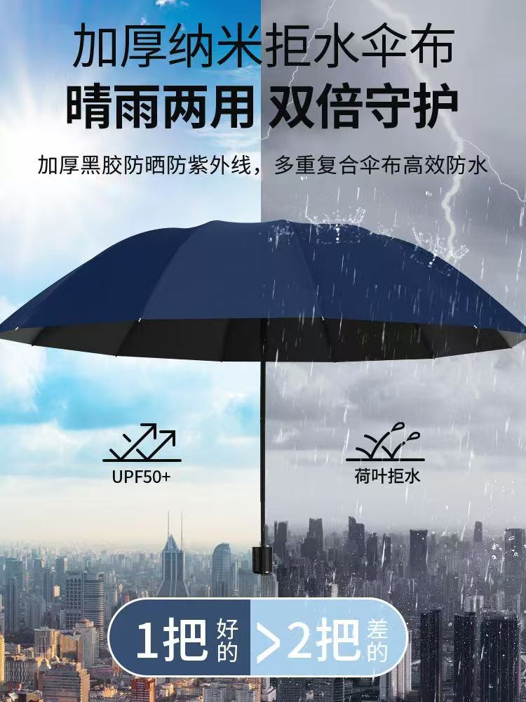 12骨超大雨伞大号折叠结实伞晴雨两用伞黑胶防晒遮阳伞广告伞定制
