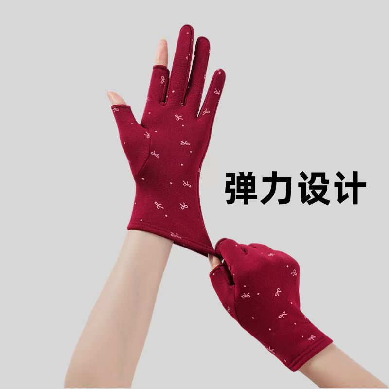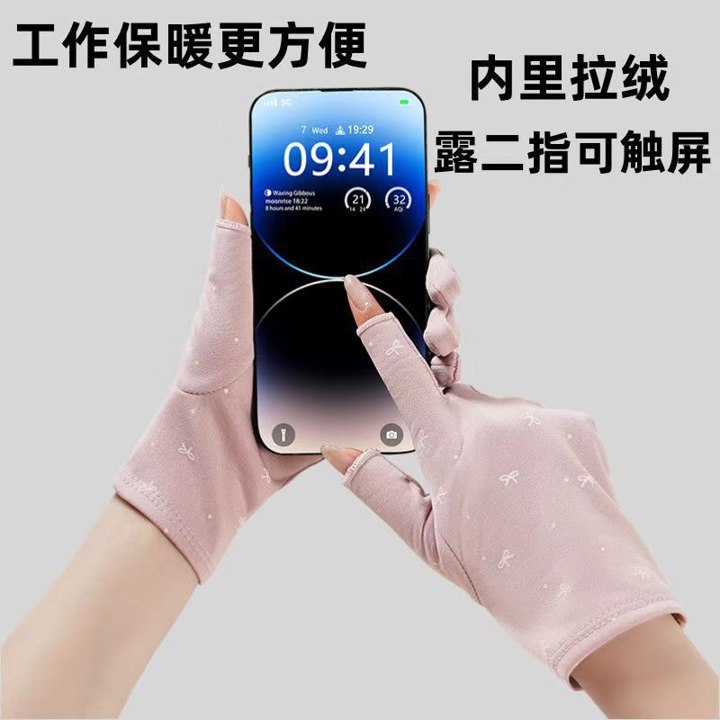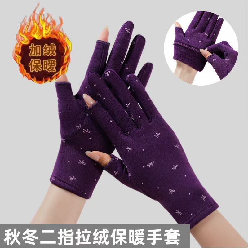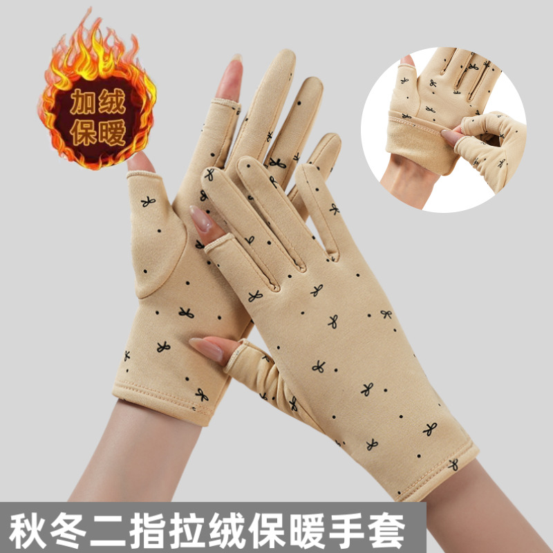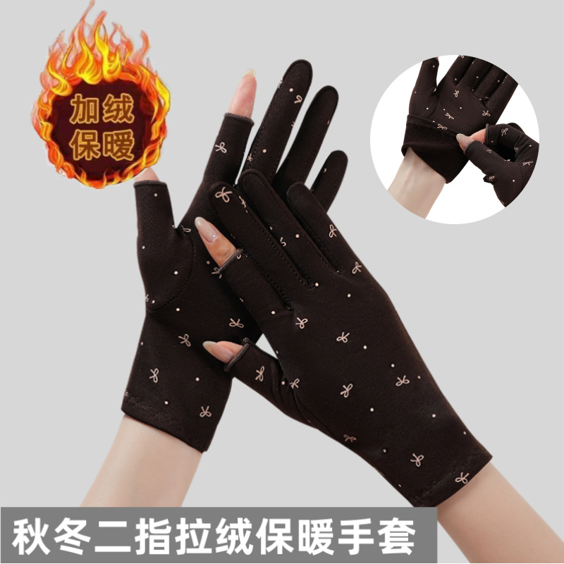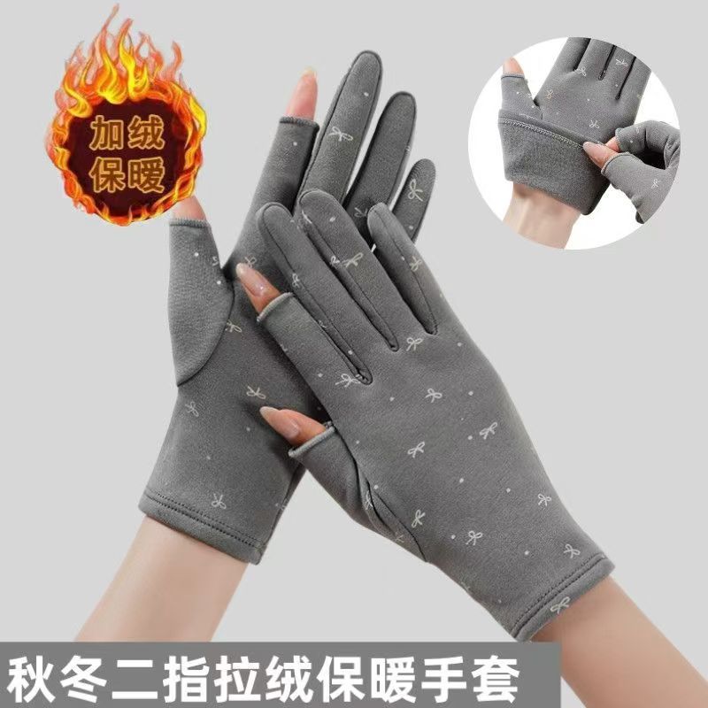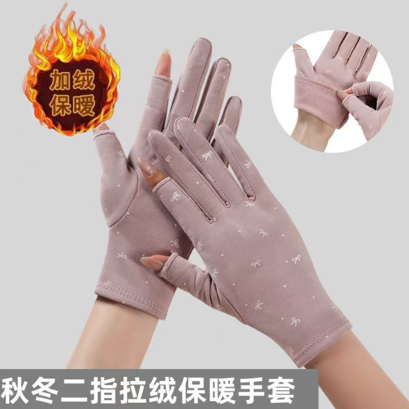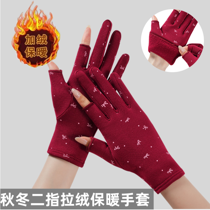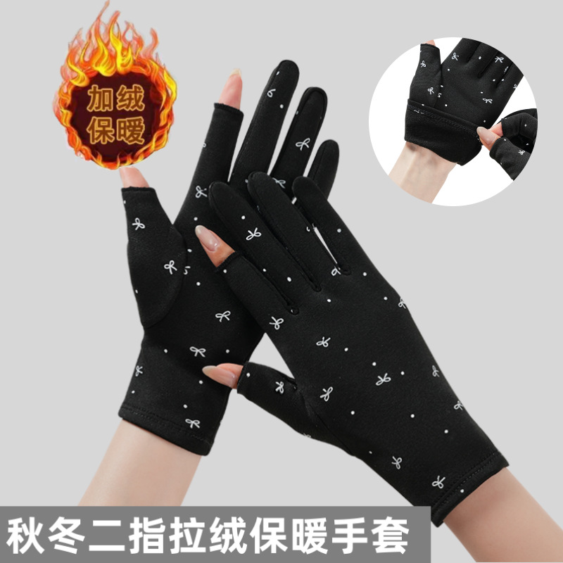 加绒手套冬季保暖韩版两指薄款工作广场舞防寒骑车开车跳舞通用