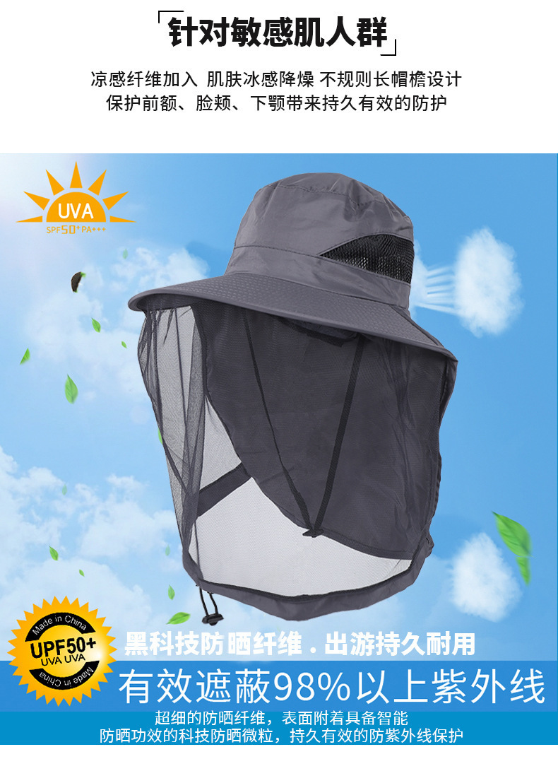 户外防蚊帽男女遮脸防晒透气网纱面罩钓鱼帽夜钓防虫防蜜蜂养蜂帽