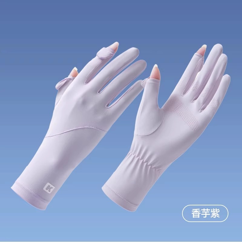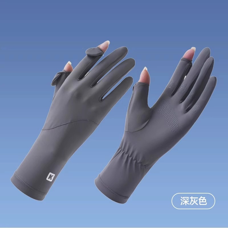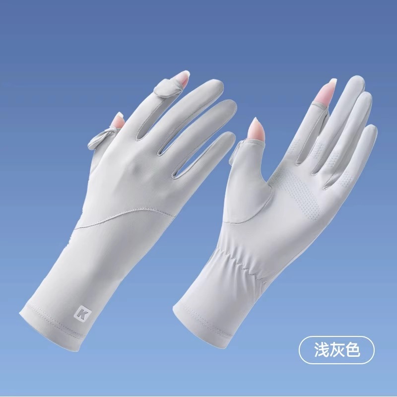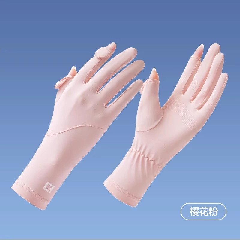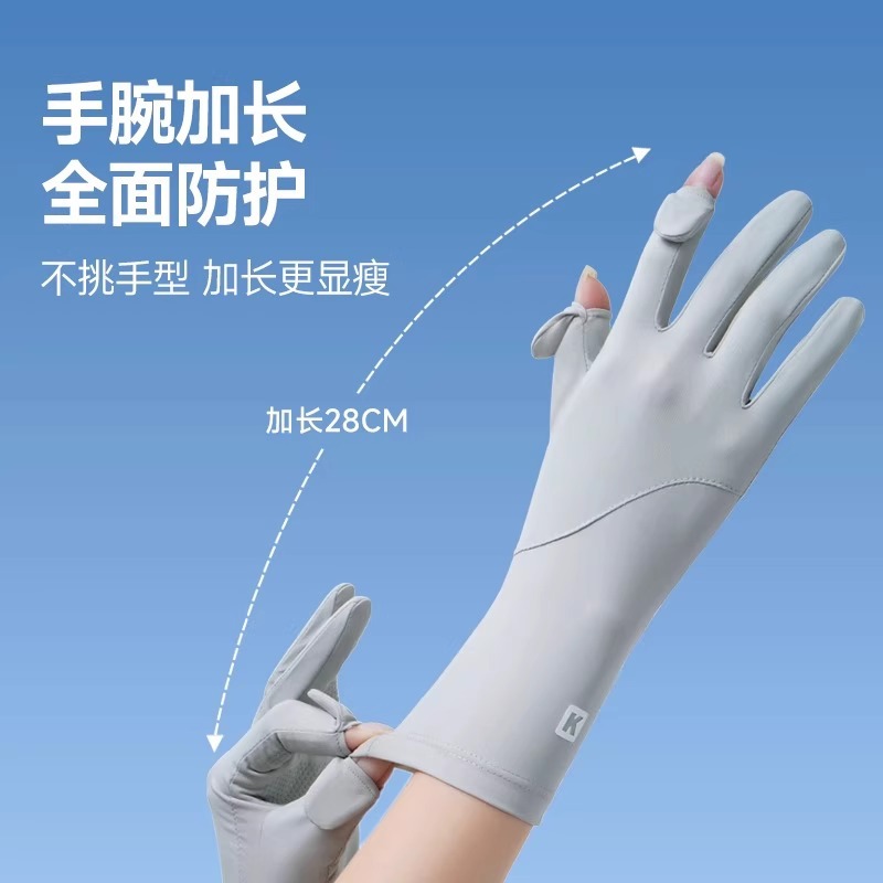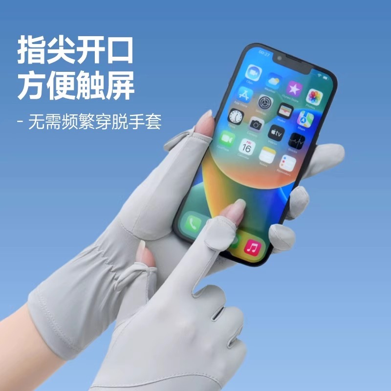 加长冰丝防晒手套防紫外线透气骑行手套防滑漏指触屏冰袖防晒手套