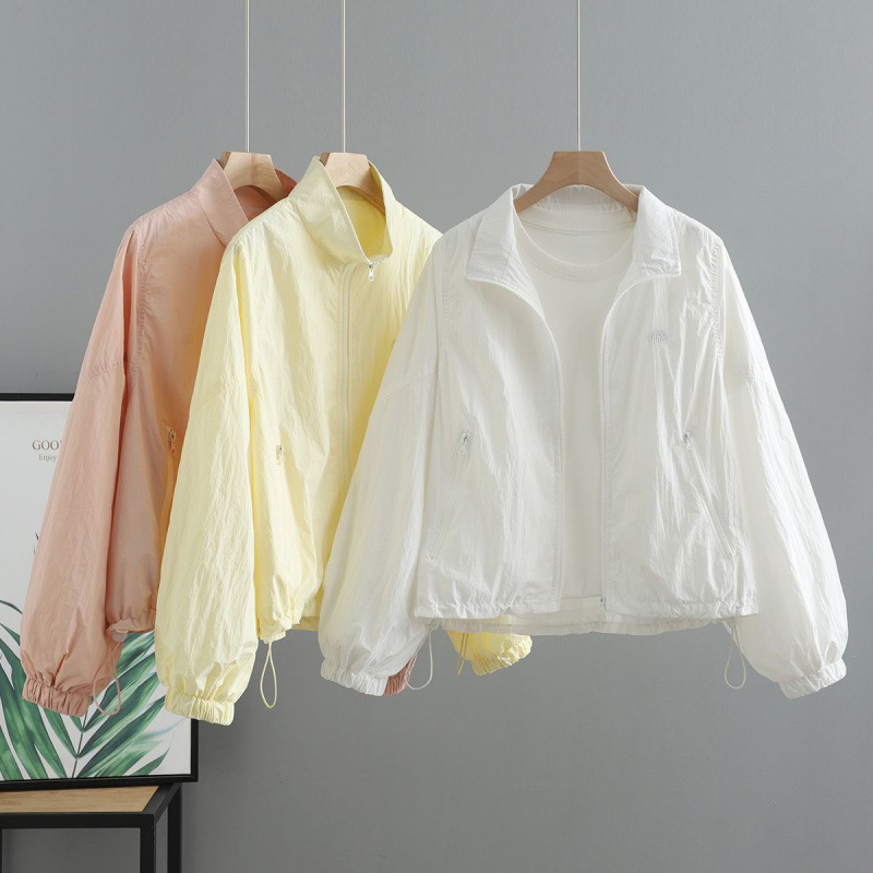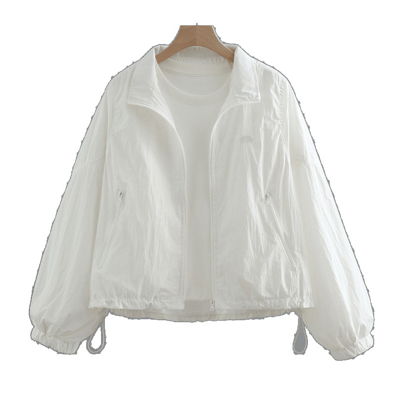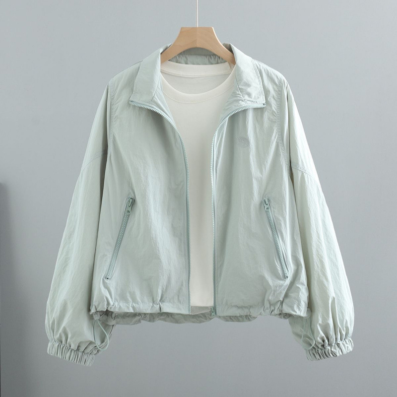 薄款抽绳防晒衣外套女短款夏季新款韩版宽松百搭字母立领夹克上衣