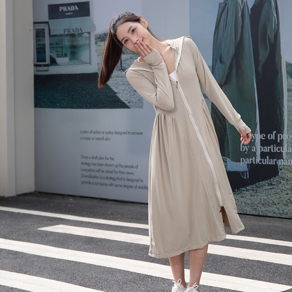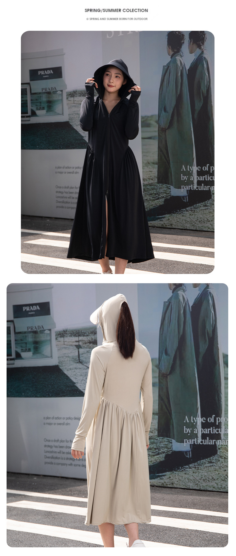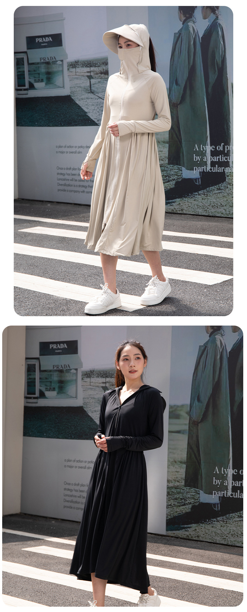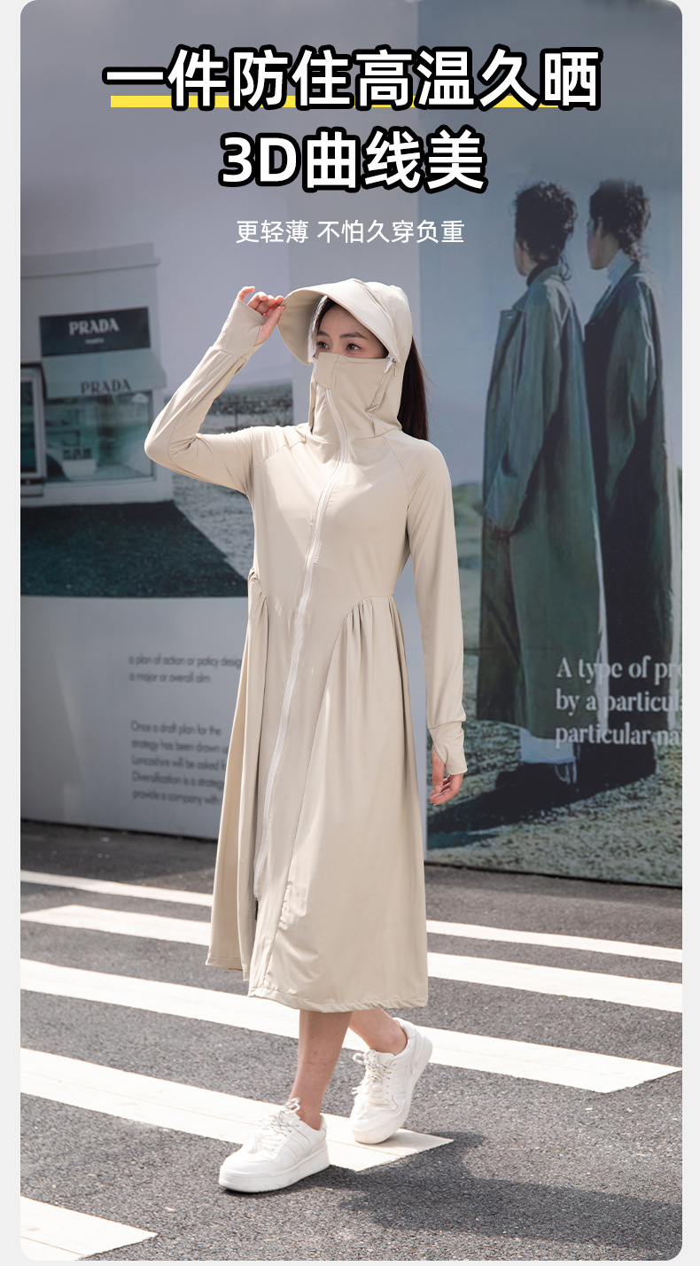 防晒衣女夏季长款冰丝防晒外套徒步旅行户外防紫外线长袖款连衣裙
