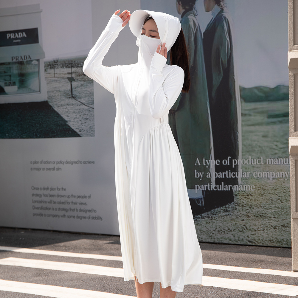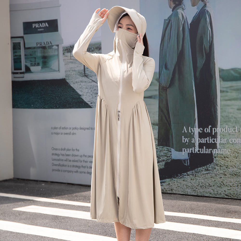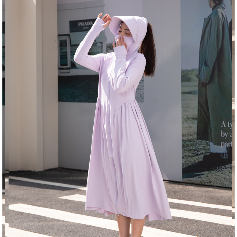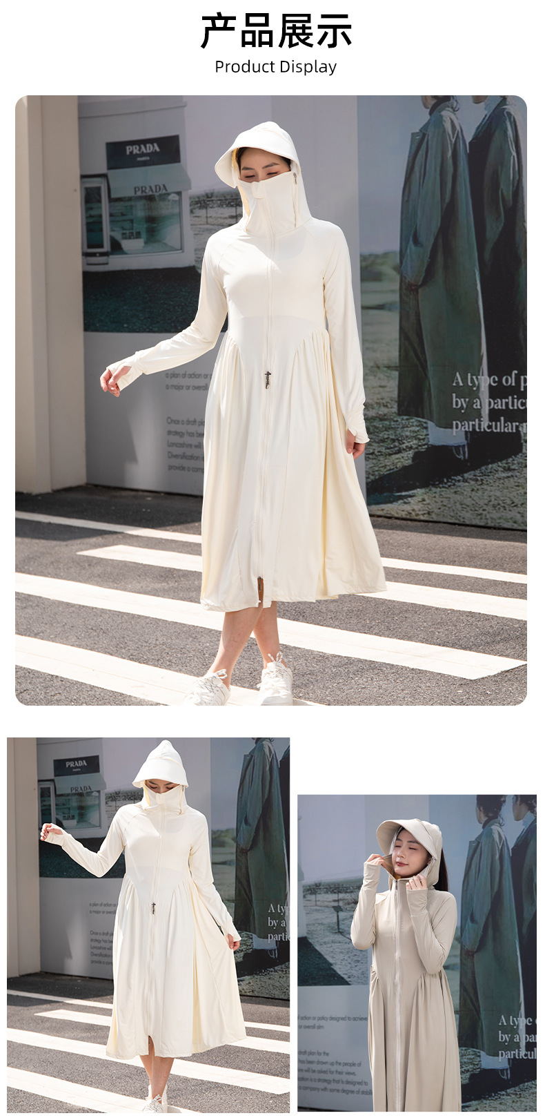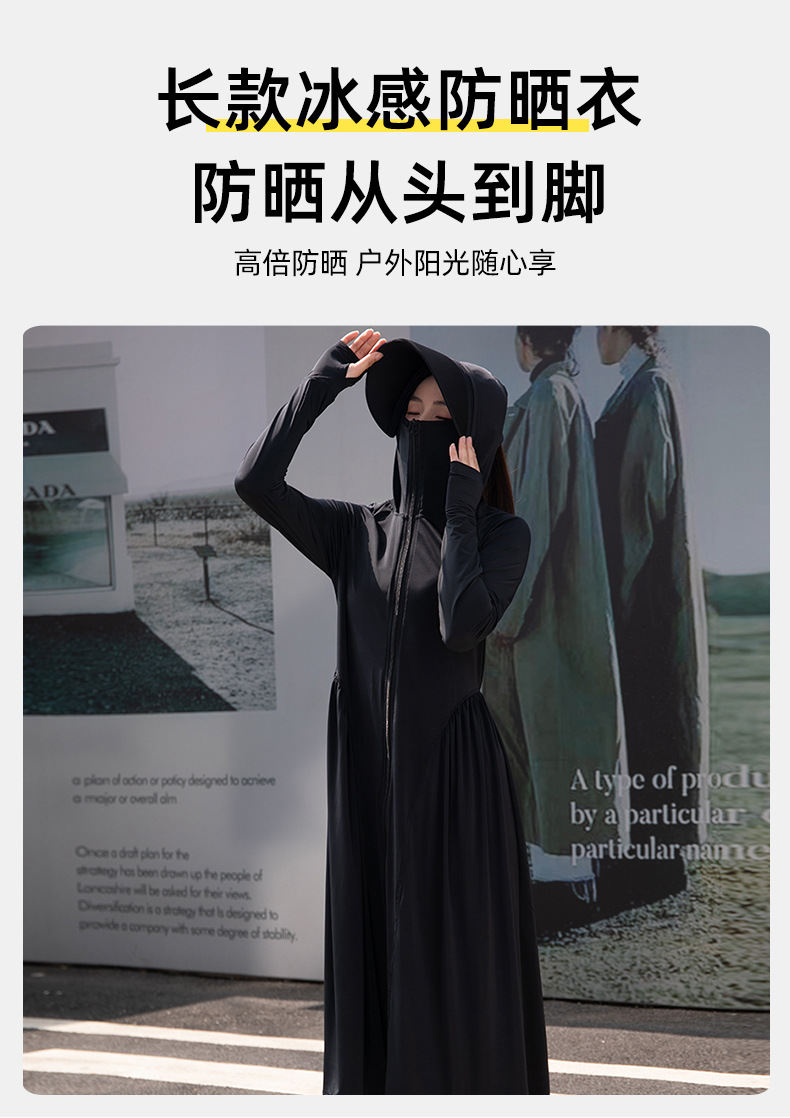 防晒衣女夏季长款冰丝防晒外套徒步旅行户外防紫外线长袖款连衣裙