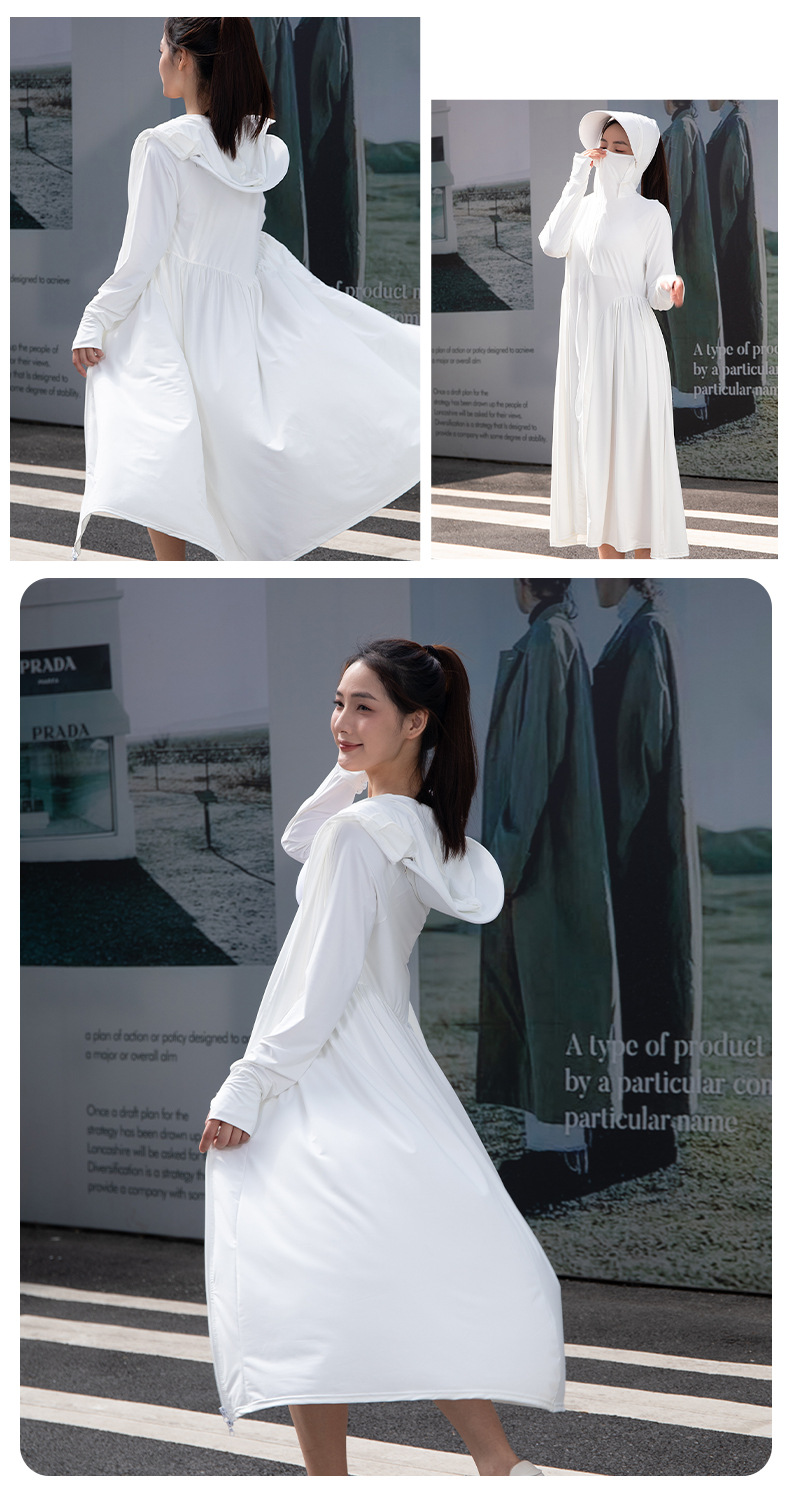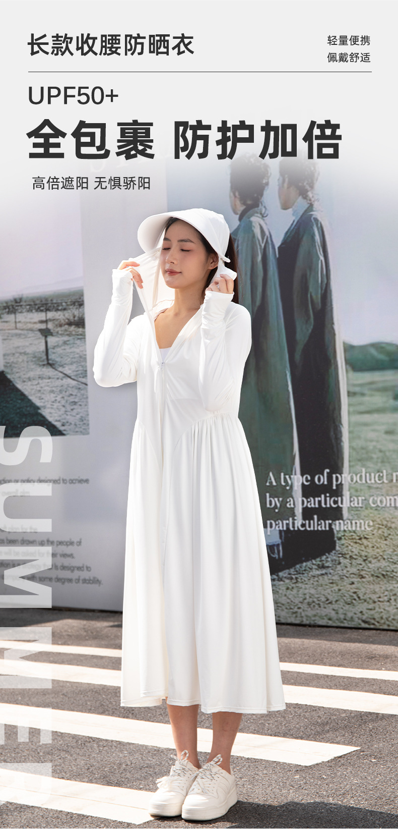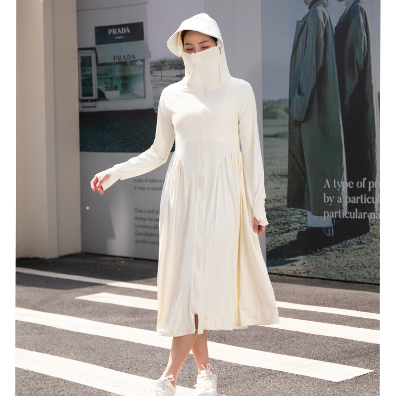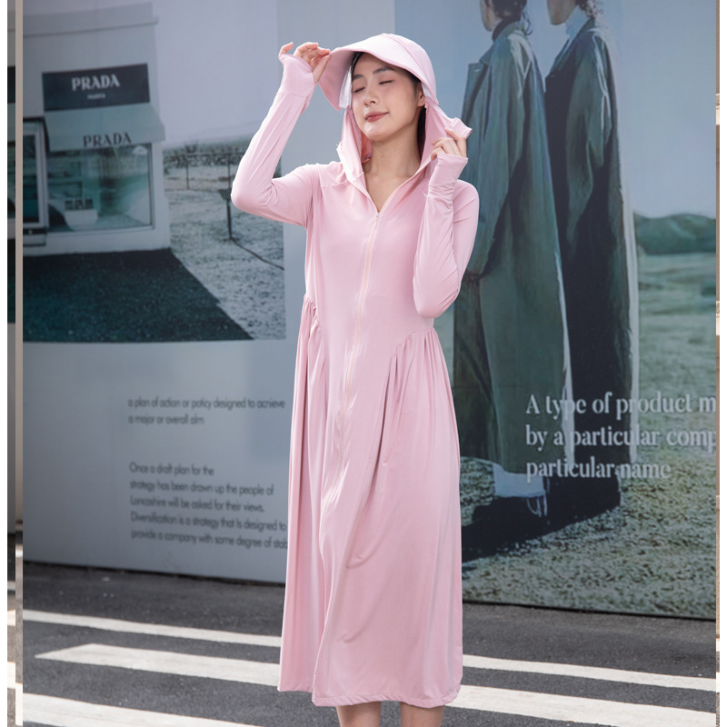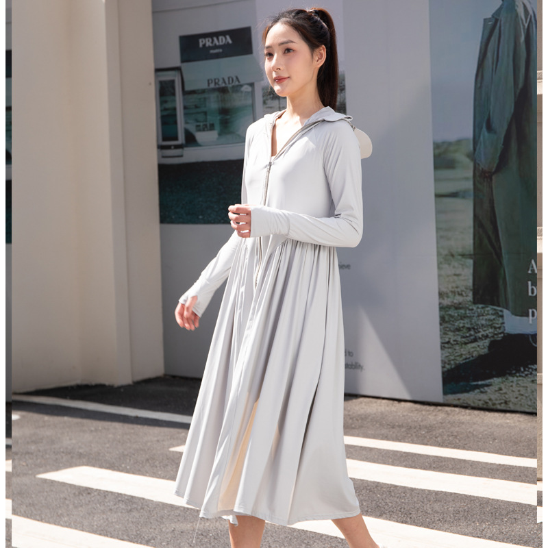 防晒衣女夏季长款冰丝防晒外套徒步旅行户外防紫外线长袖款连衣裙