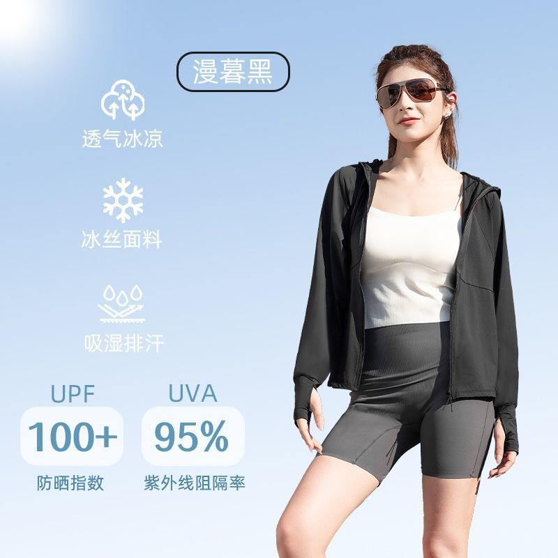 新款防晒UPF100夏季户外紫外线透气冰丝黑胶轻薄外套防晒衣批发