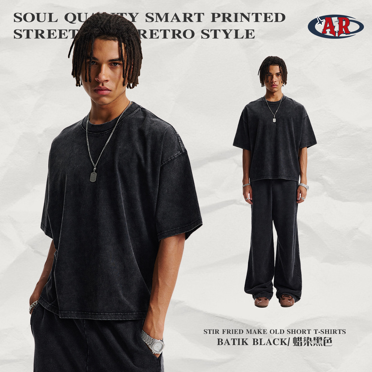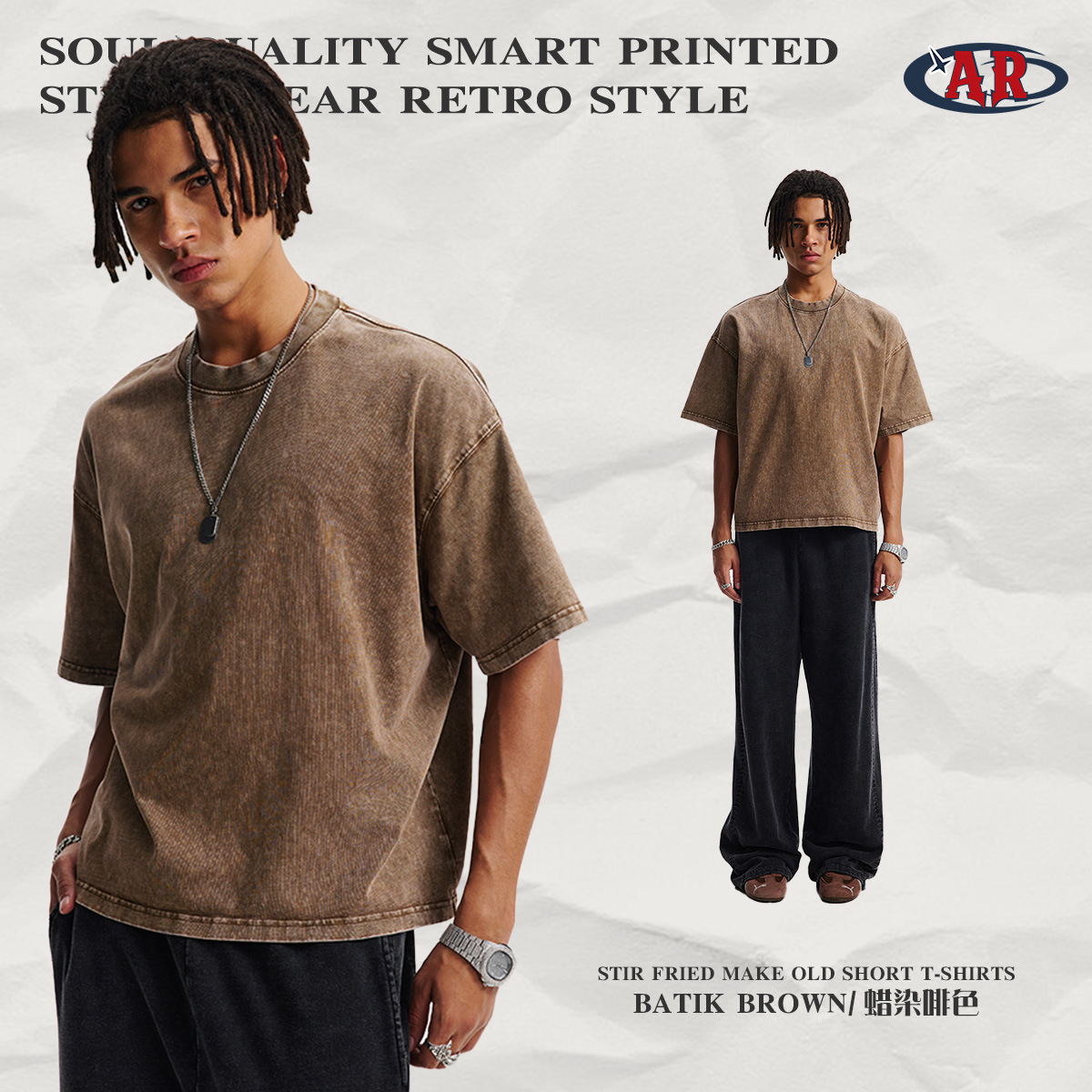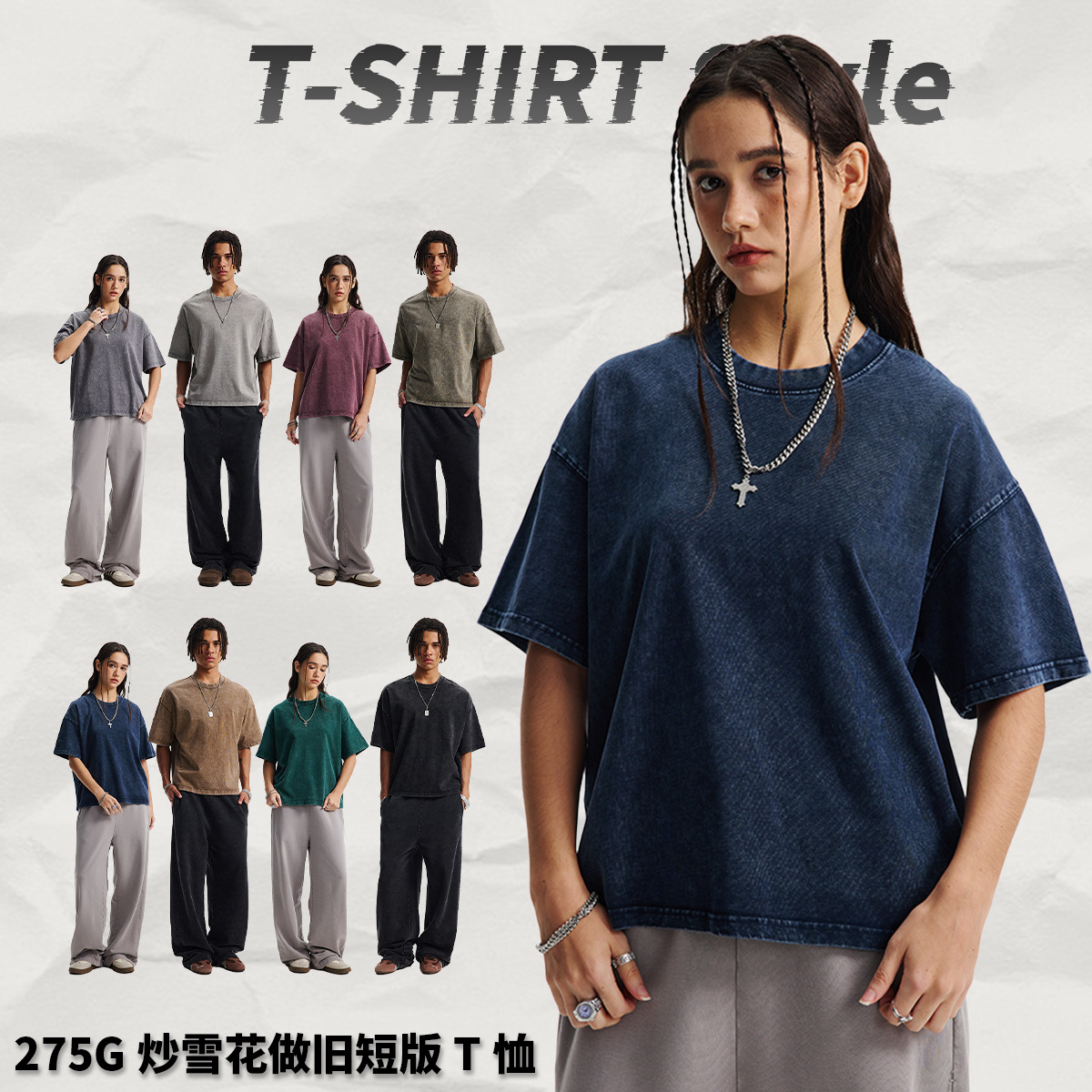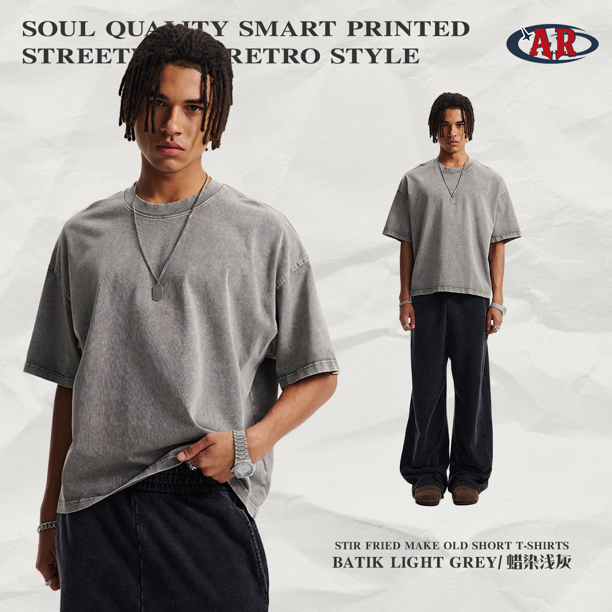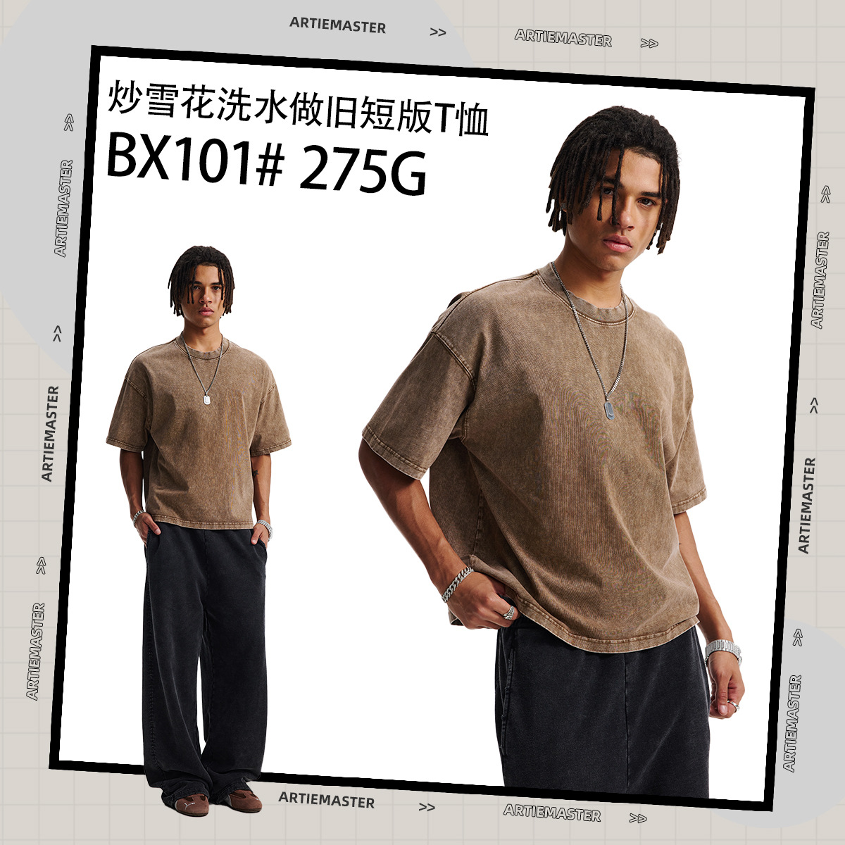 ARTIE男装丨潮牌欧美Boxy版宽松短款炒雪花洗水做旧t恤基础版短袖