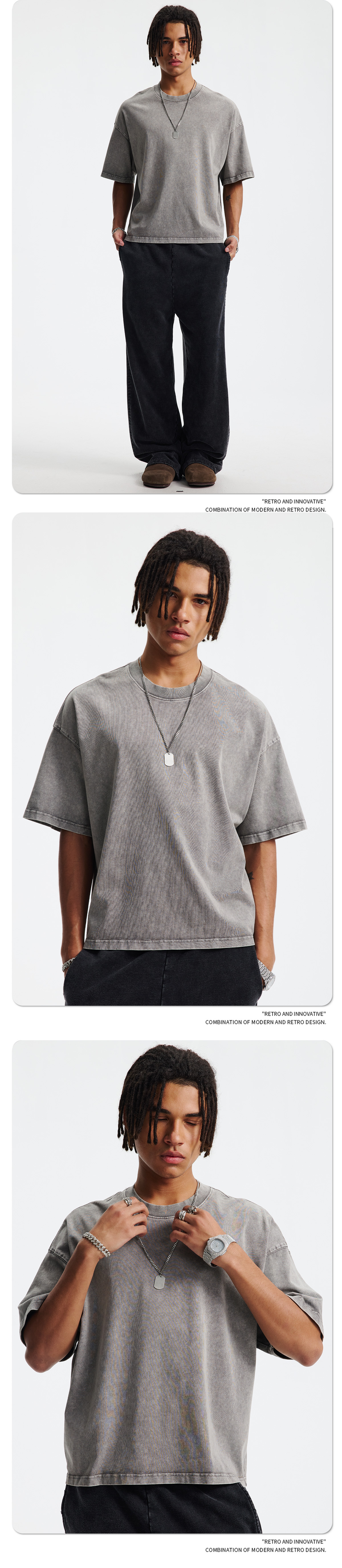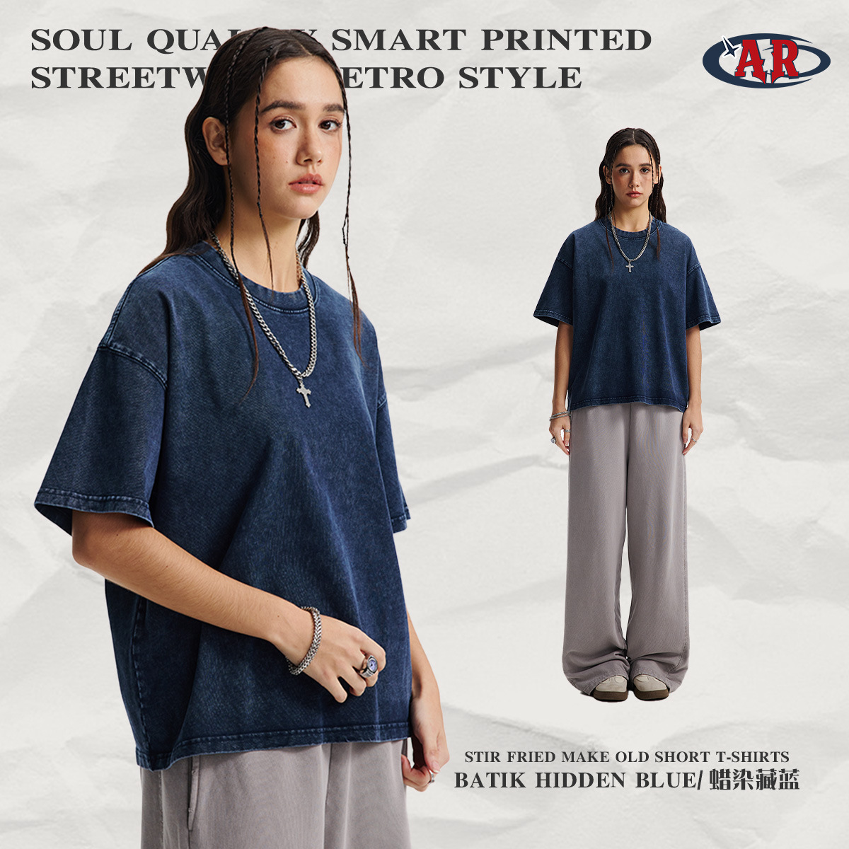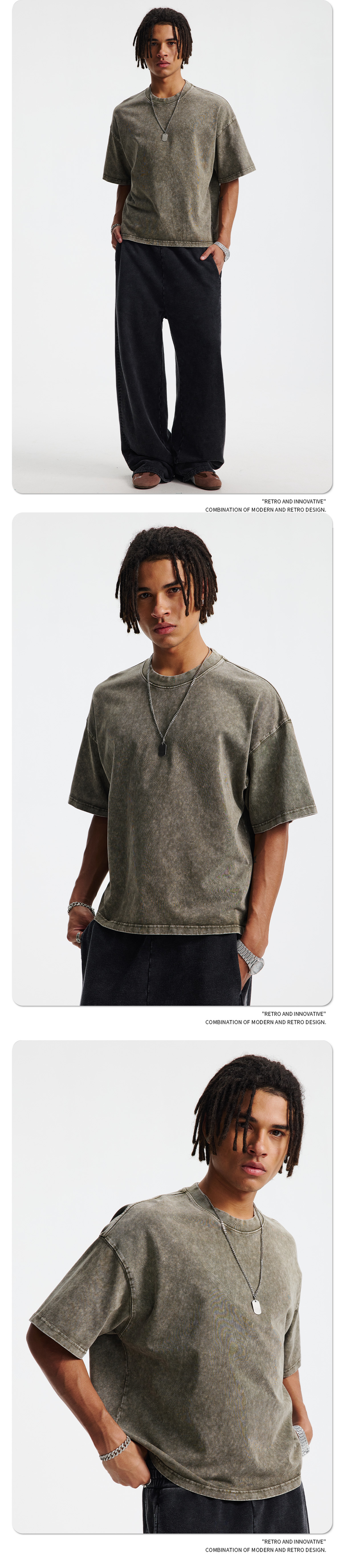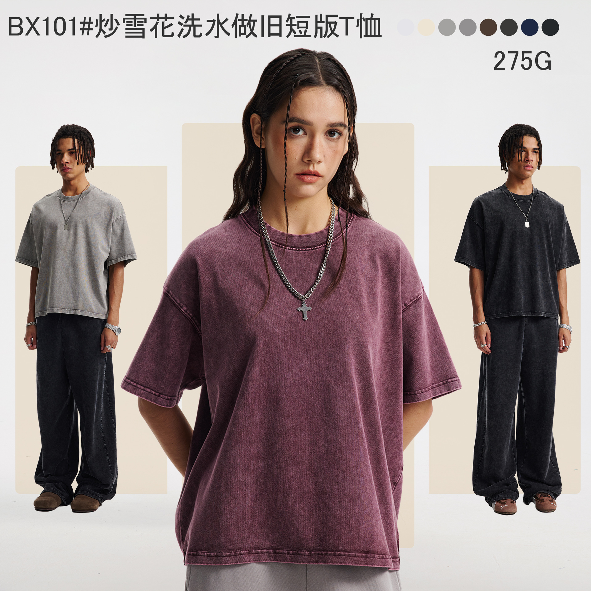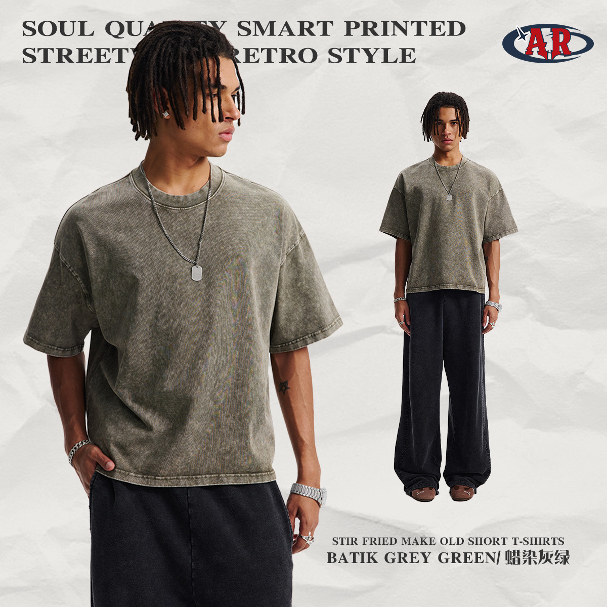 ARTIE男装丨潮牌欧美Boxy版宽松短款炒雪花洗水做旧t恤基础版短袖