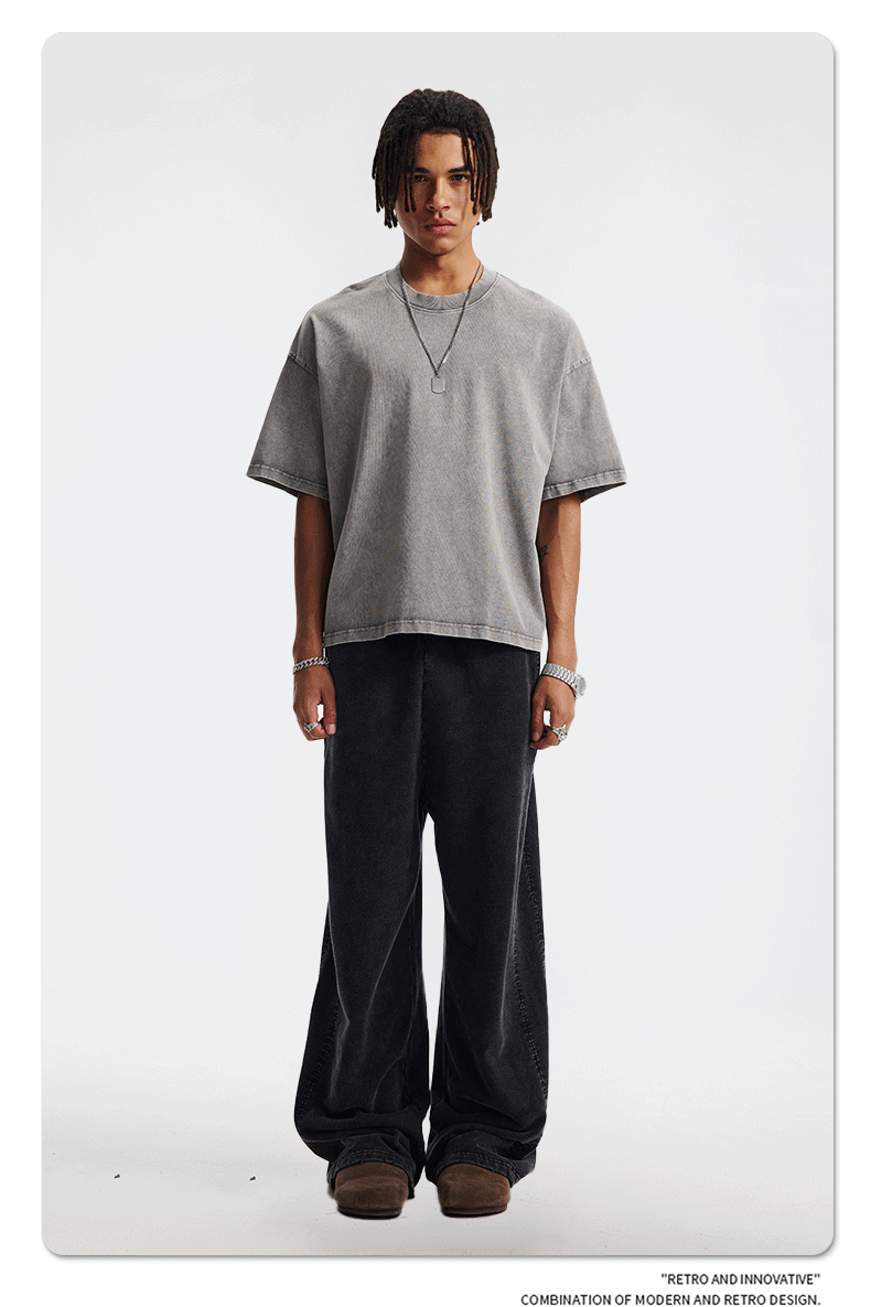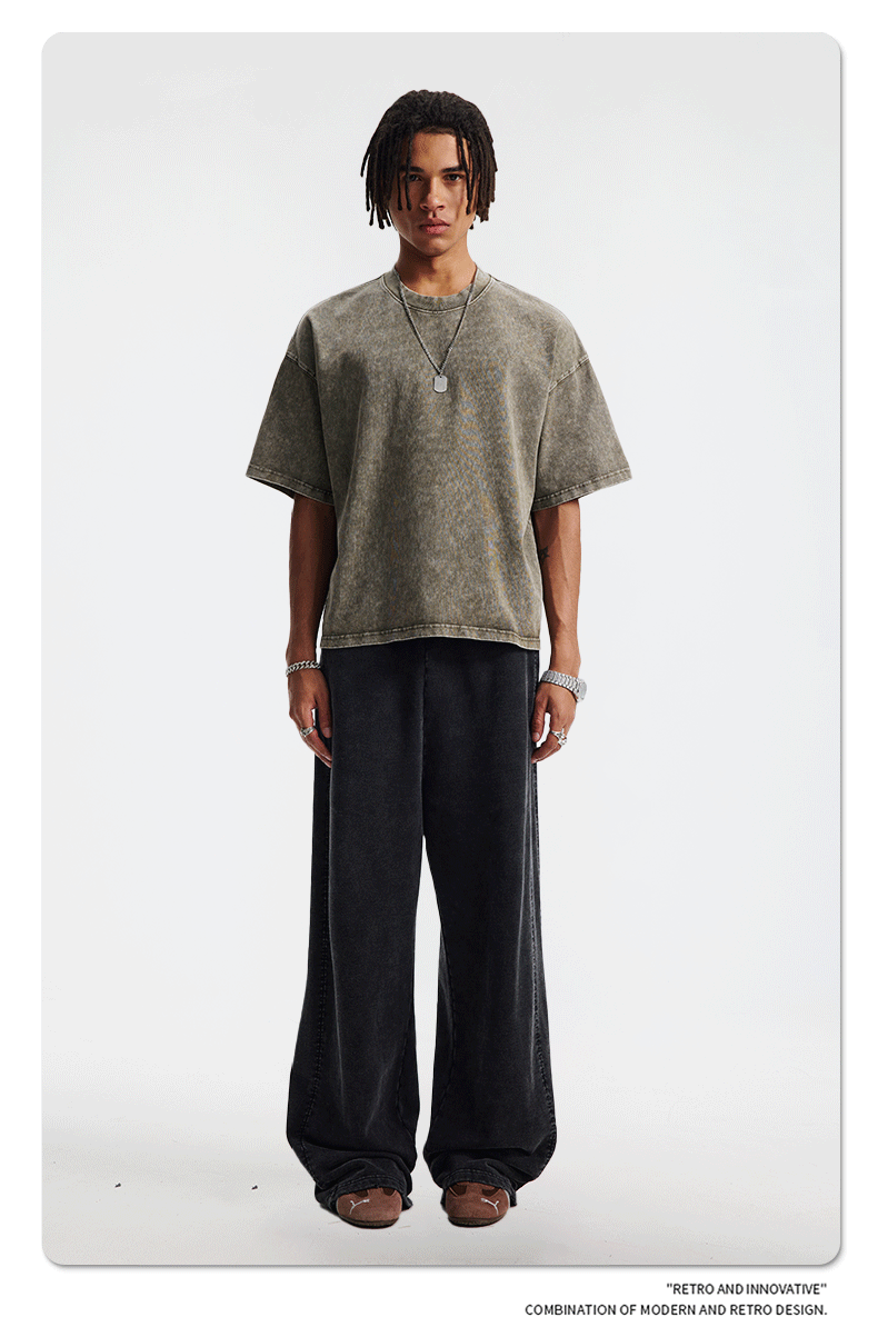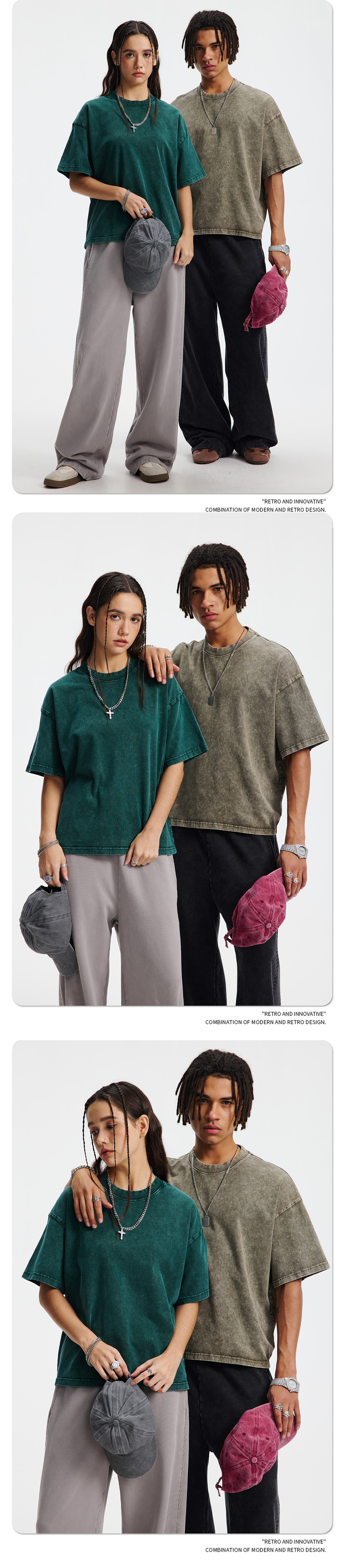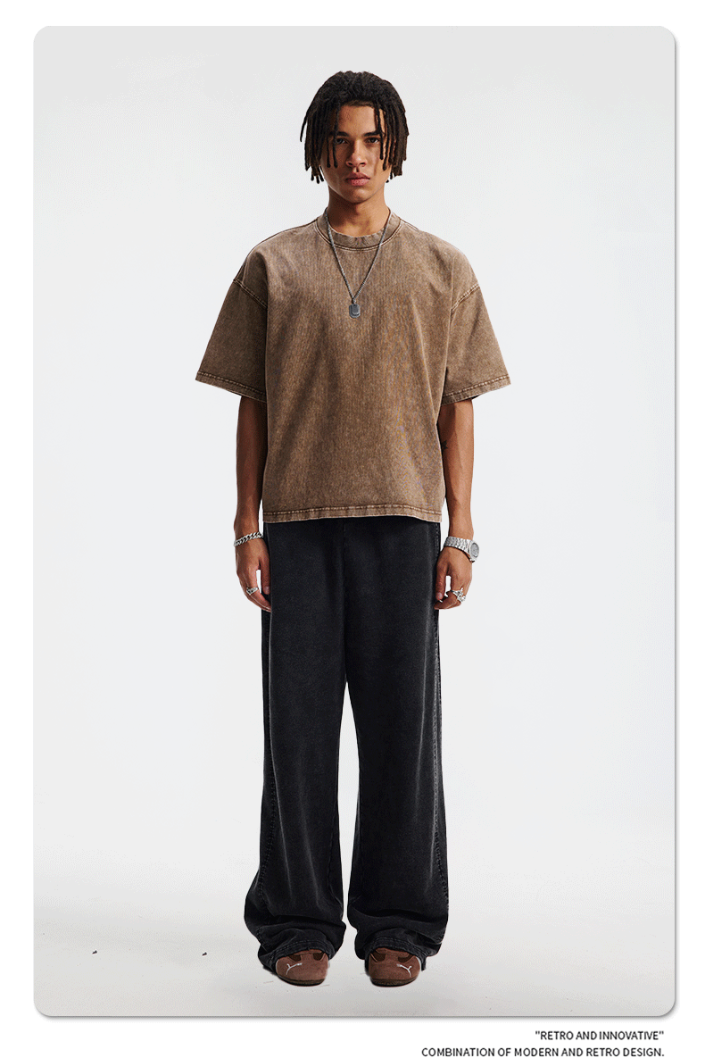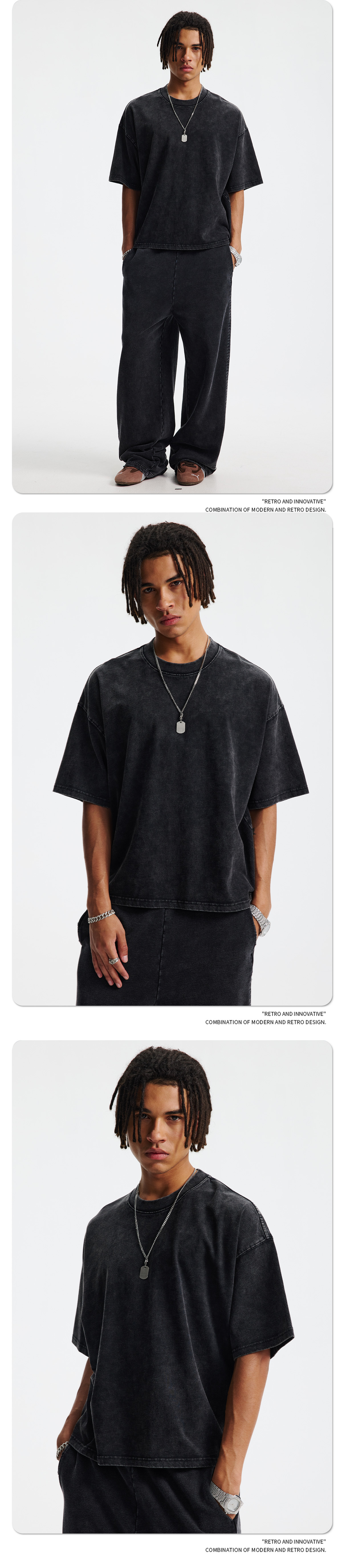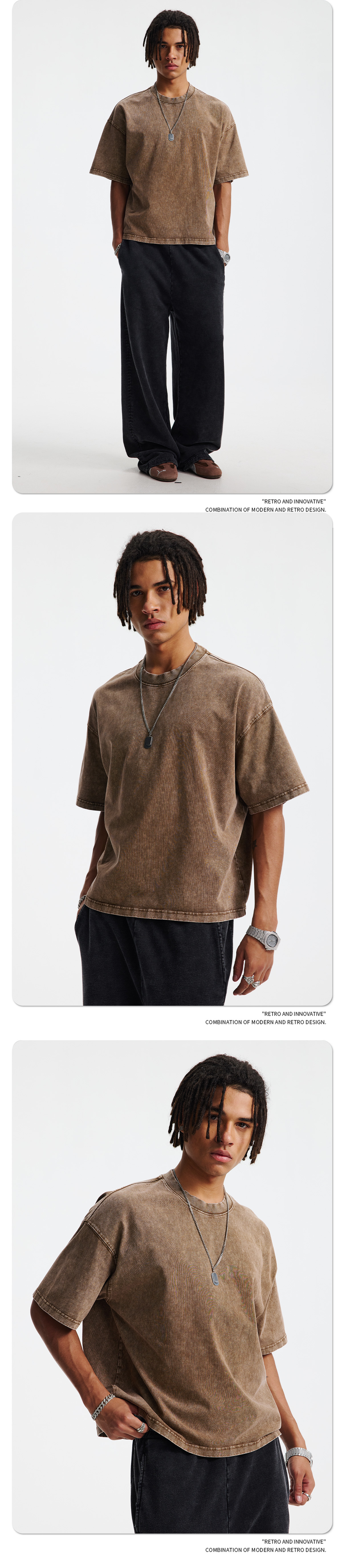 ARTIE男装丨潮牌欧美Boxy版宽松短款炒雪花洗水做旧t恤基础版短袖