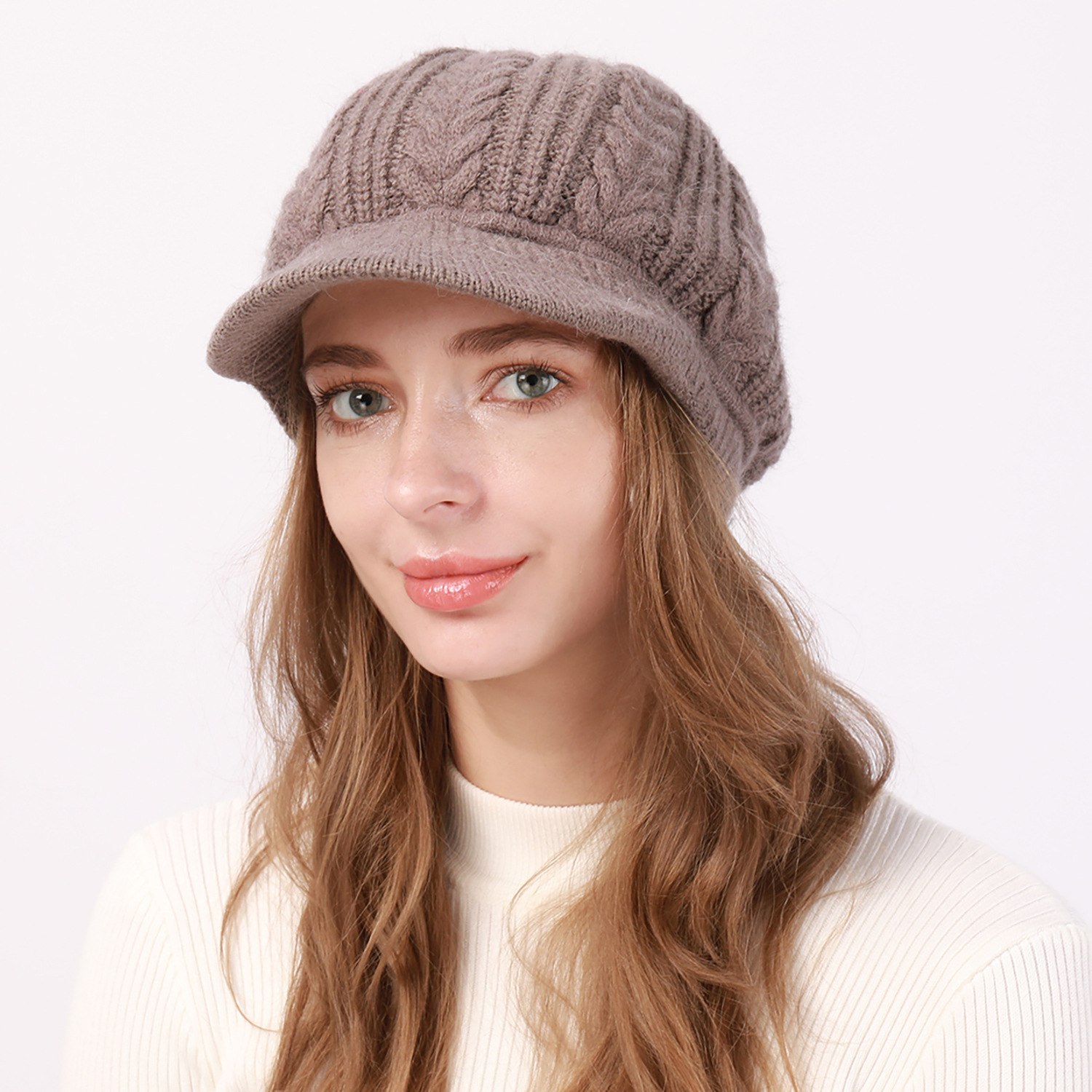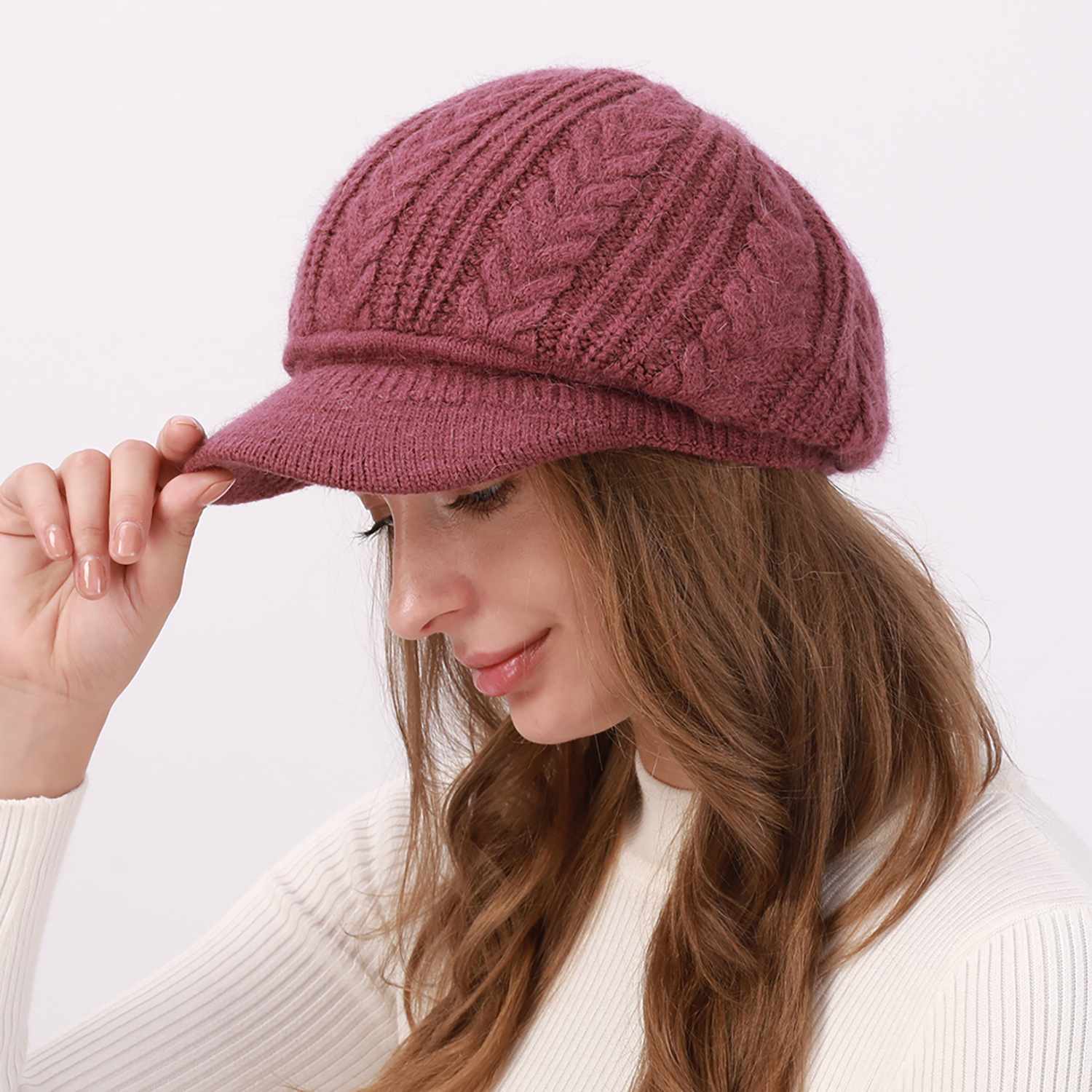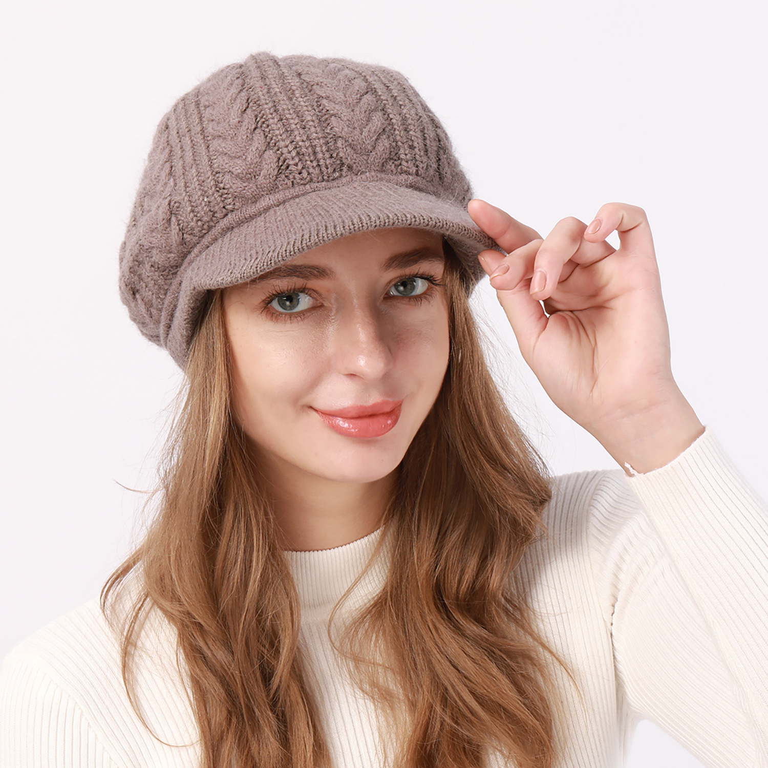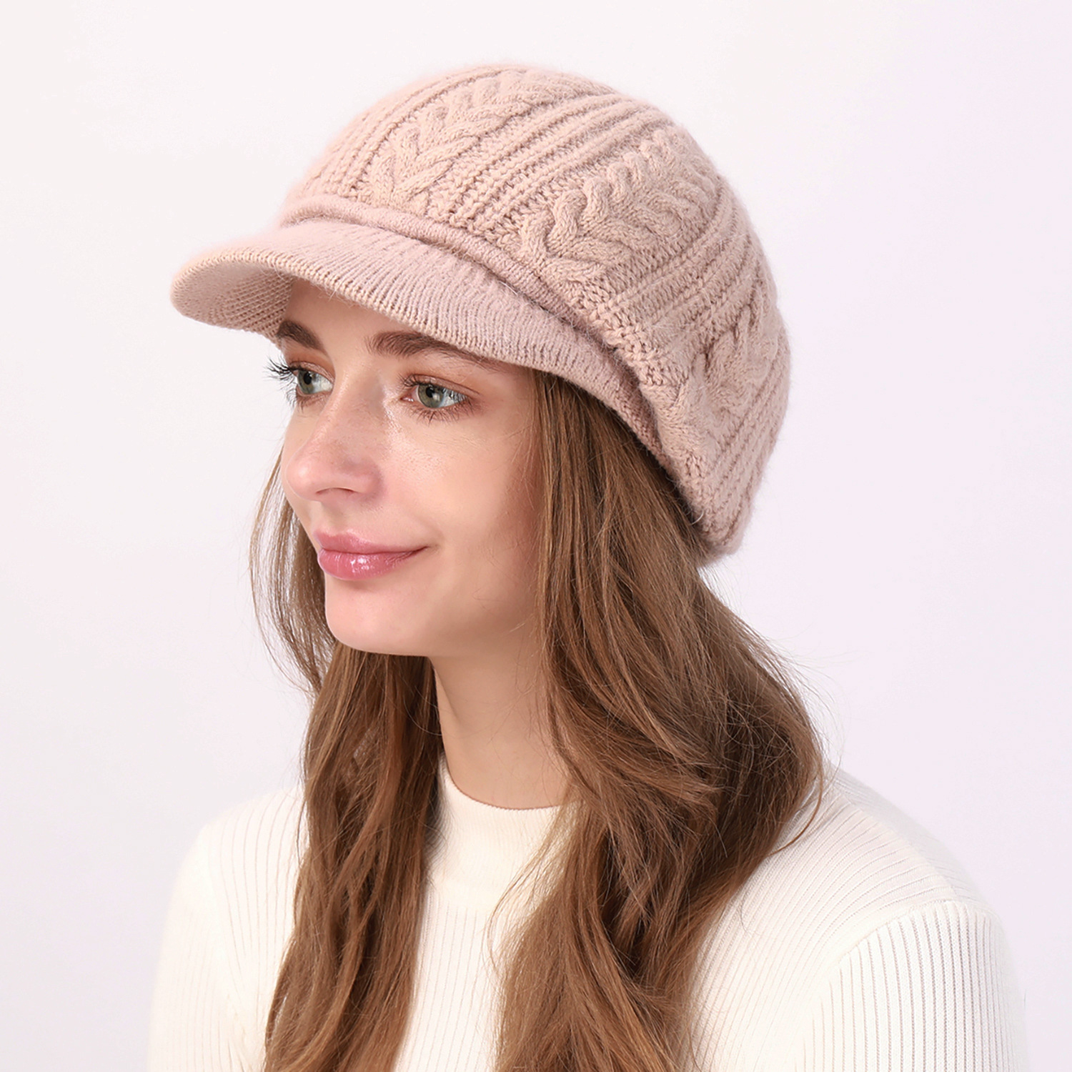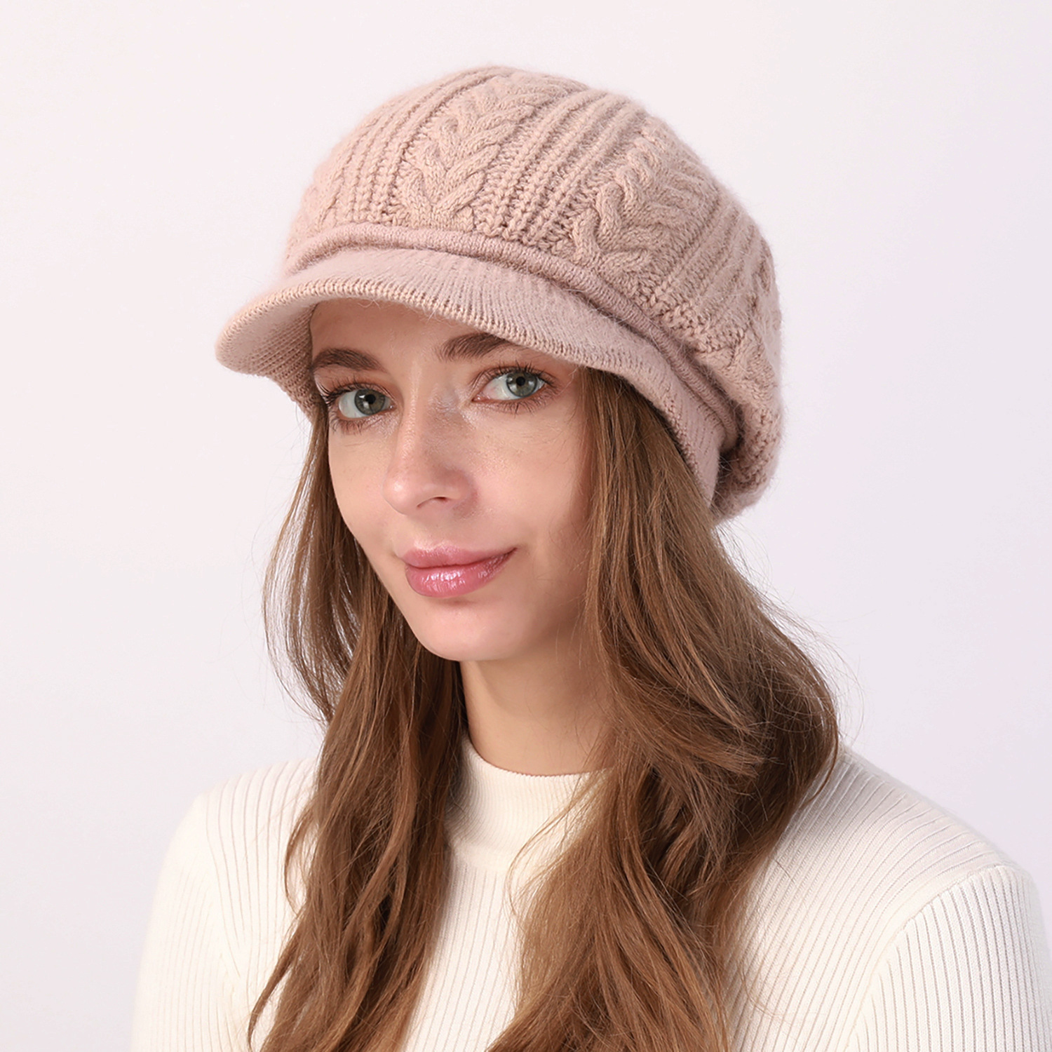 欧美秋冬季新款女加绒加厚毛线绞花鸭舌帽时尚保暖防寒贝雷针织帽