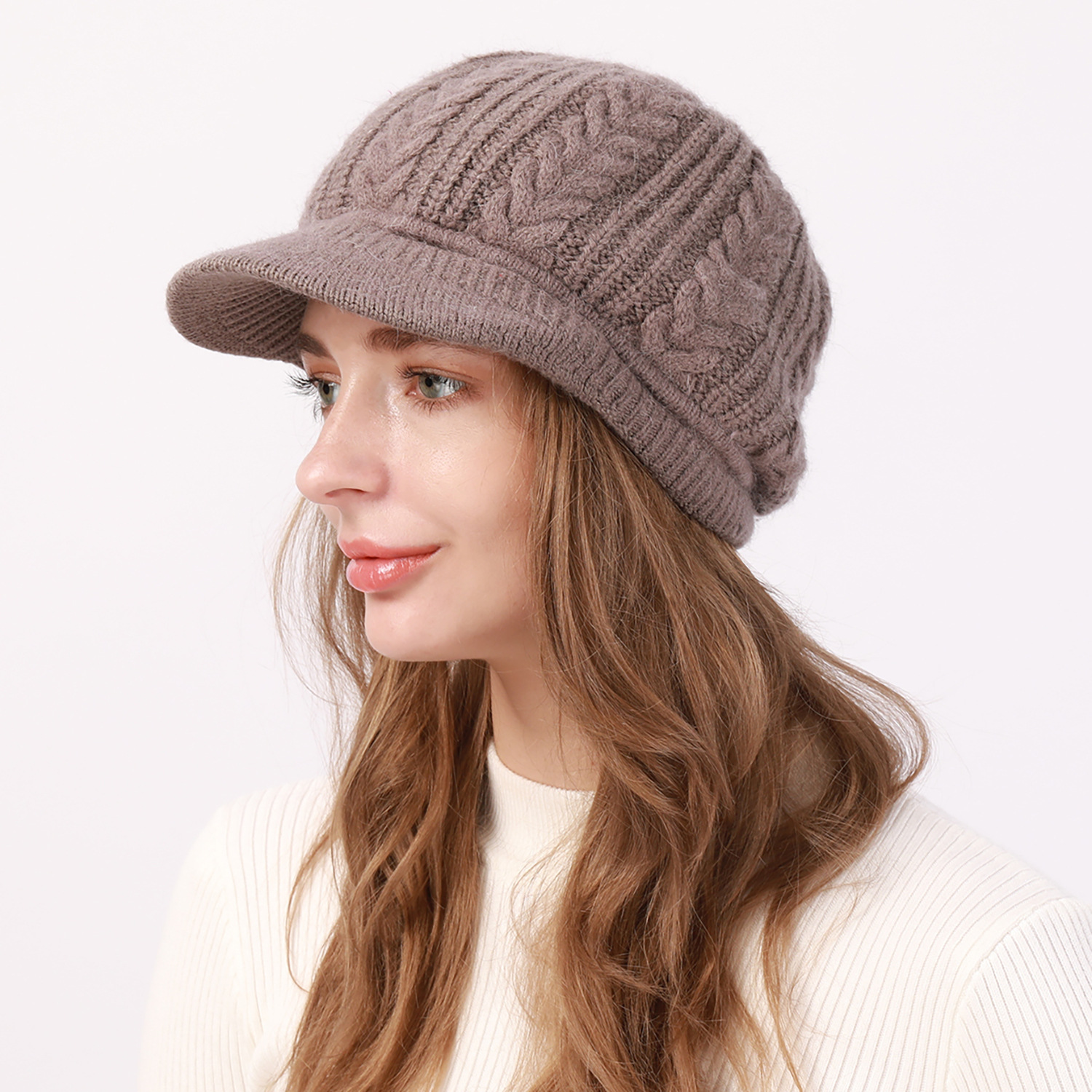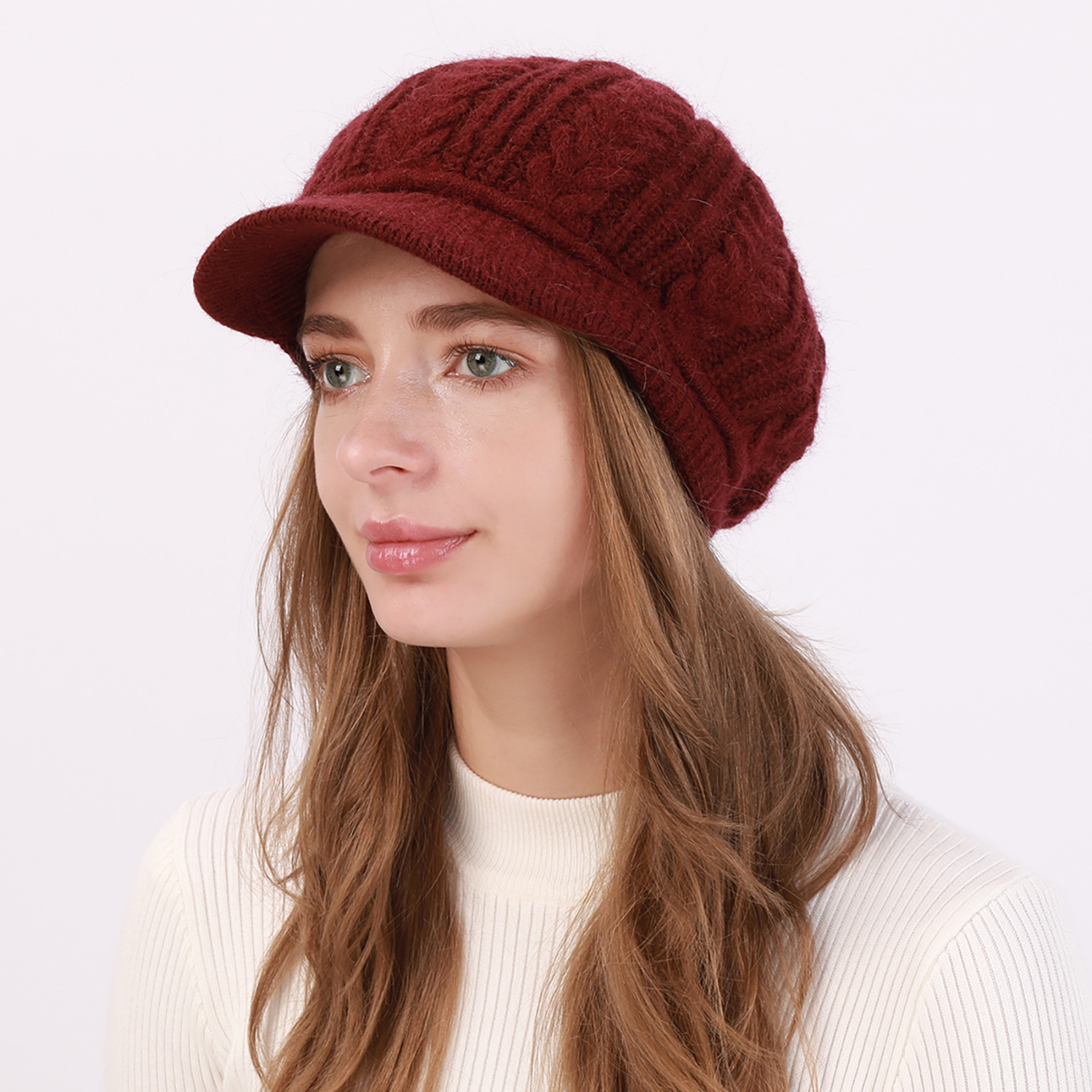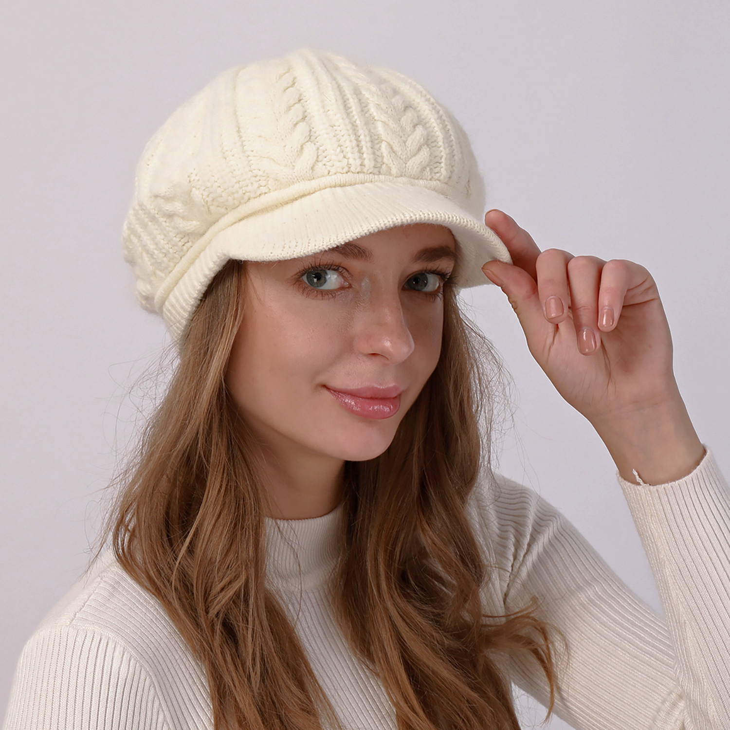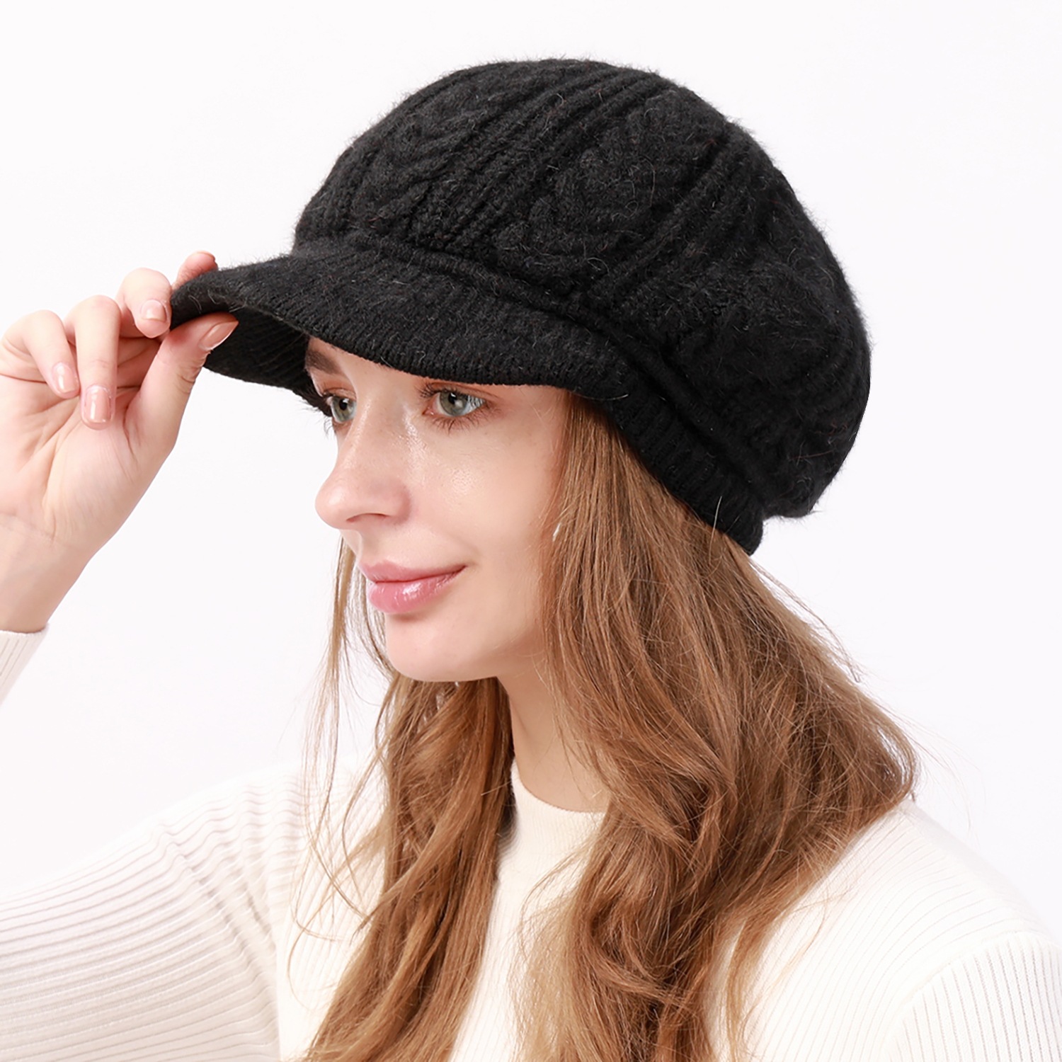 欧美秋冬季新款女加绒加厚毛线绞花鸭舌帽时尚保暖防寒贝雷针织帽