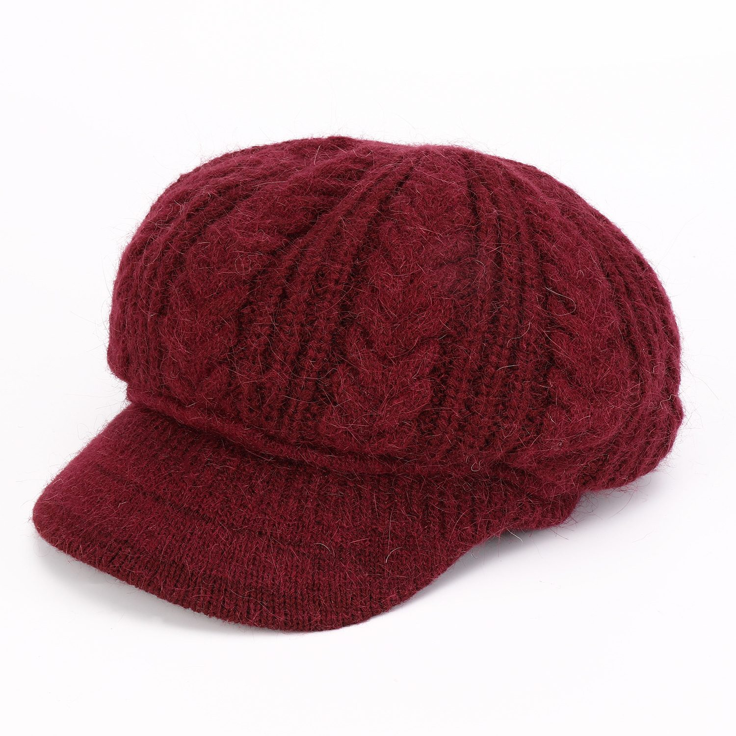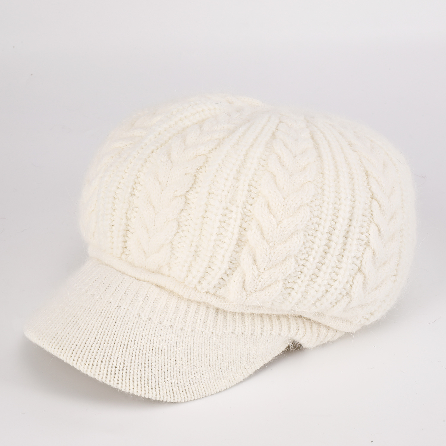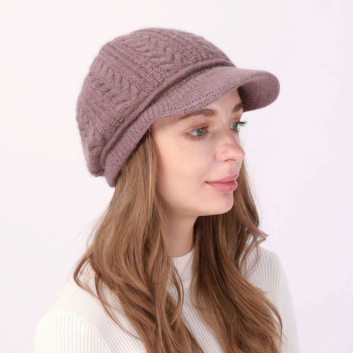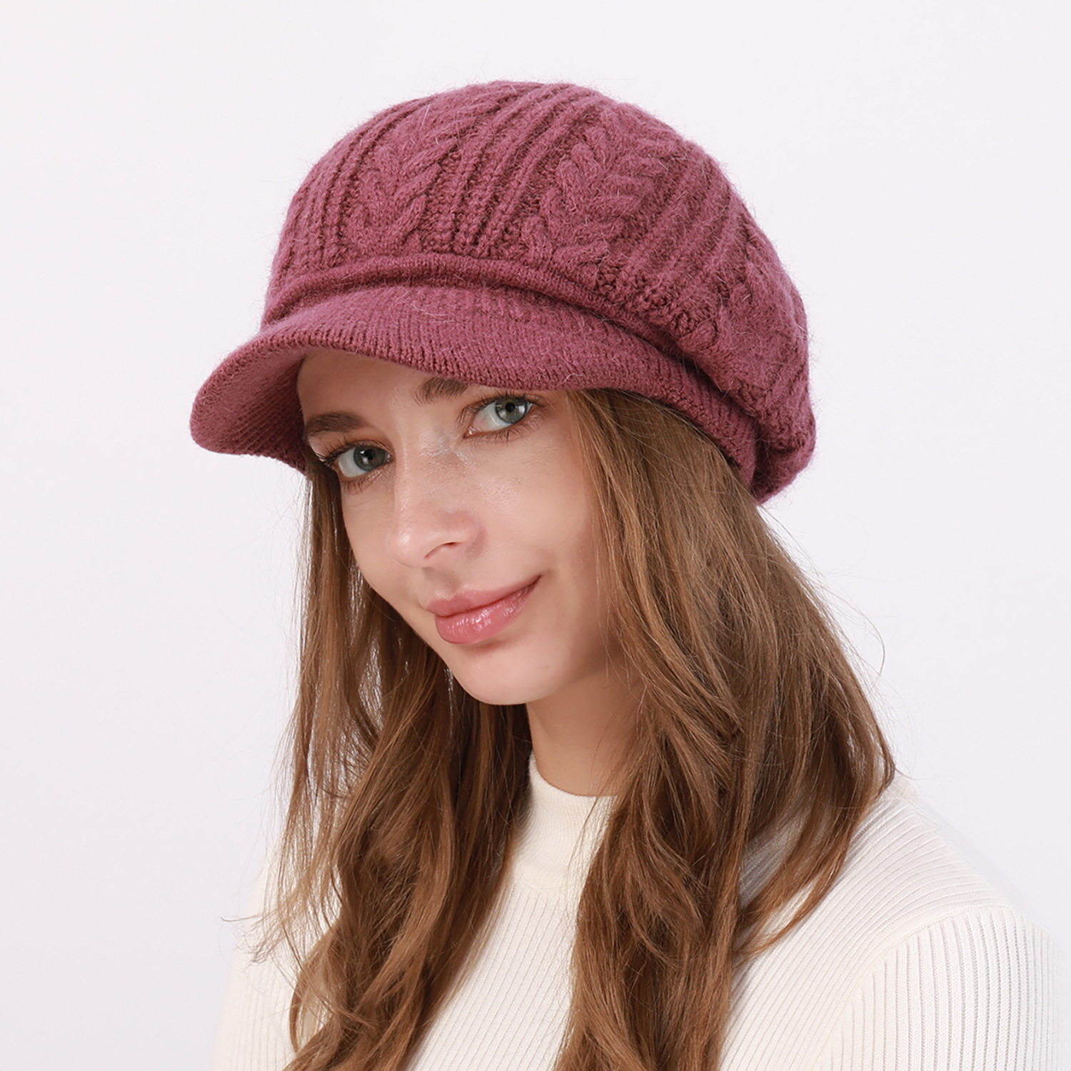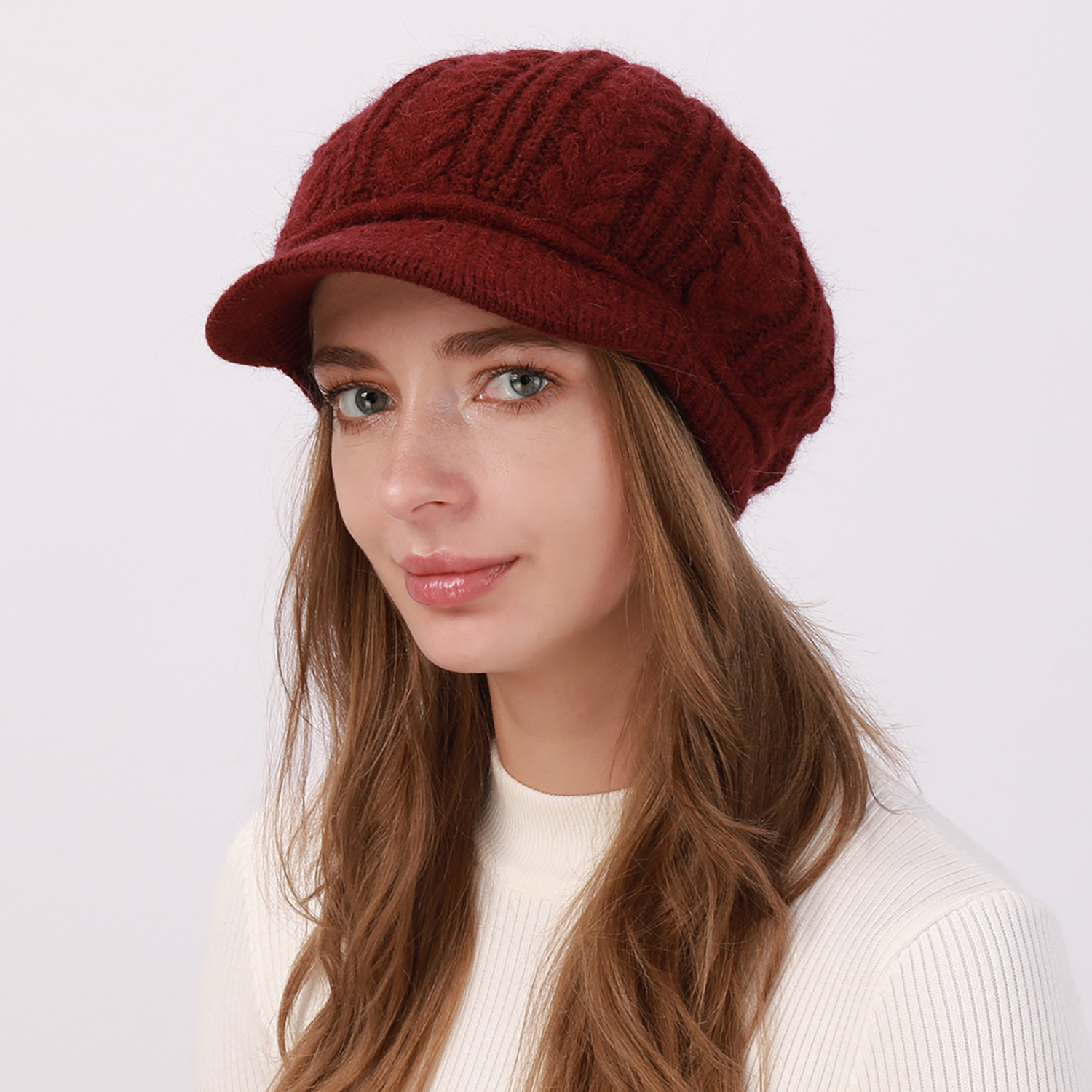 欧美秋冬季新款女加绒加厚毛线绞花鸭舌帽时尚保暖防寒贝雷针织帽