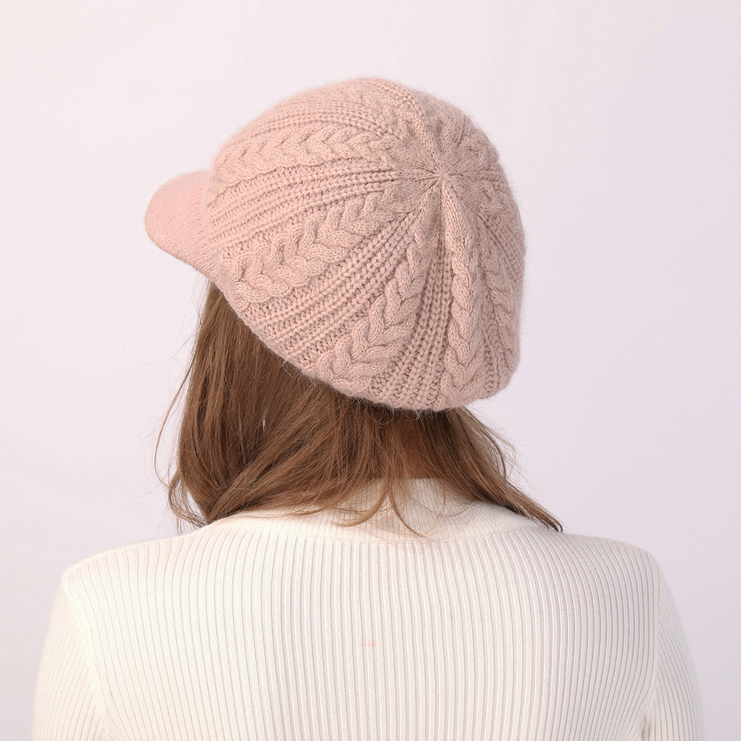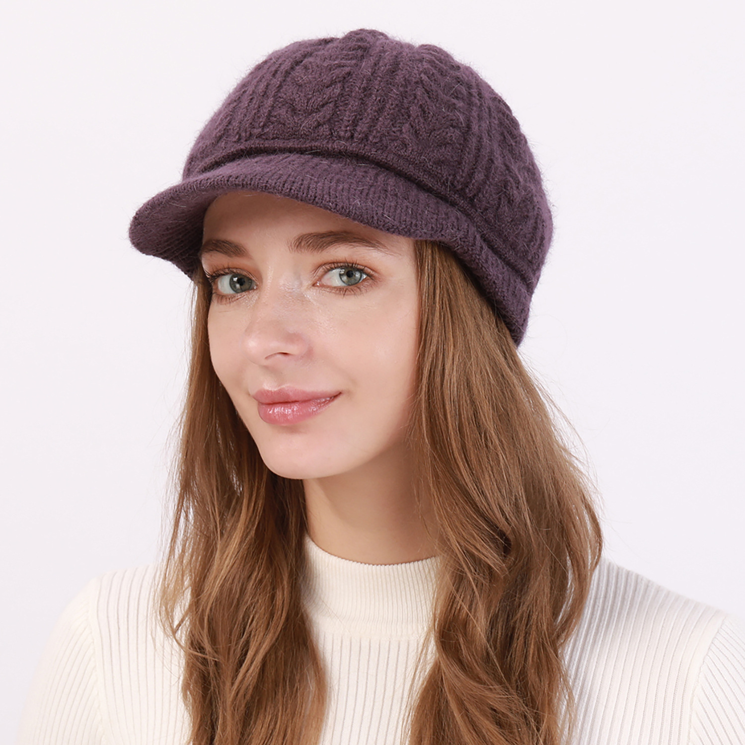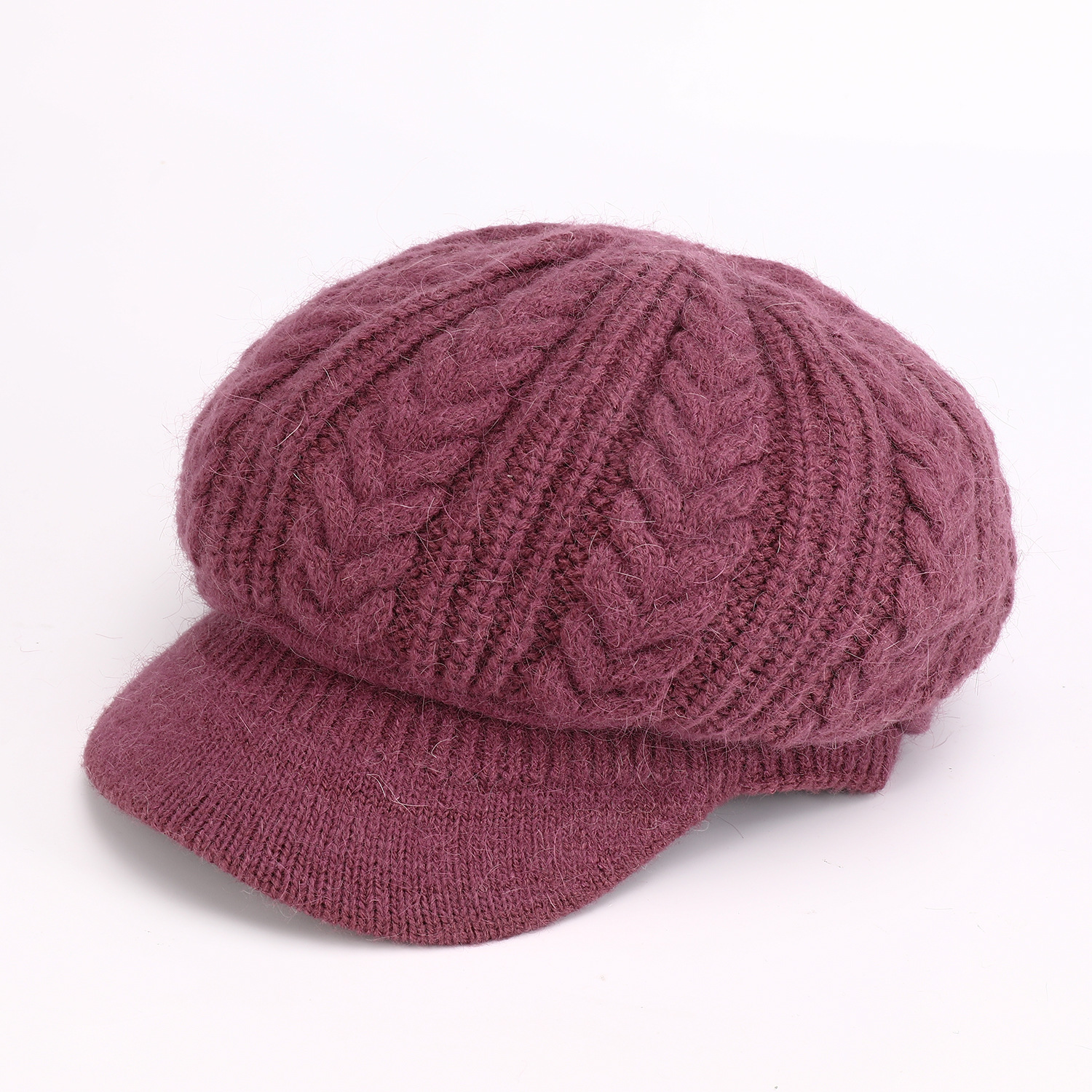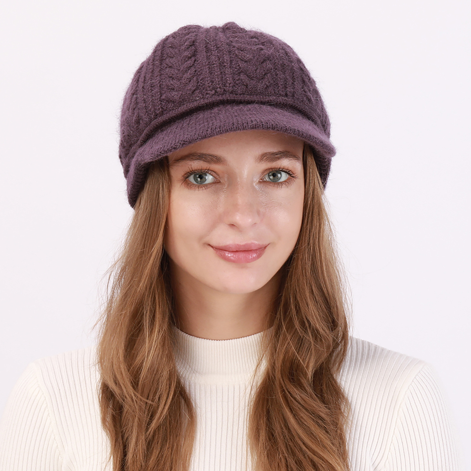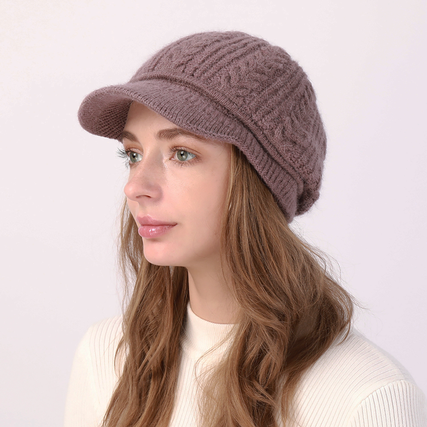 欧美秋冬季新款女加绒加厚毛线绞花鸭舌帽时尚保暖防寒贝雷针织帽