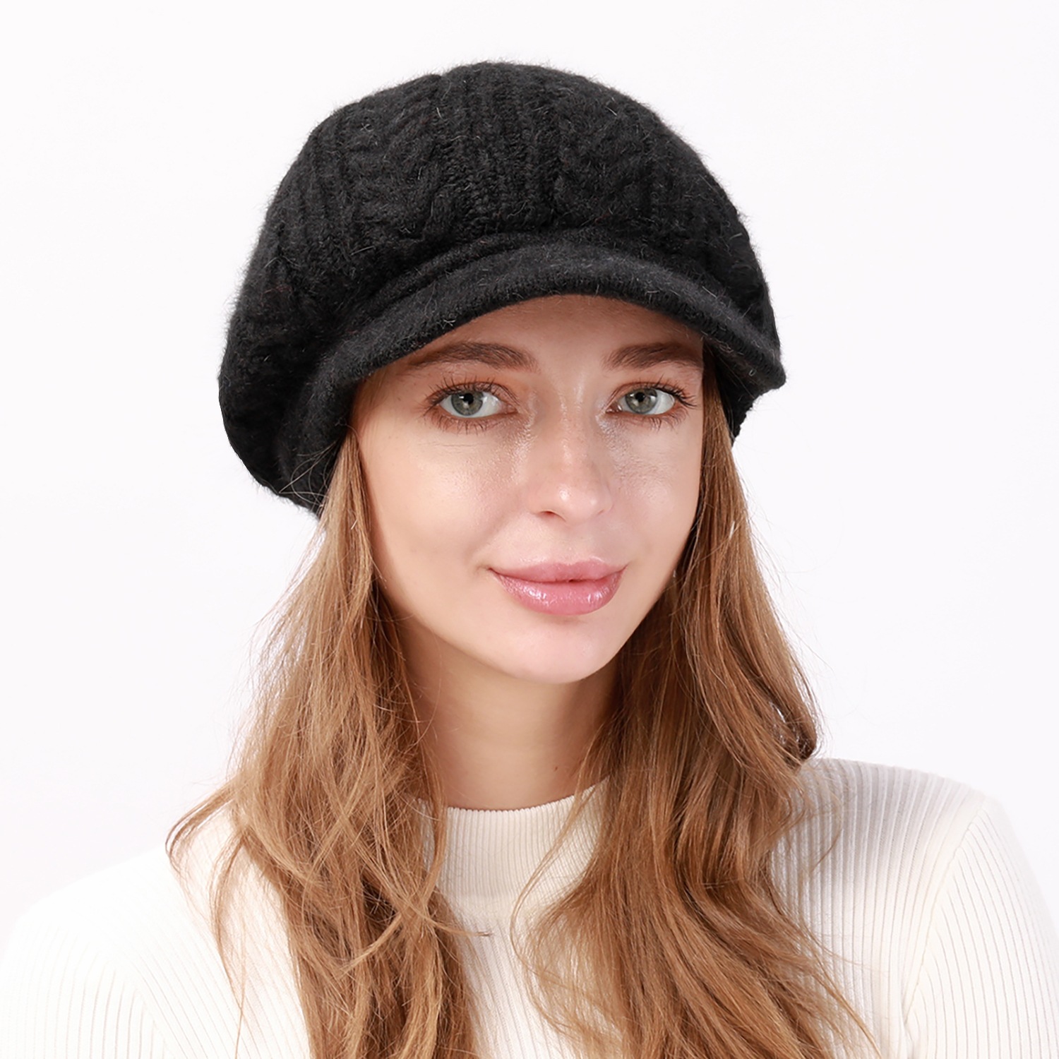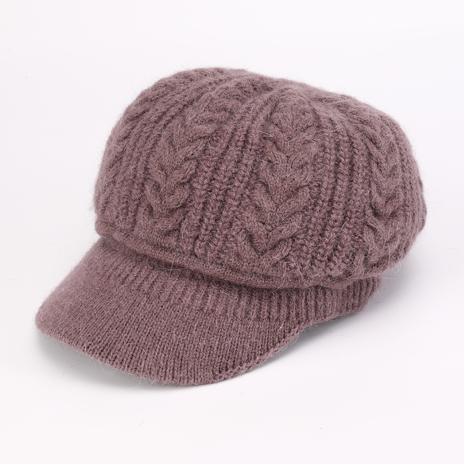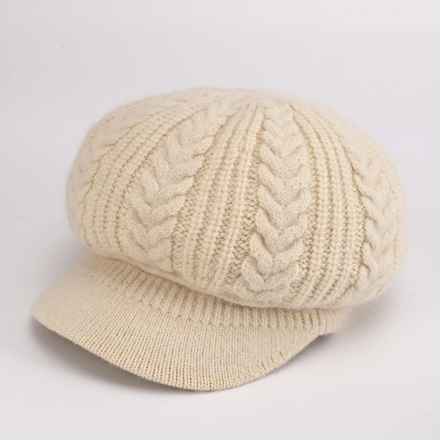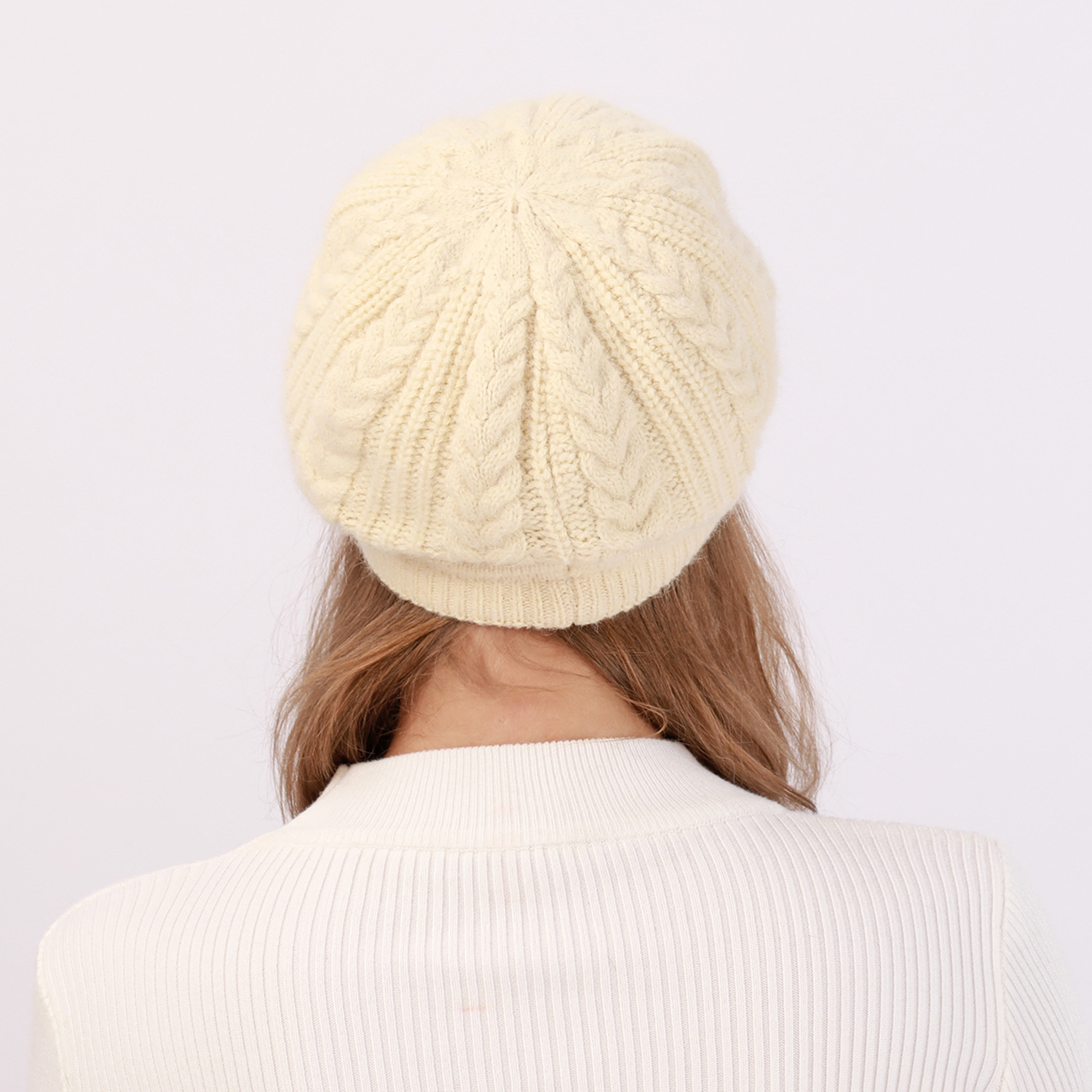 欧美秋冬季新款女加绒加厚毛线绞花鸭舌帽时尚保暖防寒贝雷针织帽