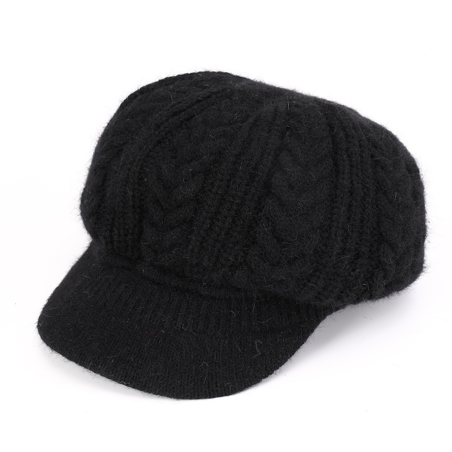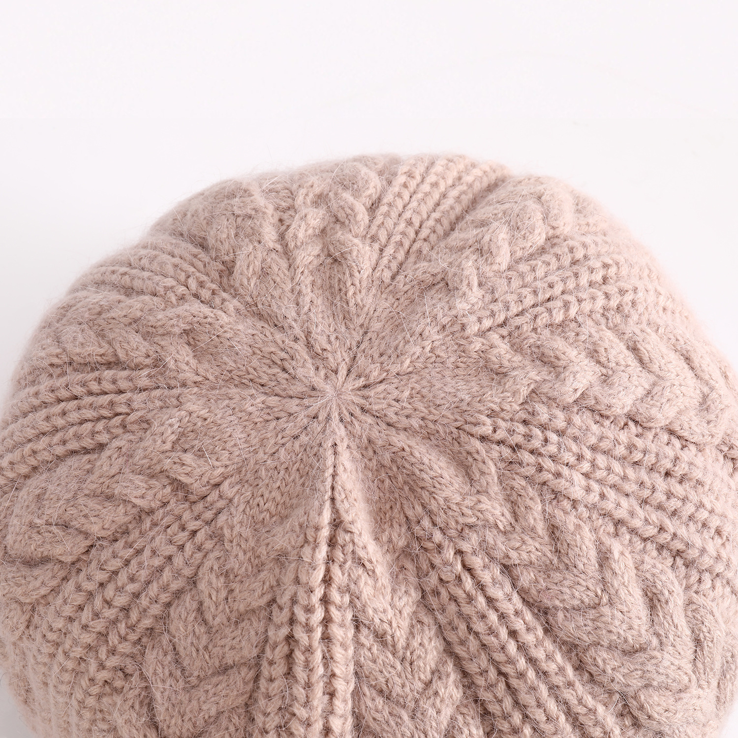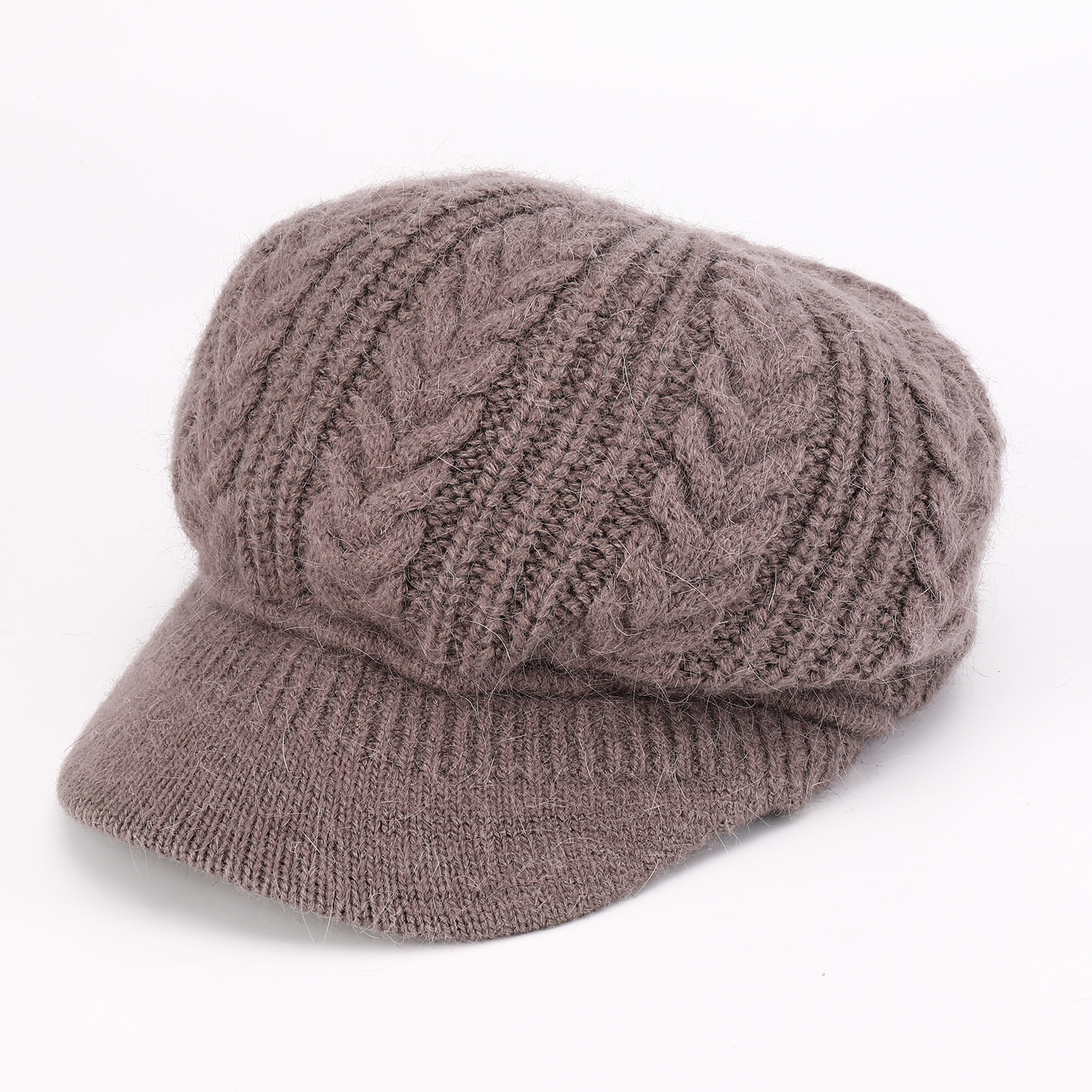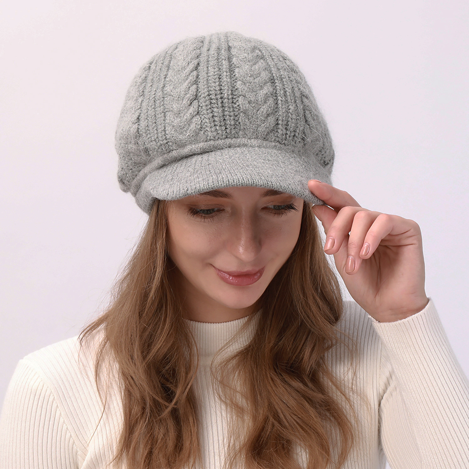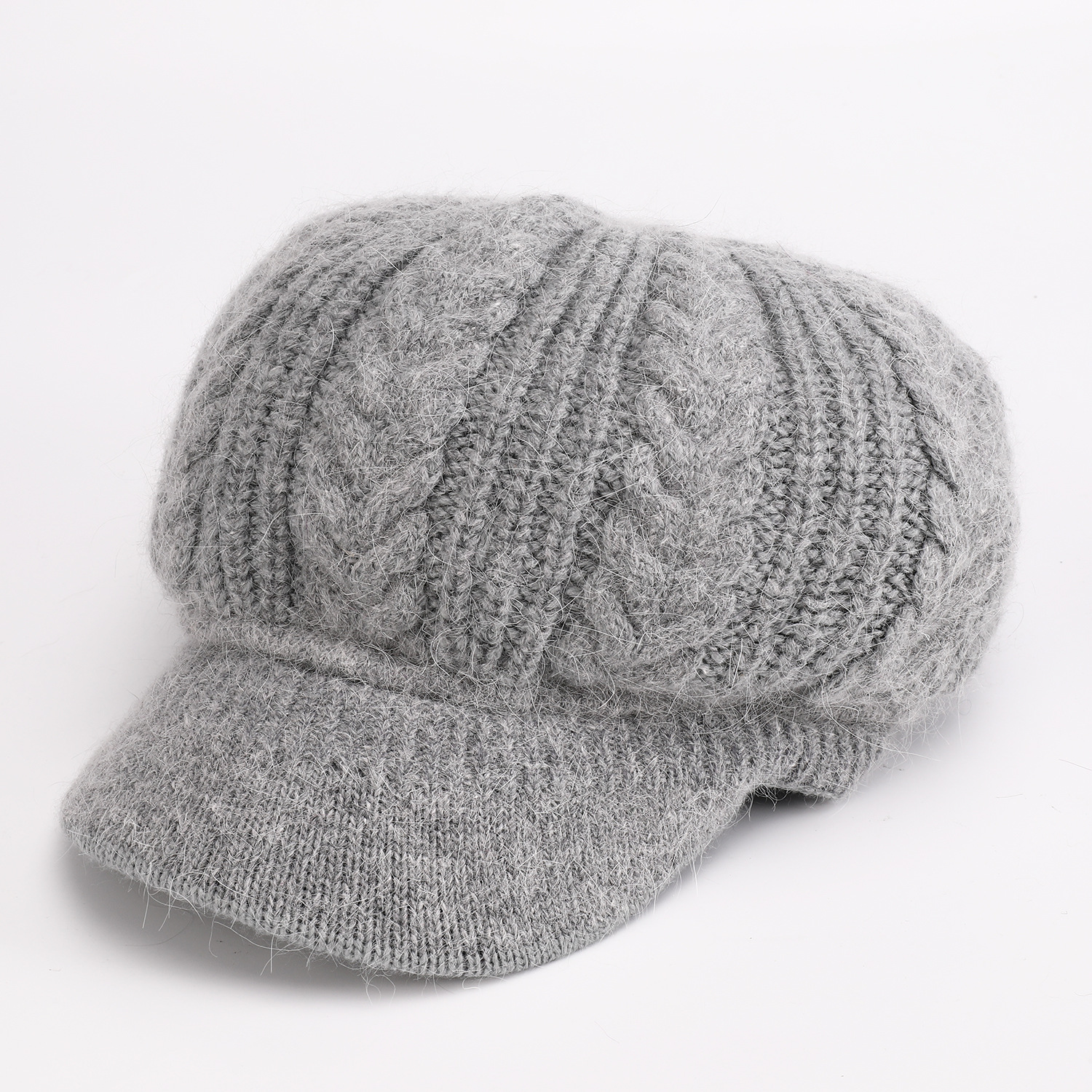 欧美秋冬季新款女加绒加厚毛线绞花鸭舌帽时尚保暖防寒贝雷针织帽