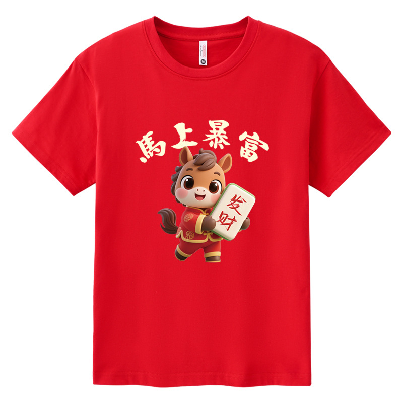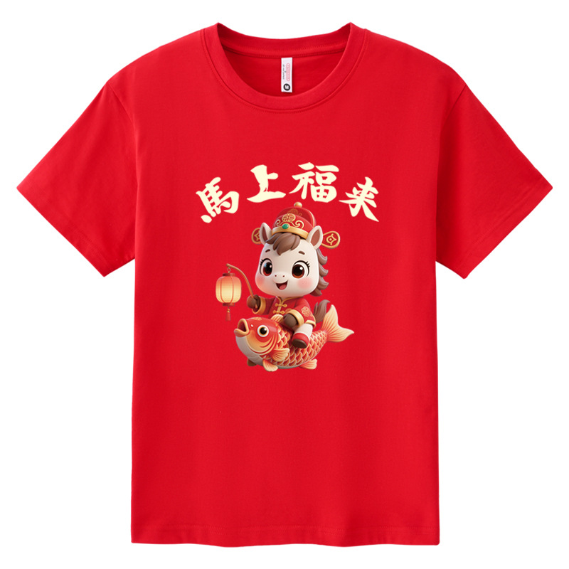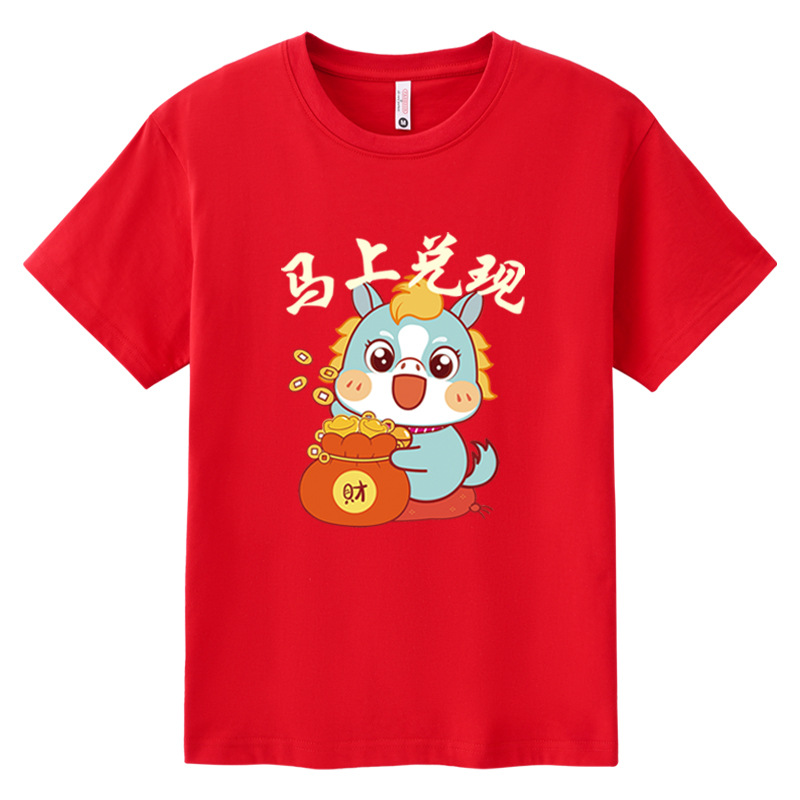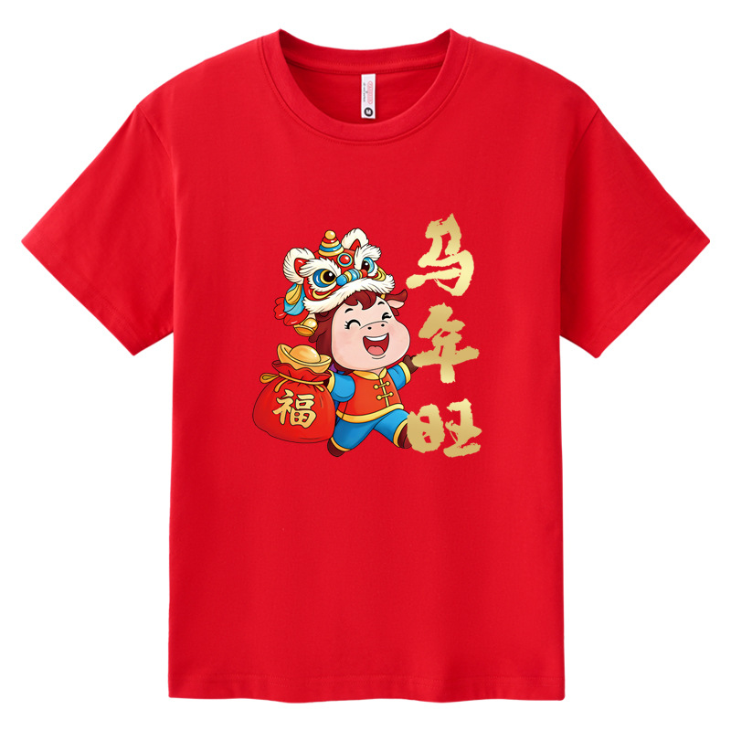 2026马年t恤新年短袖情侣装 春节公司年会活动男女本命年红色衣服