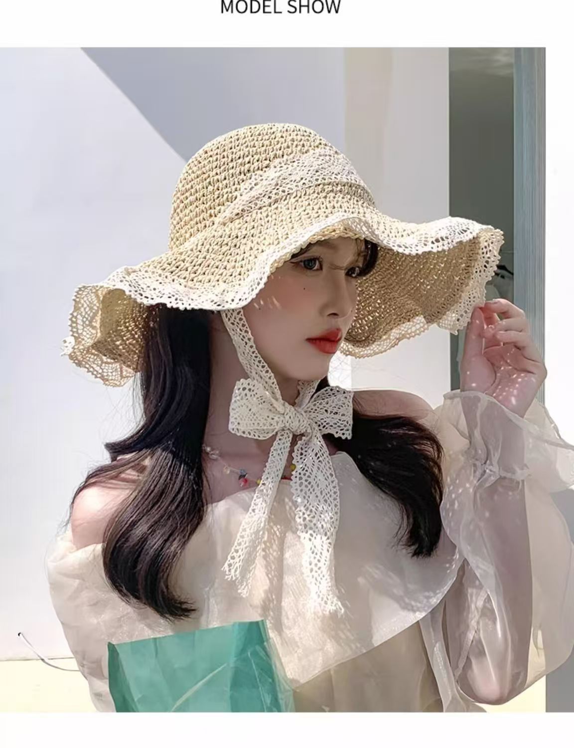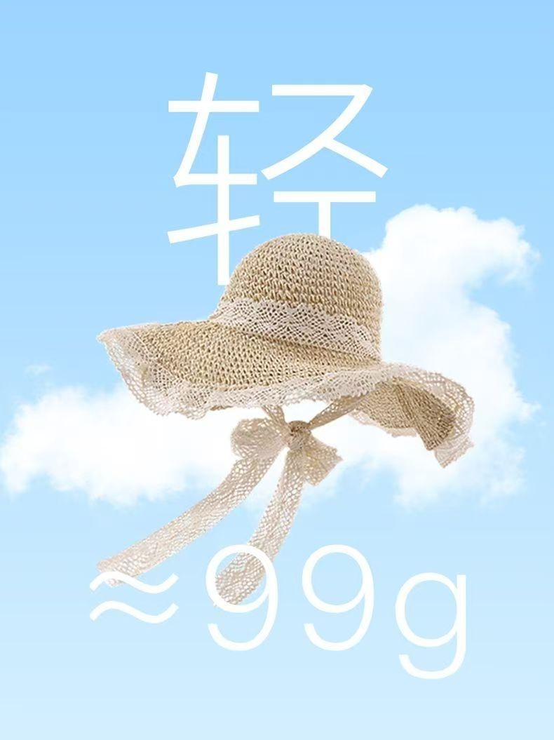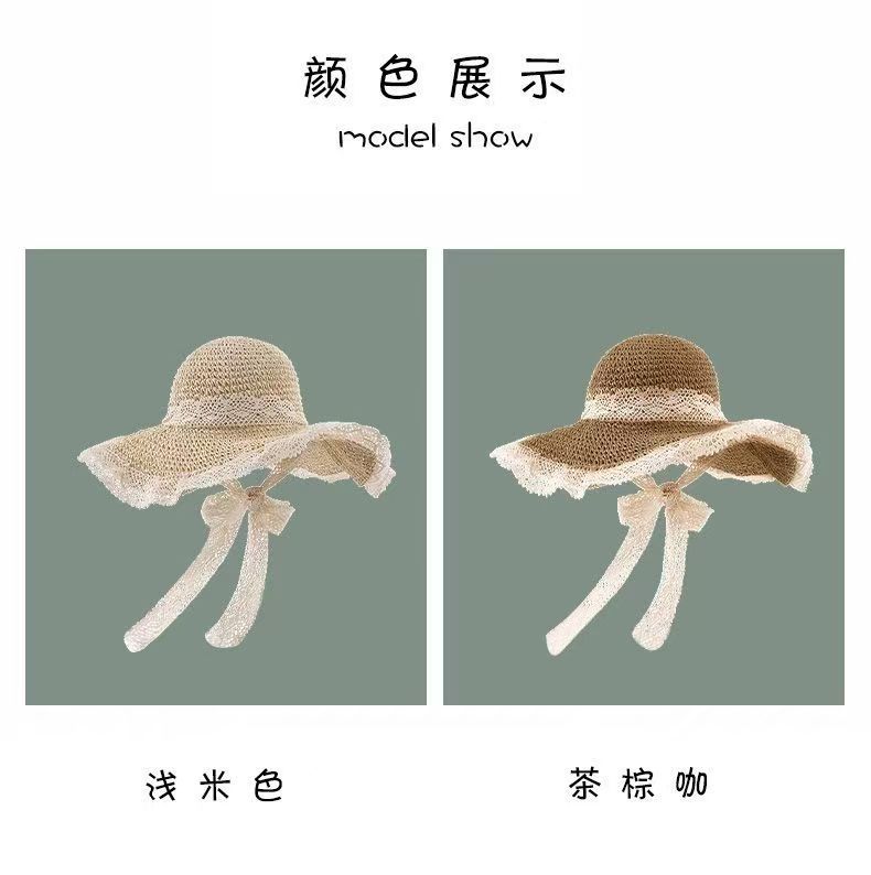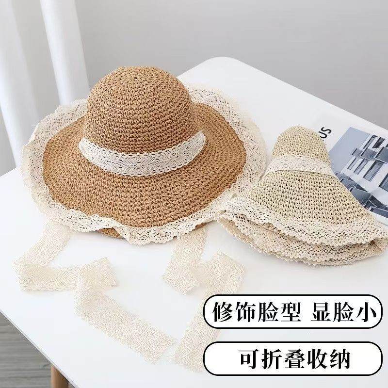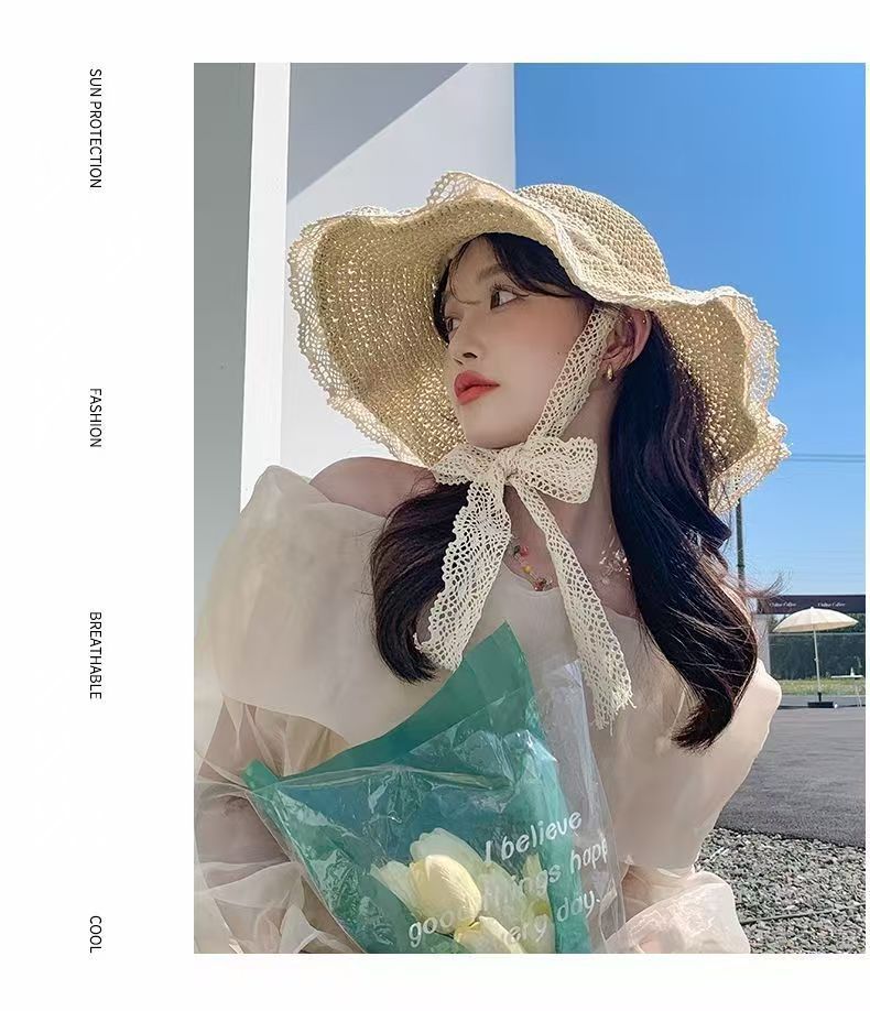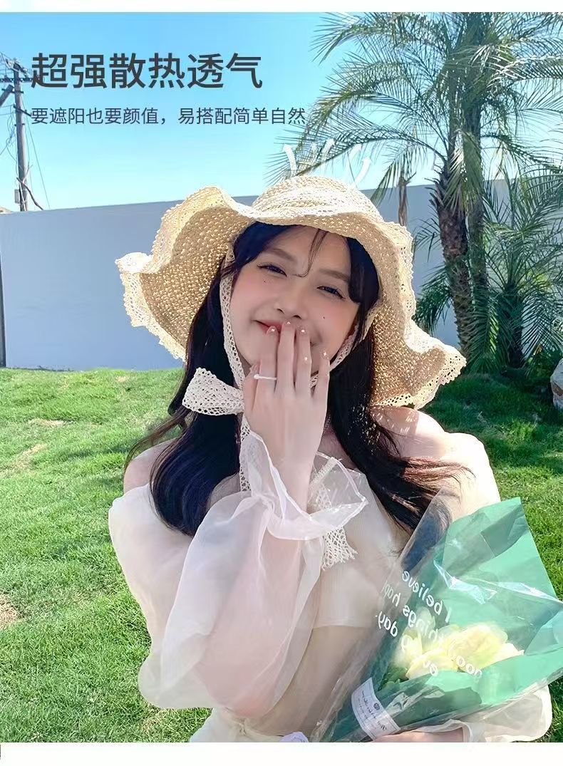 【草编材质】2025夏季新款法式草帽女透气蕾丝花边镂空防晒沙滩帽