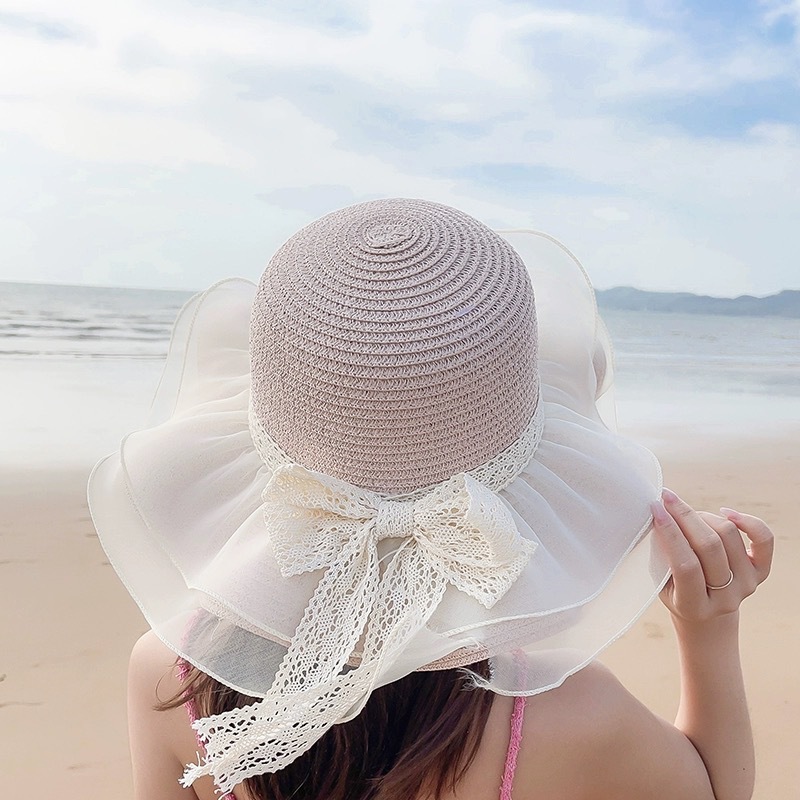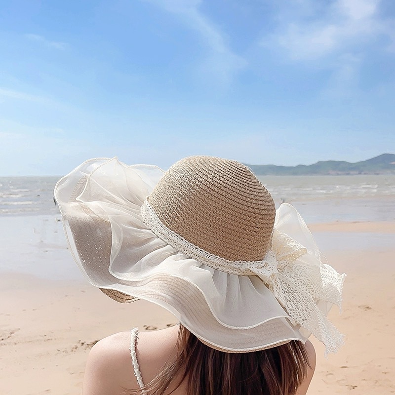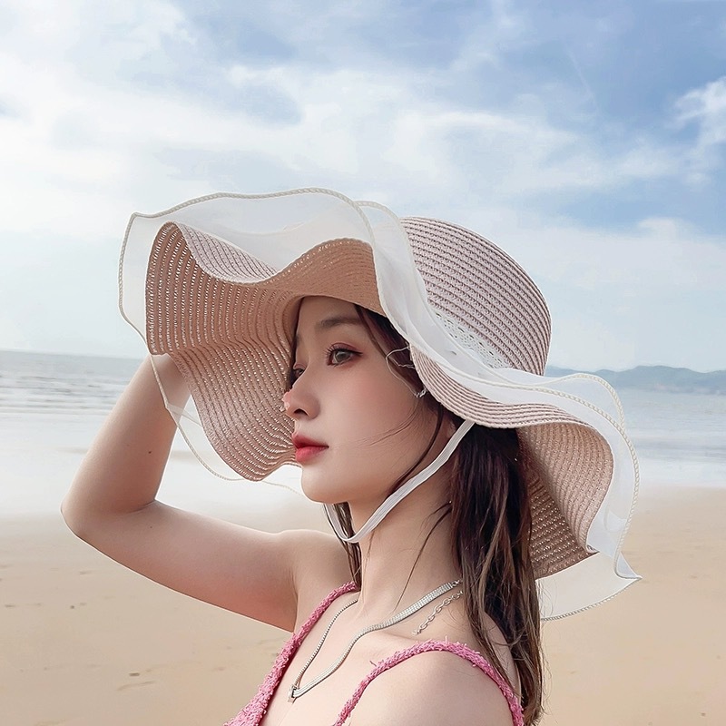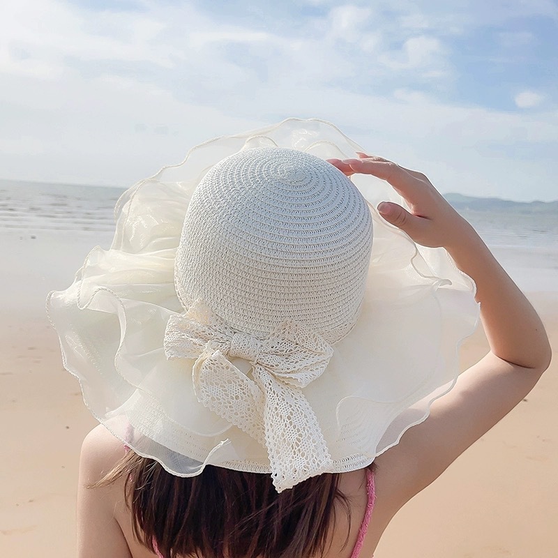 亲子网纱防晒夏季草帽亲子儿童遮阳度假凉帽沙滩帽仙女女款帽子