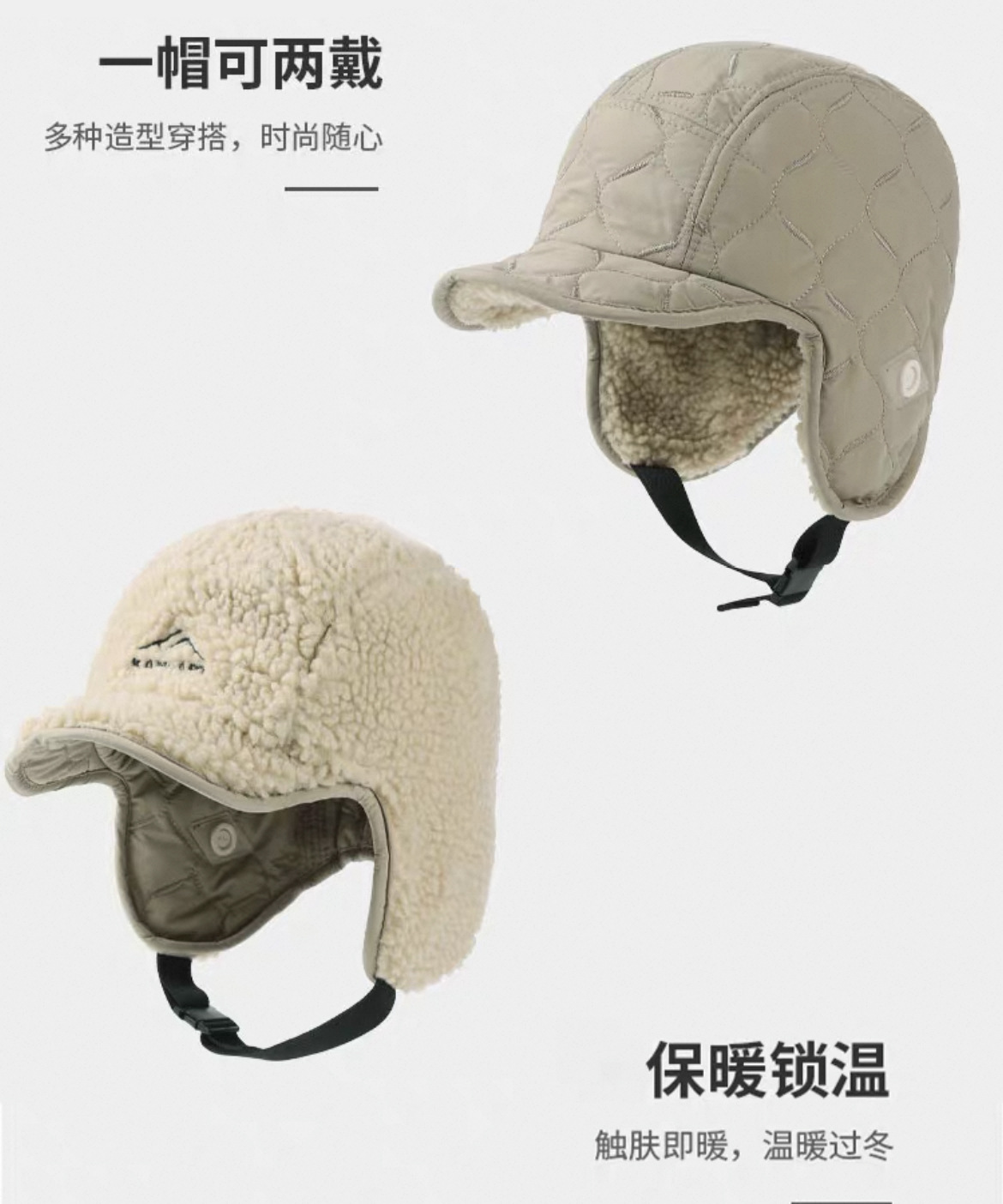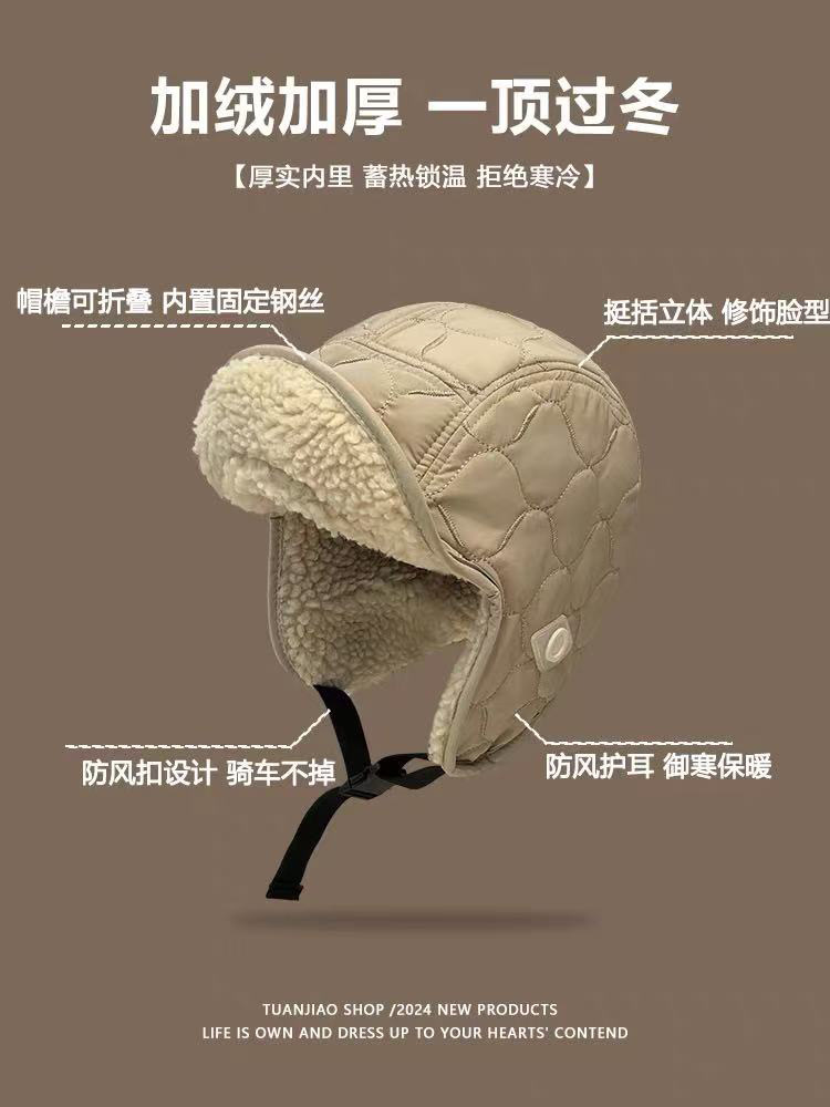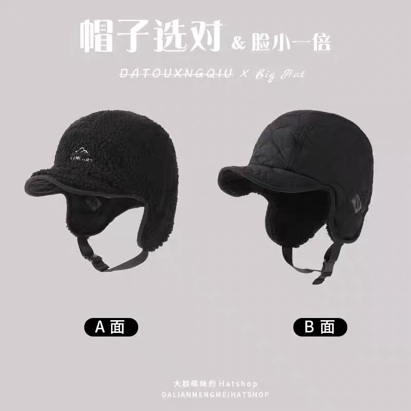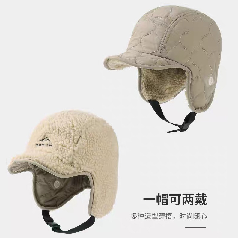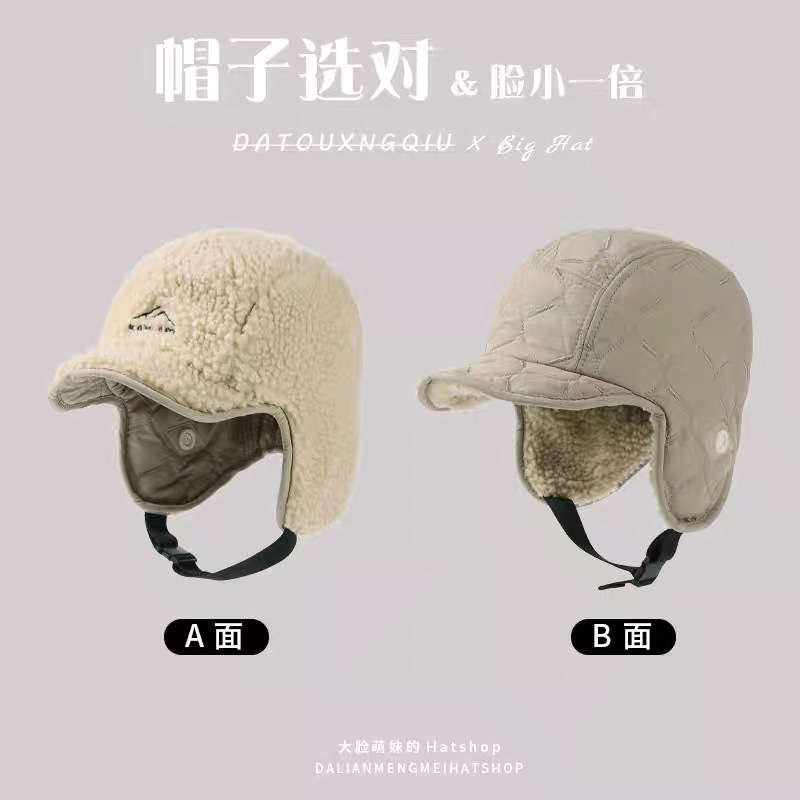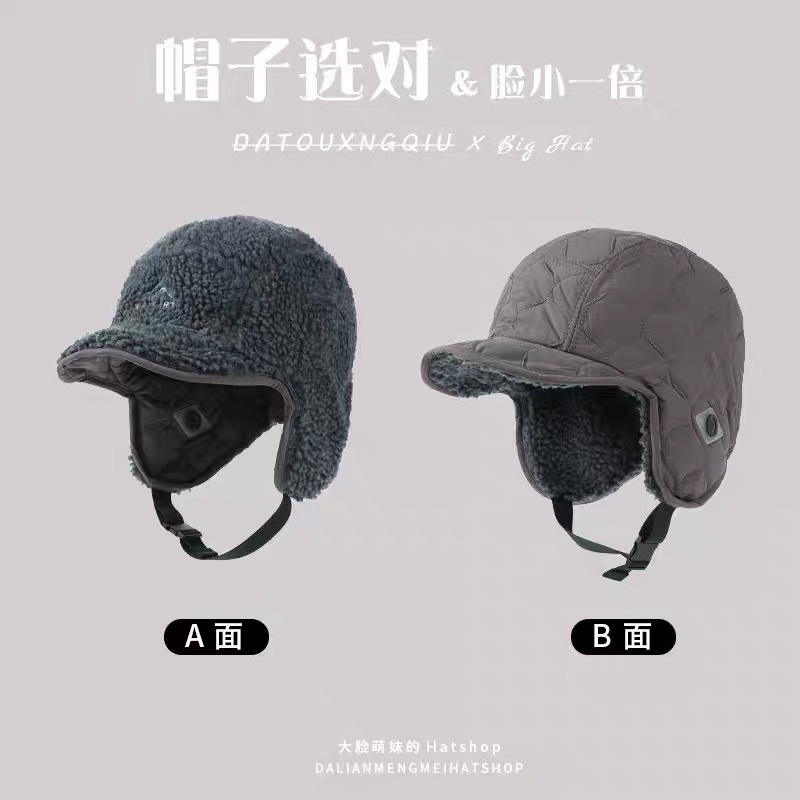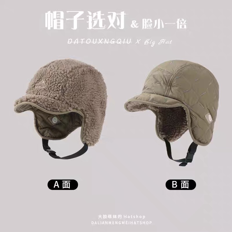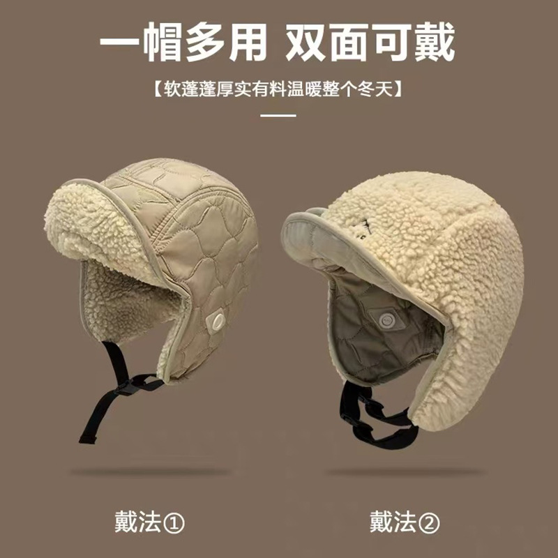 雷锋帽女双面戴东北棉帽冬季加厚加绒护耳帽户外滑雪骑车飞行帽子