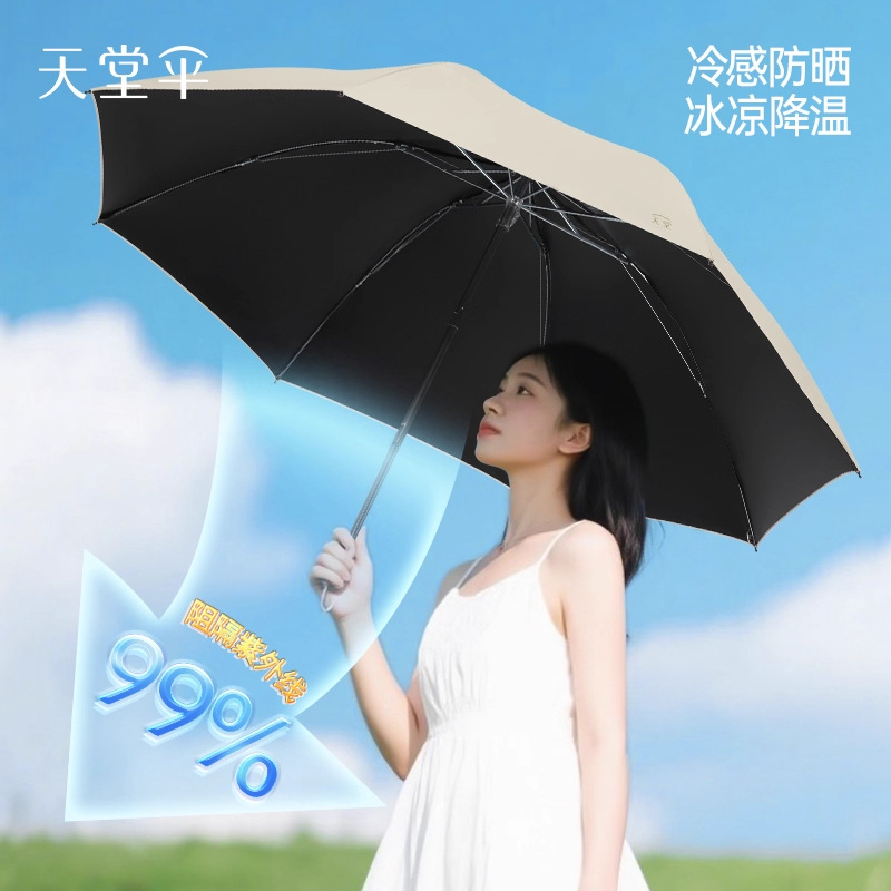 天堂伞批发38093E超轻便携8骨晴雨两用黑胶防晒伞印刷logo广告伞