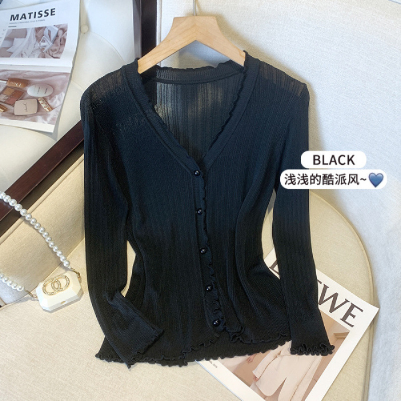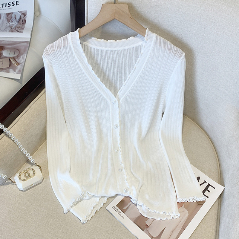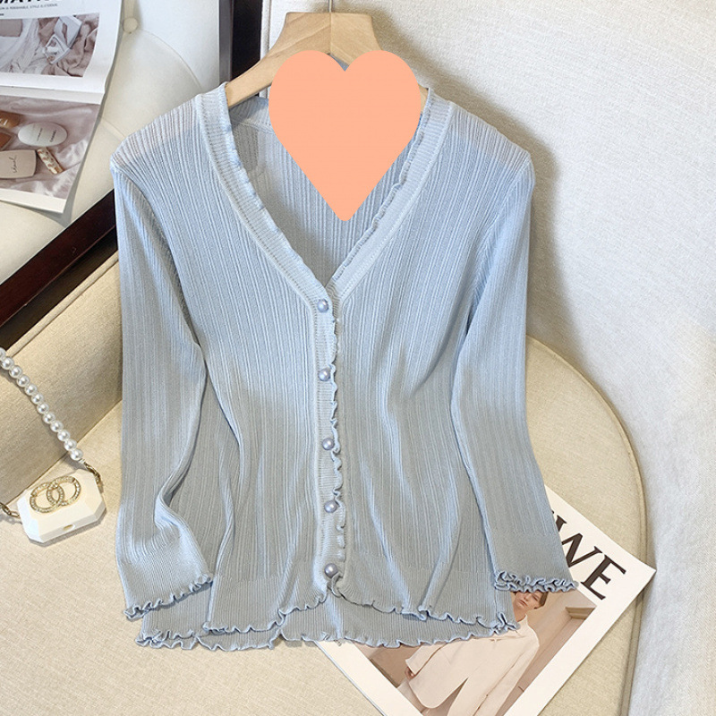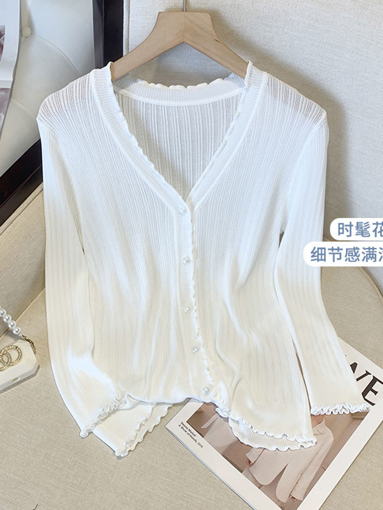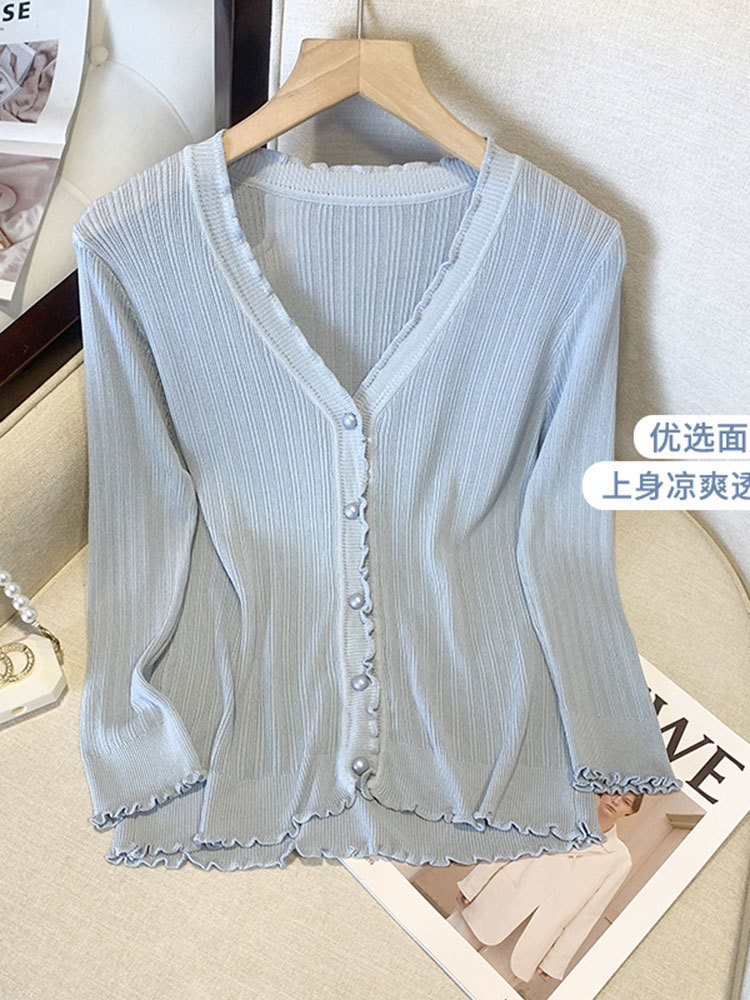 300斤大码女装冰丝防晒开衫外套V领披肩夏季胖mm木耳边外搭空调衫