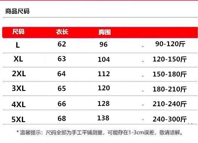 | 5XL 建议240-300斤 | USD $10.63 | 1000 piece available |