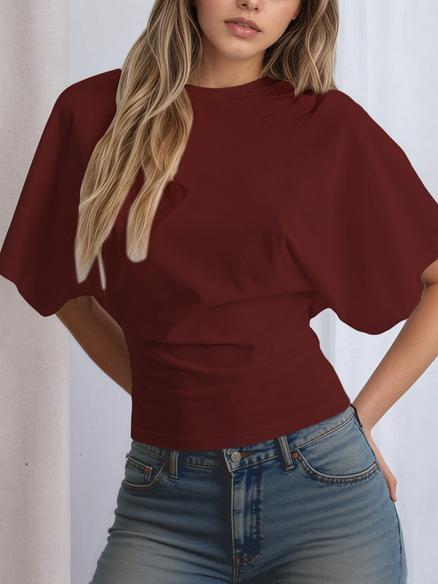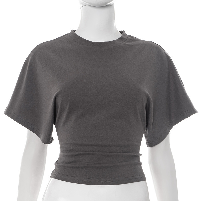 Y25TP031秋季法式短袖t恤女夏季宽松显瘦甜辣设计感正肩上衣