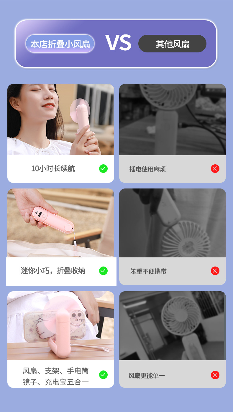 便携手持迷你小风扇 可折叠随身usb学生宿舍小型带充电超静音风扇