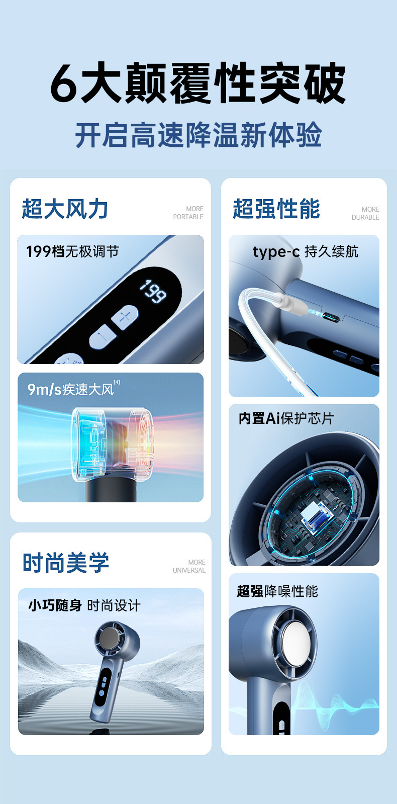 家用手持便携制冷小风扇户外旅行露营随身充电学生宿舍礼品小风扇