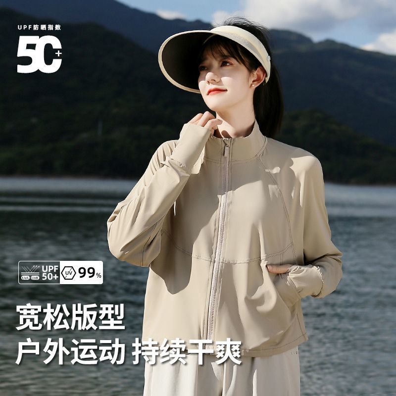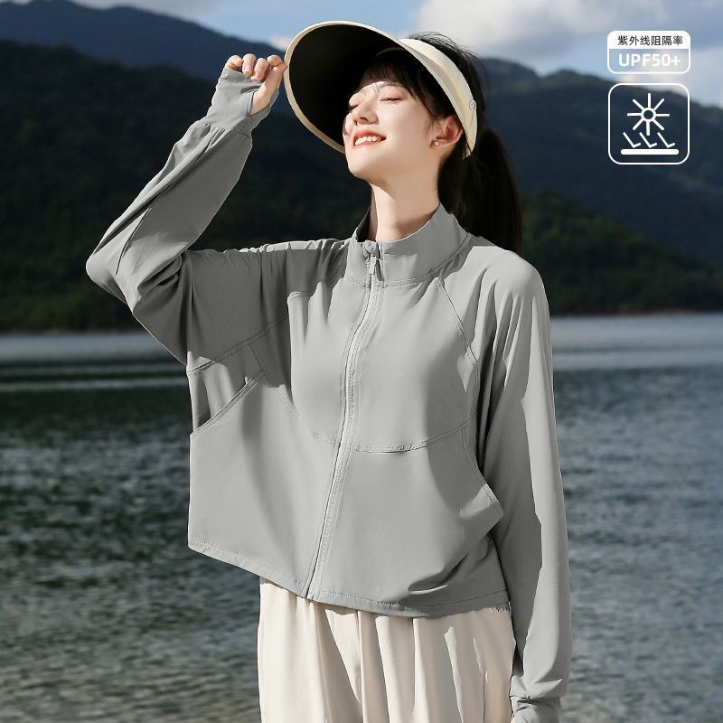 防晒衣女夏季新款立领户外运动防紫外线冰丝凉感透气薄外套防晒服