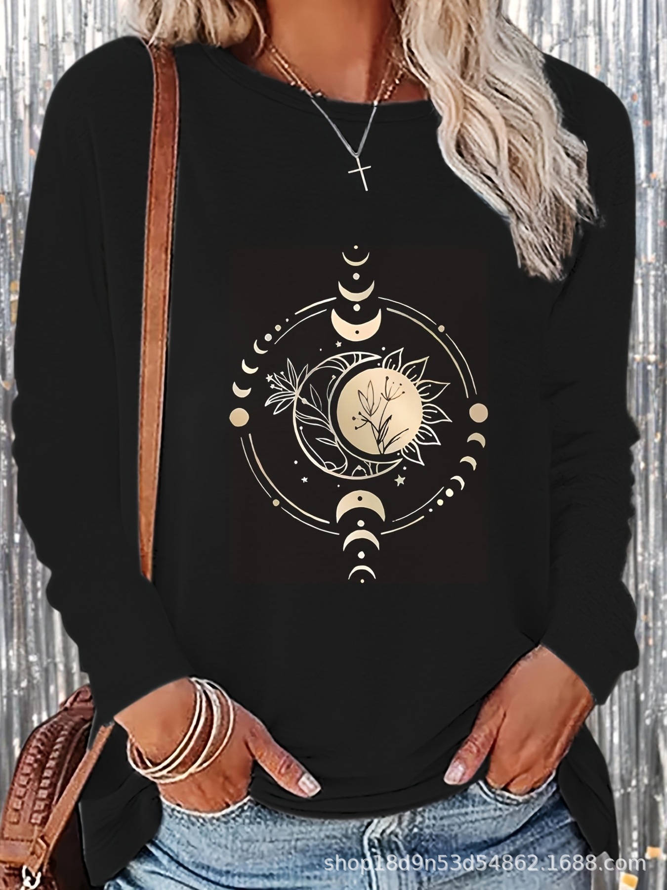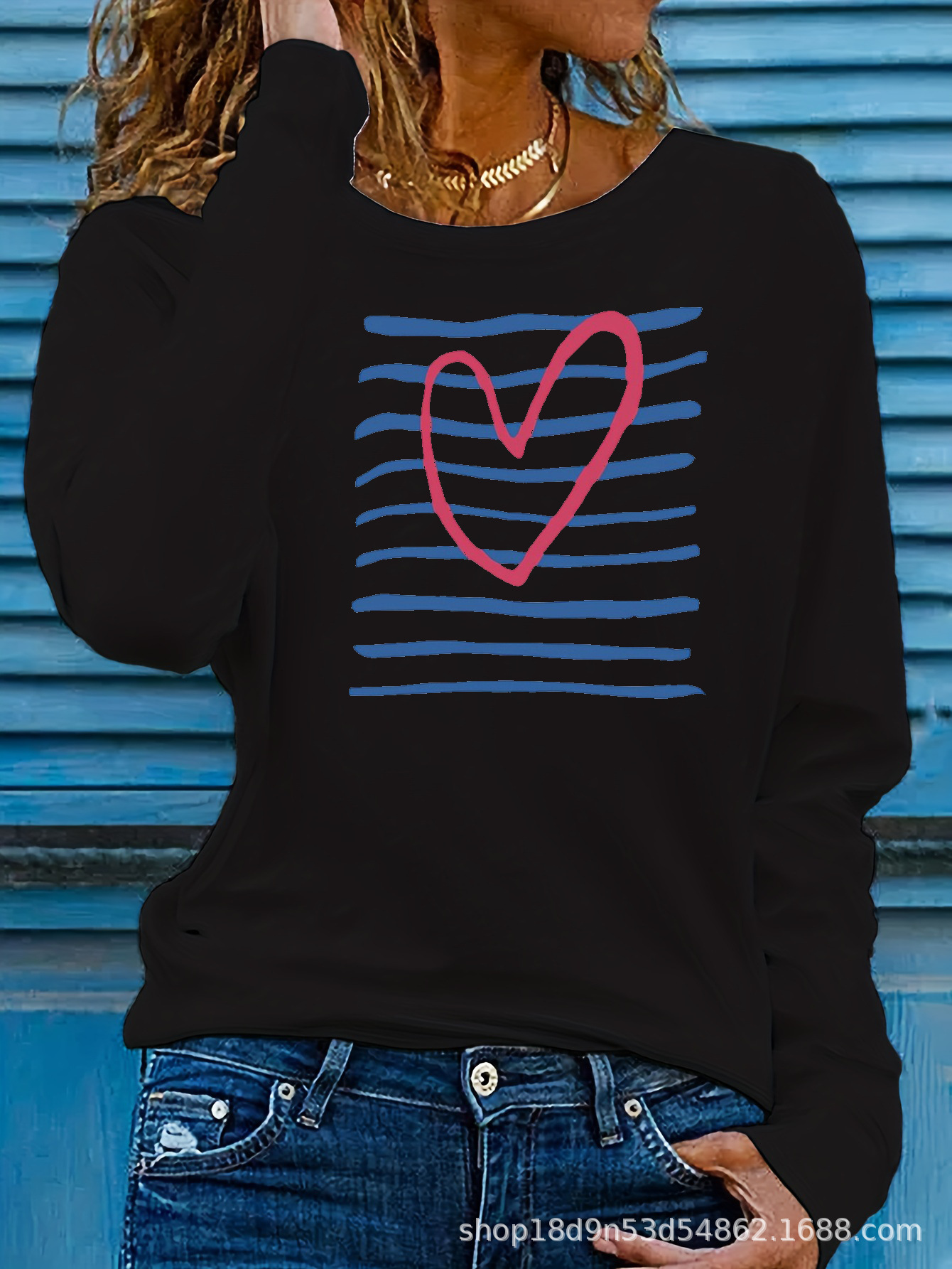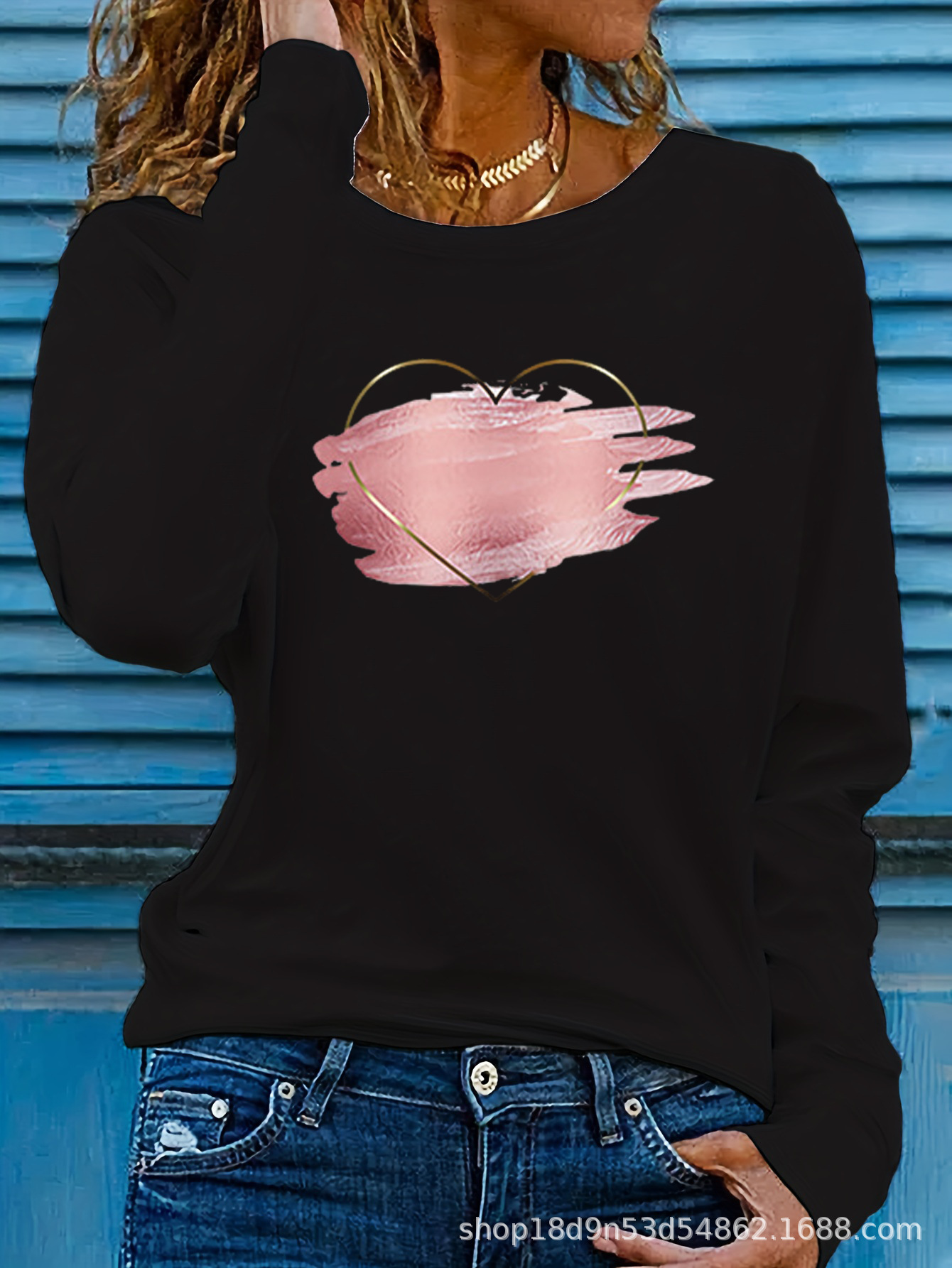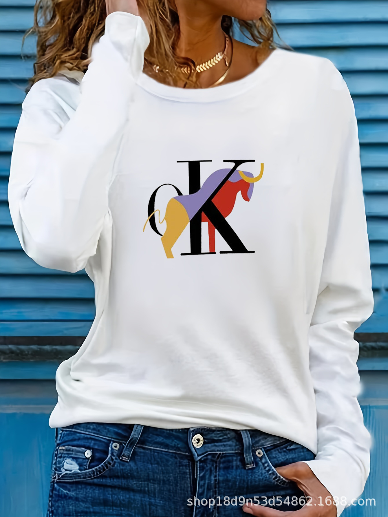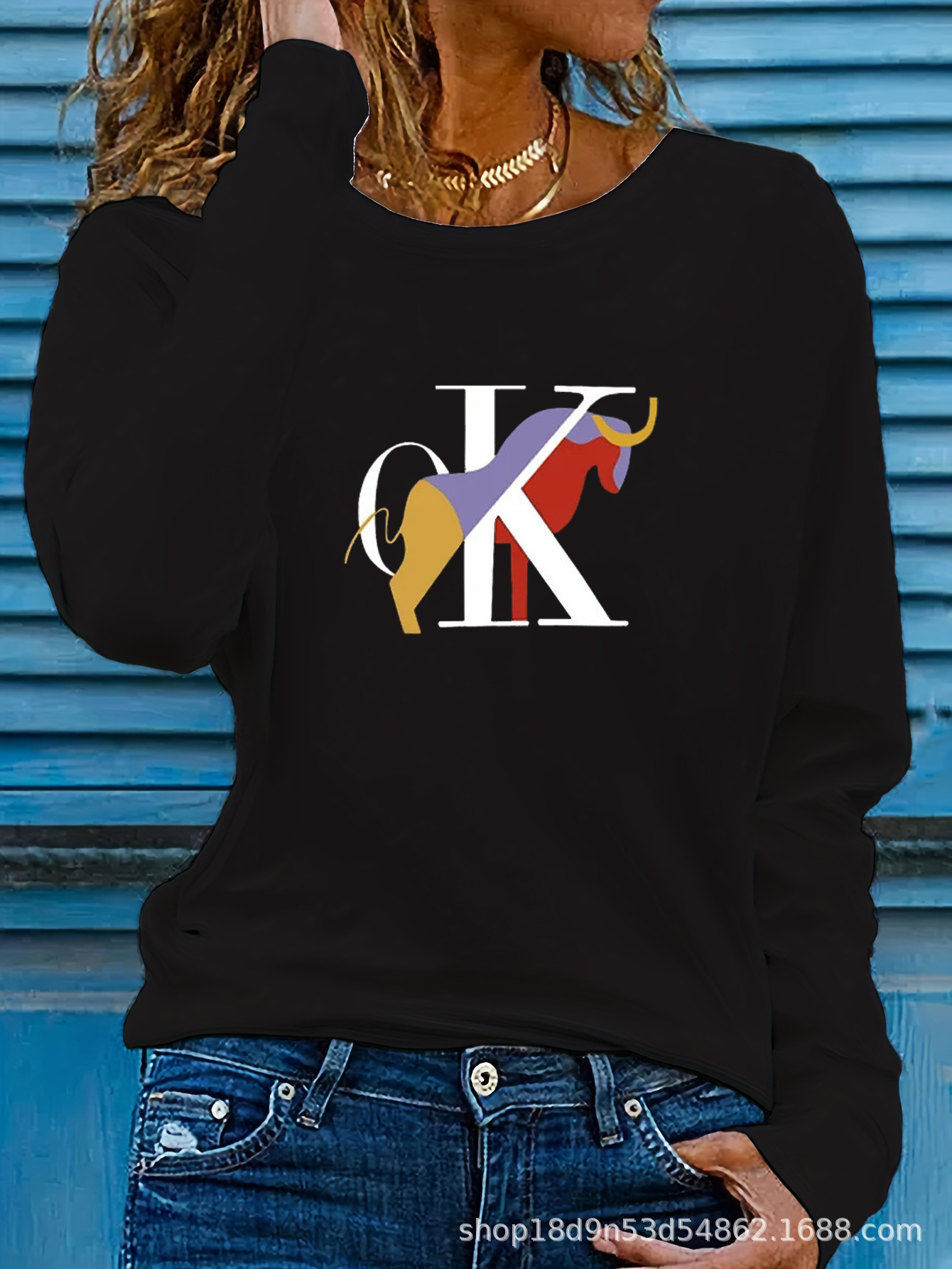 外贸现货印花T恤长袖女装秋冬跨境新款时尚休闲圆领长袖T恤上衣女
