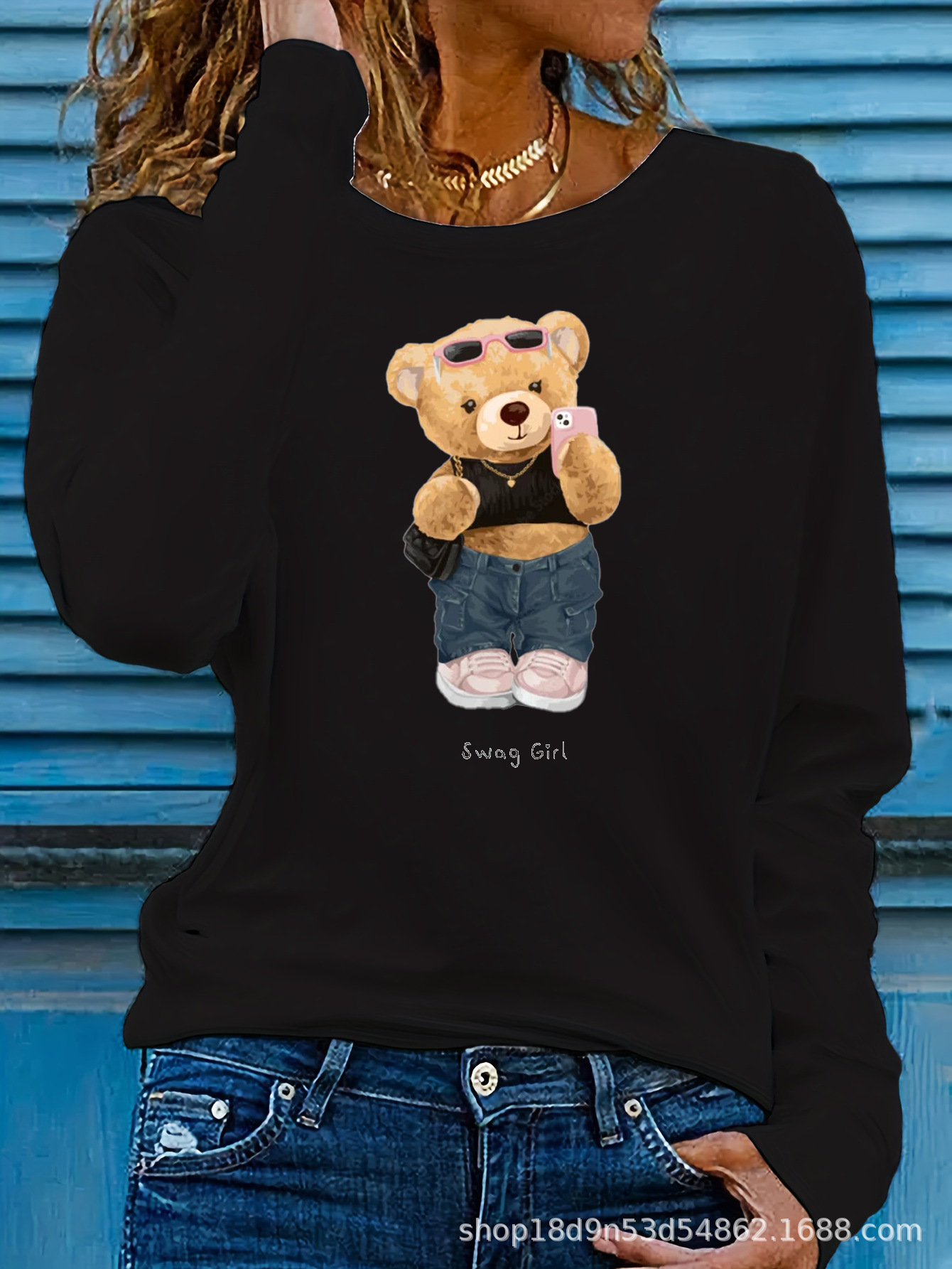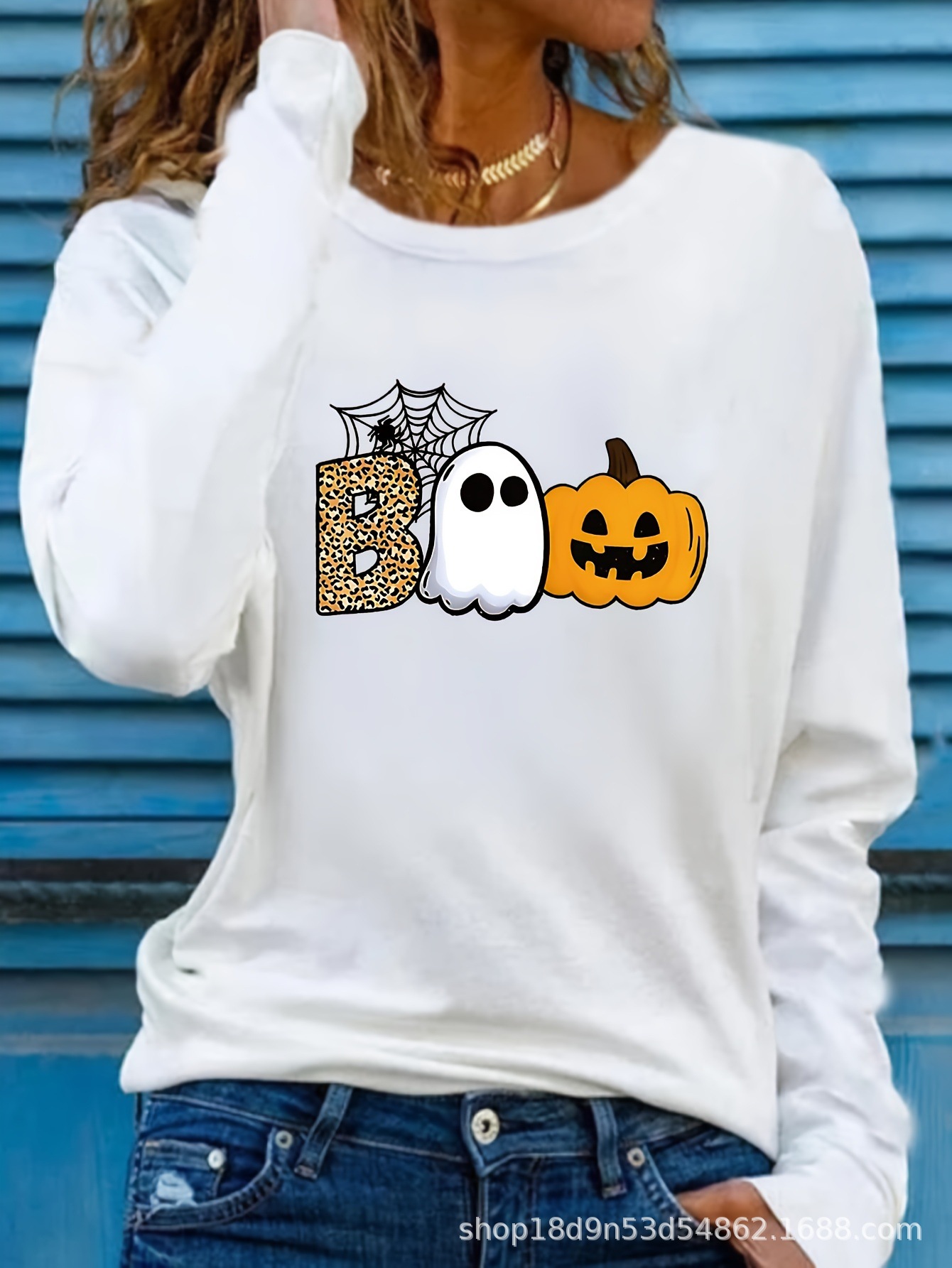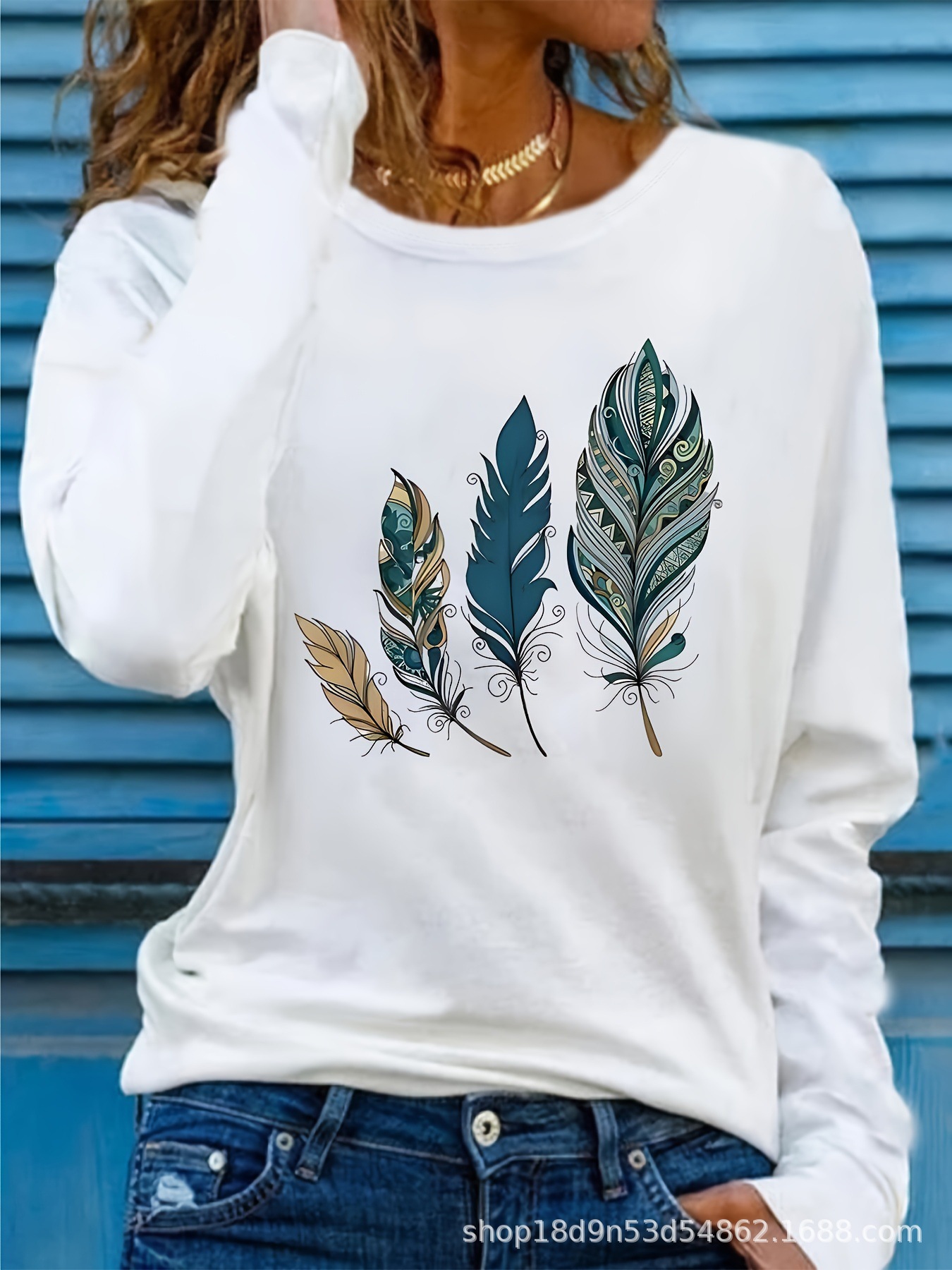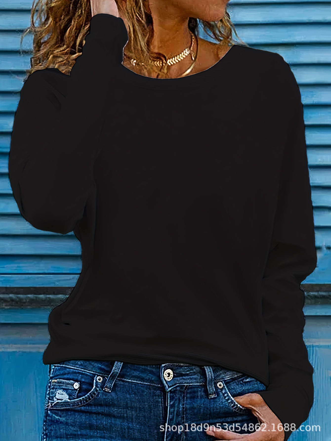 外贸现货印花T恤长袖女装秋冬跨境新款时尚休闲圆领长袖T恤上衣女