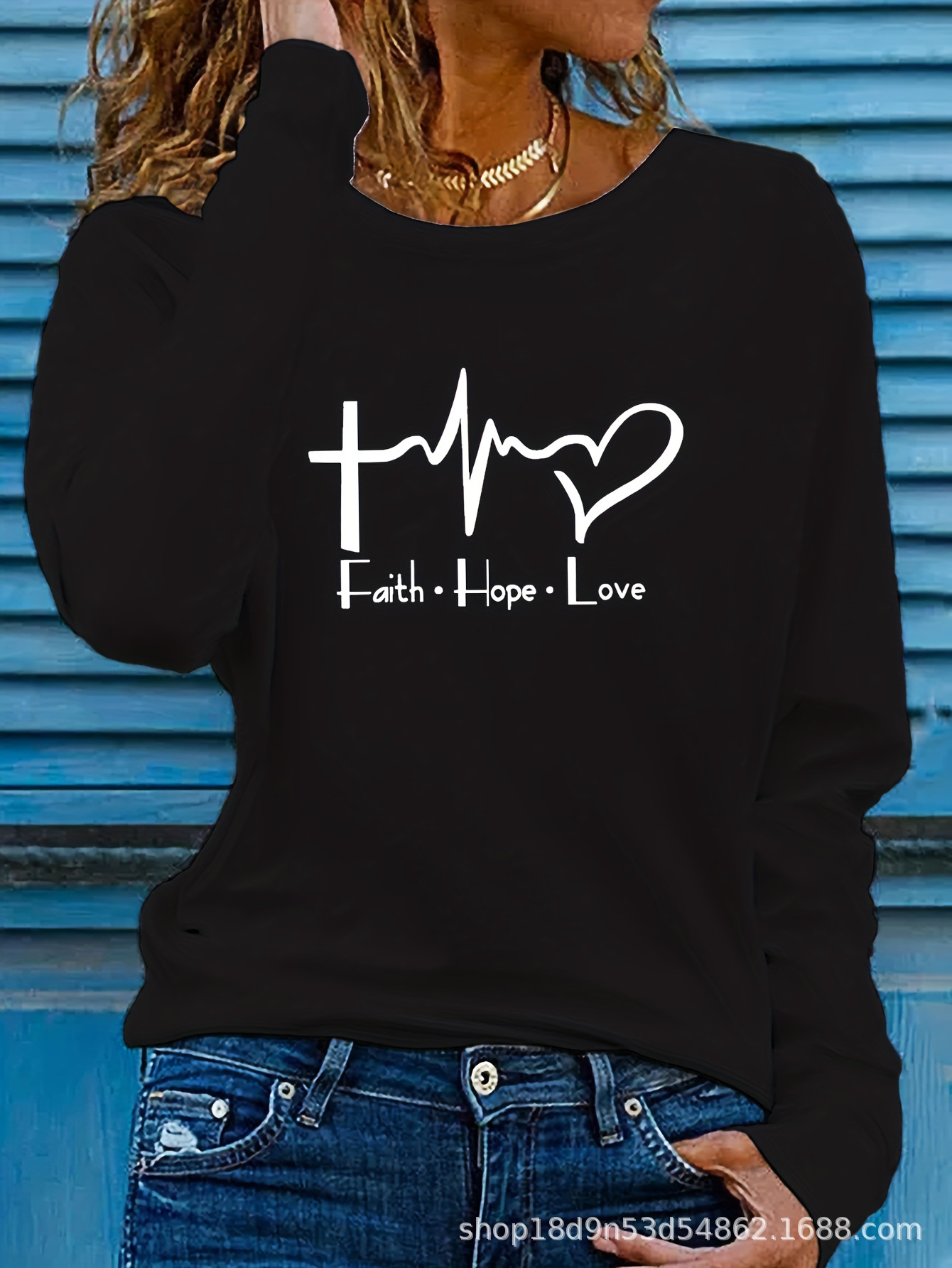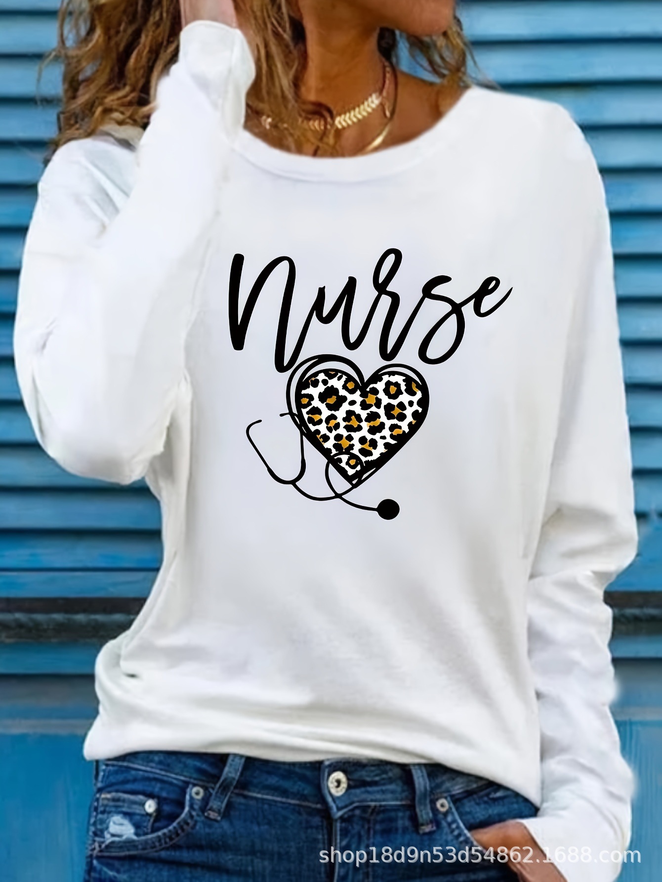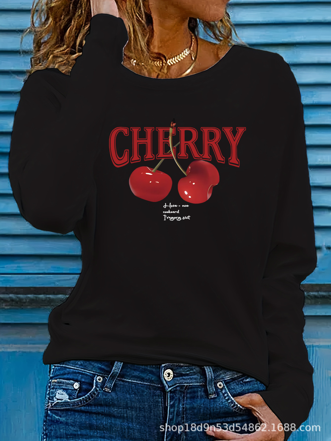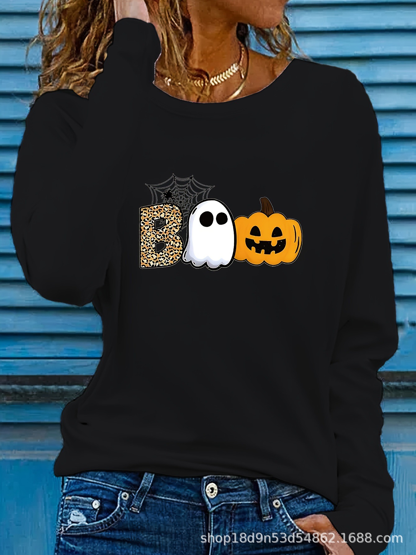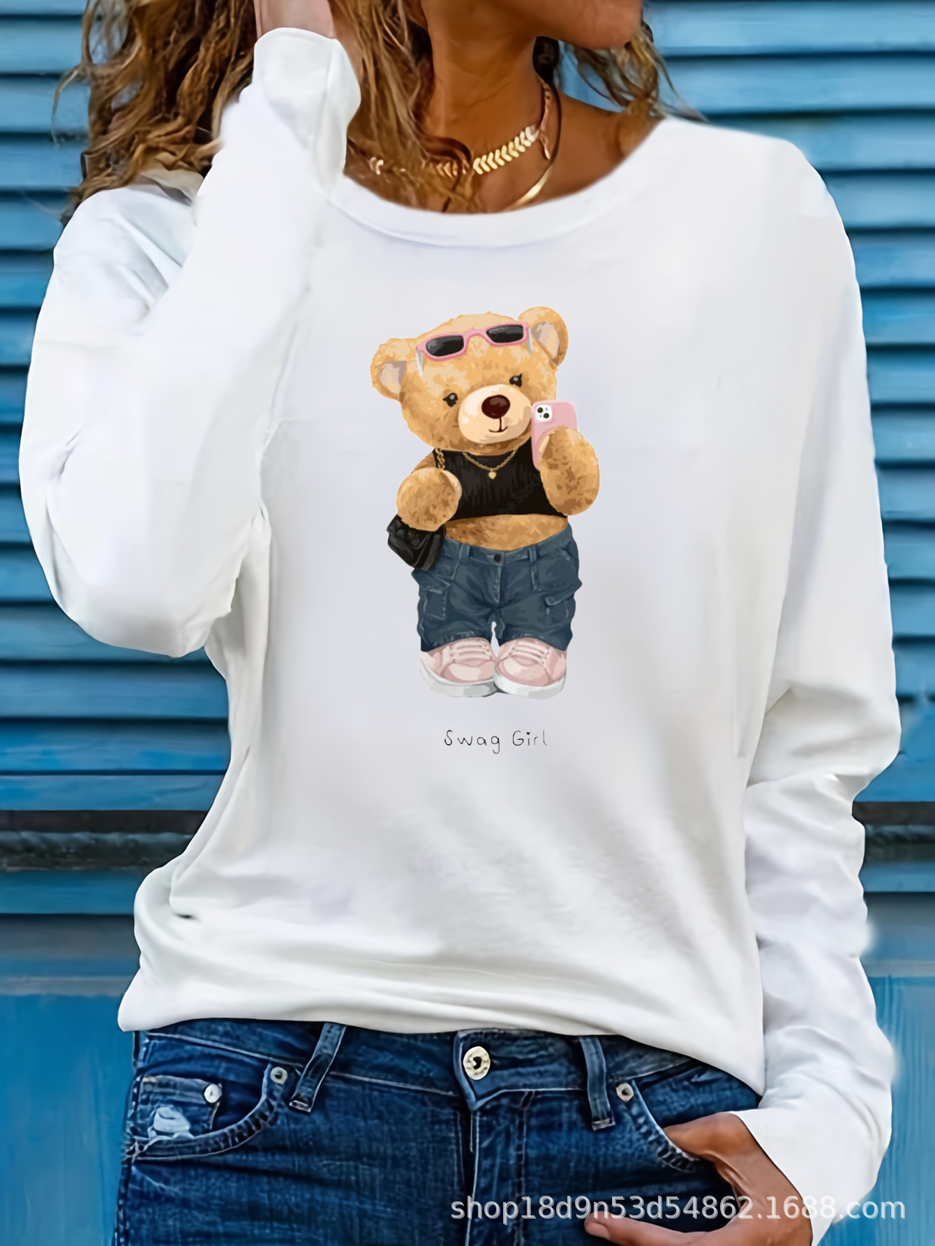 外贸现货印花T恤长袖女装秋冬跨境新款时尚休闲圆领长袖T恤上衣女