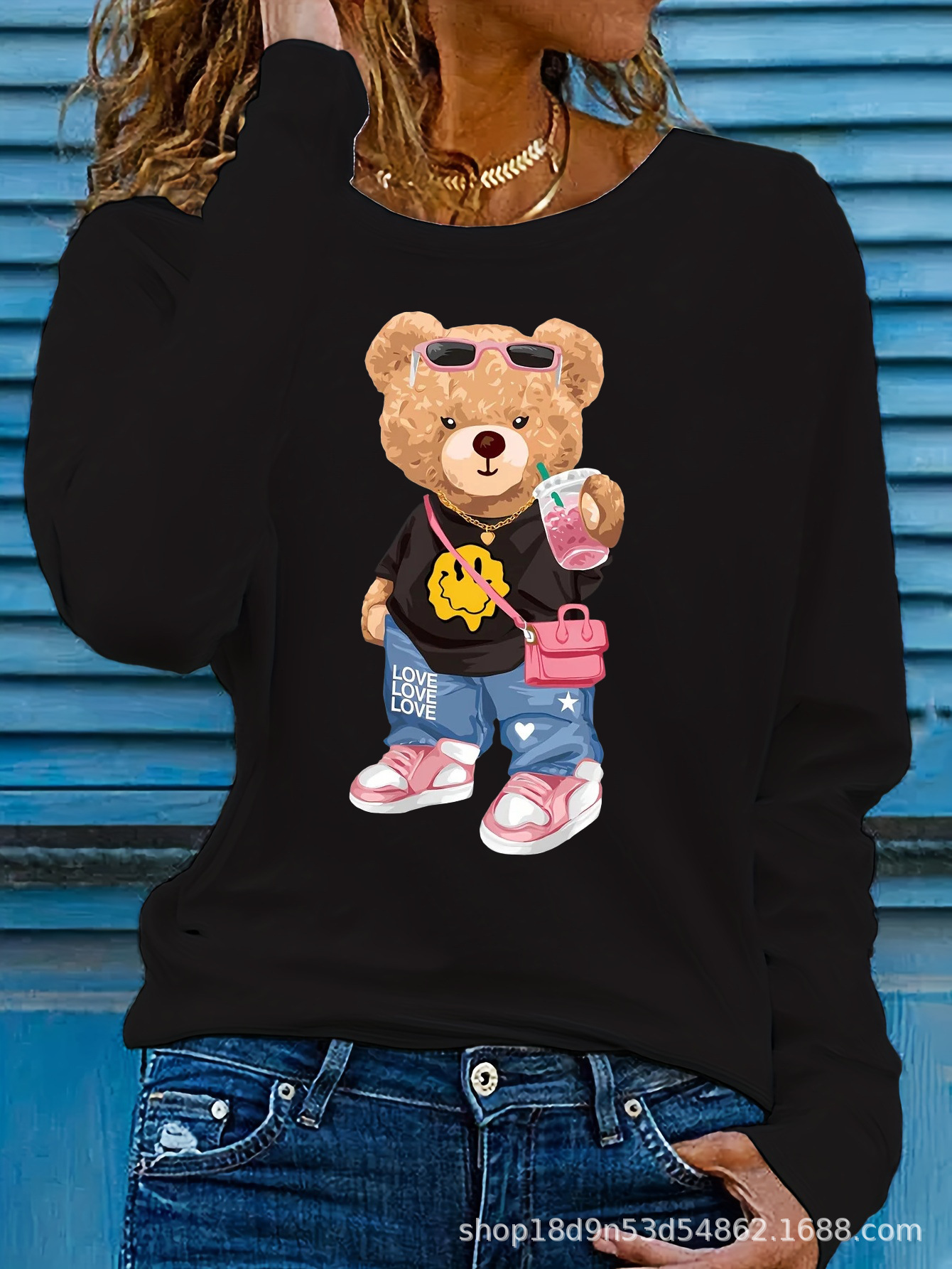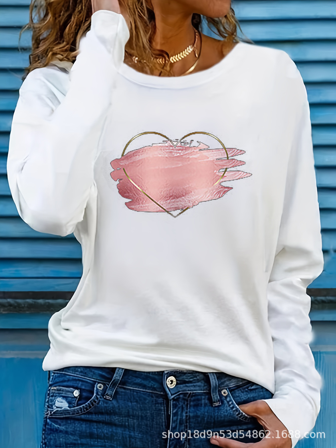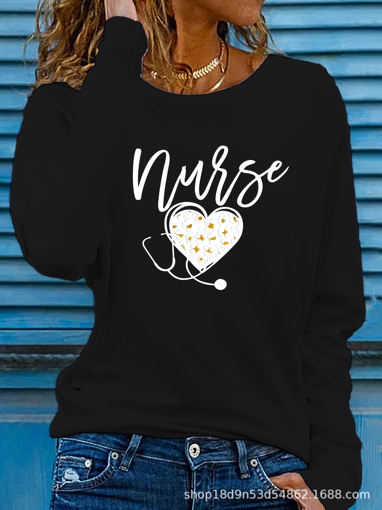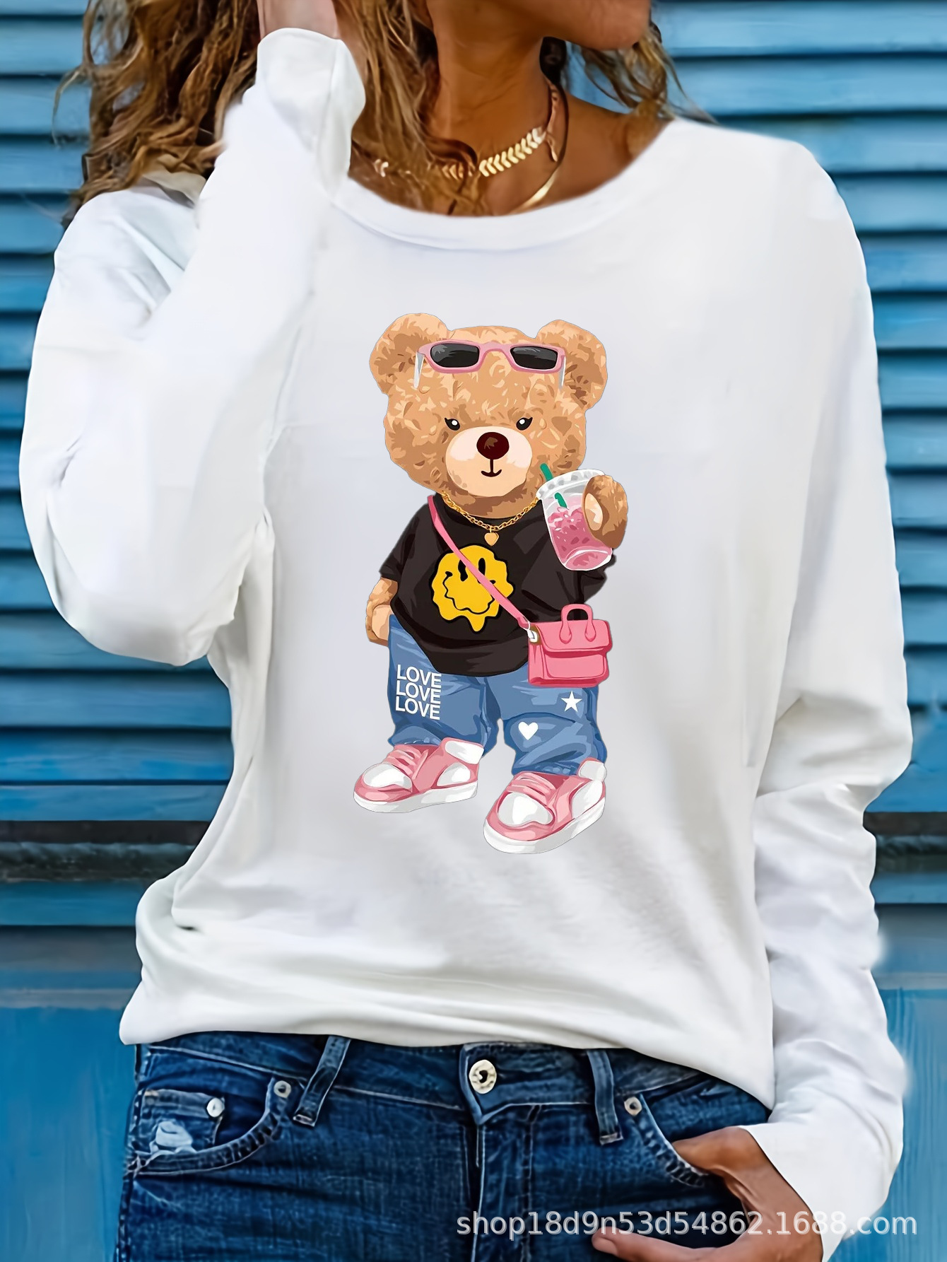 外贸现货印花T恤长袖女装秋冬跨境新款时尚休闲圆领长袖T恤上衣女