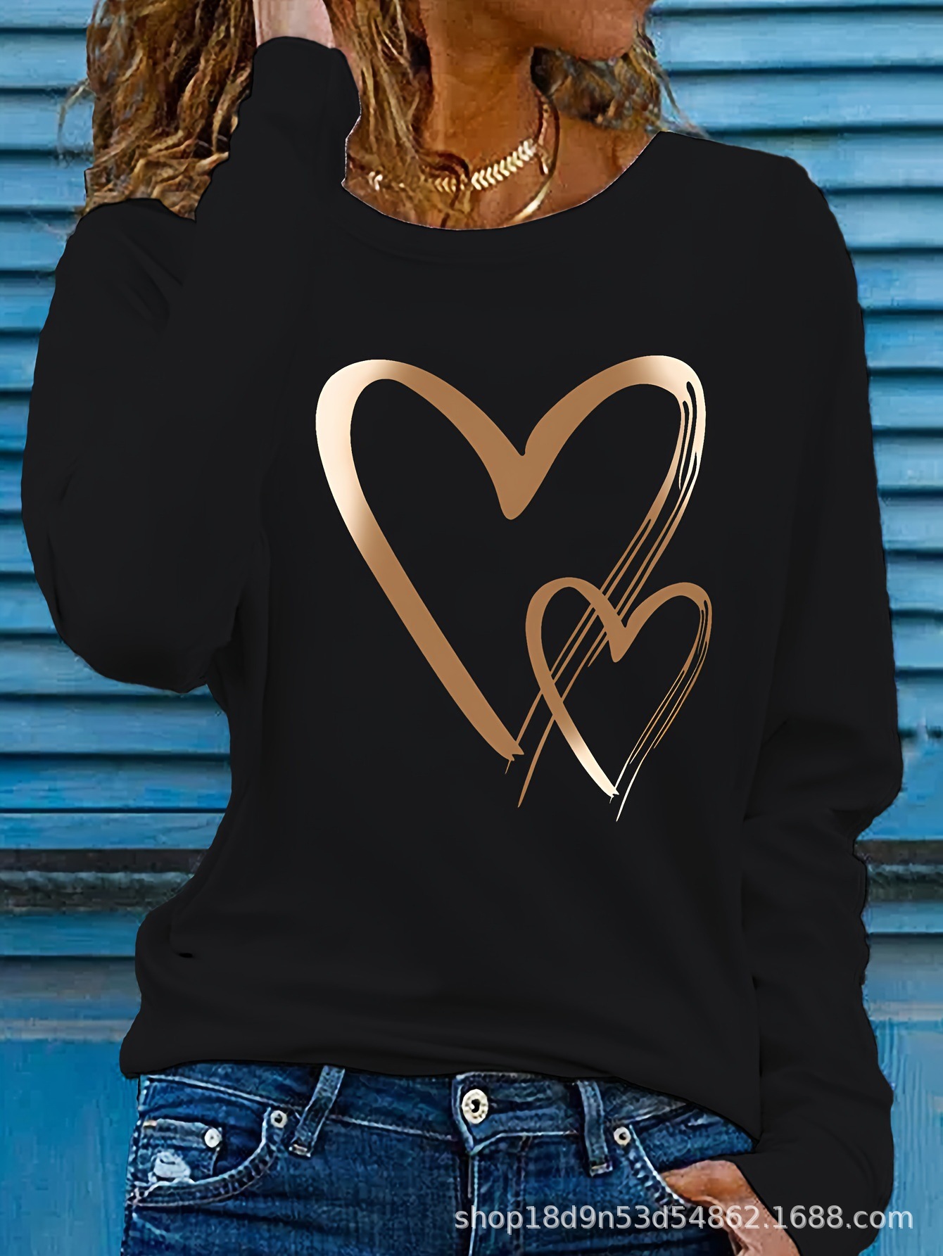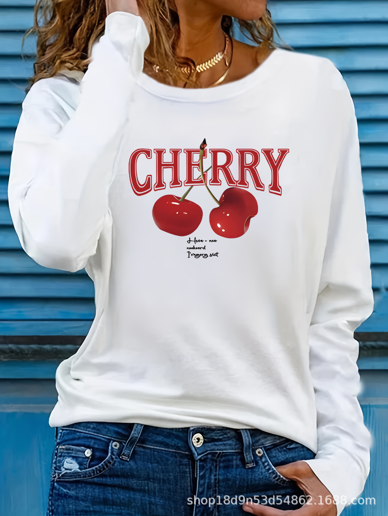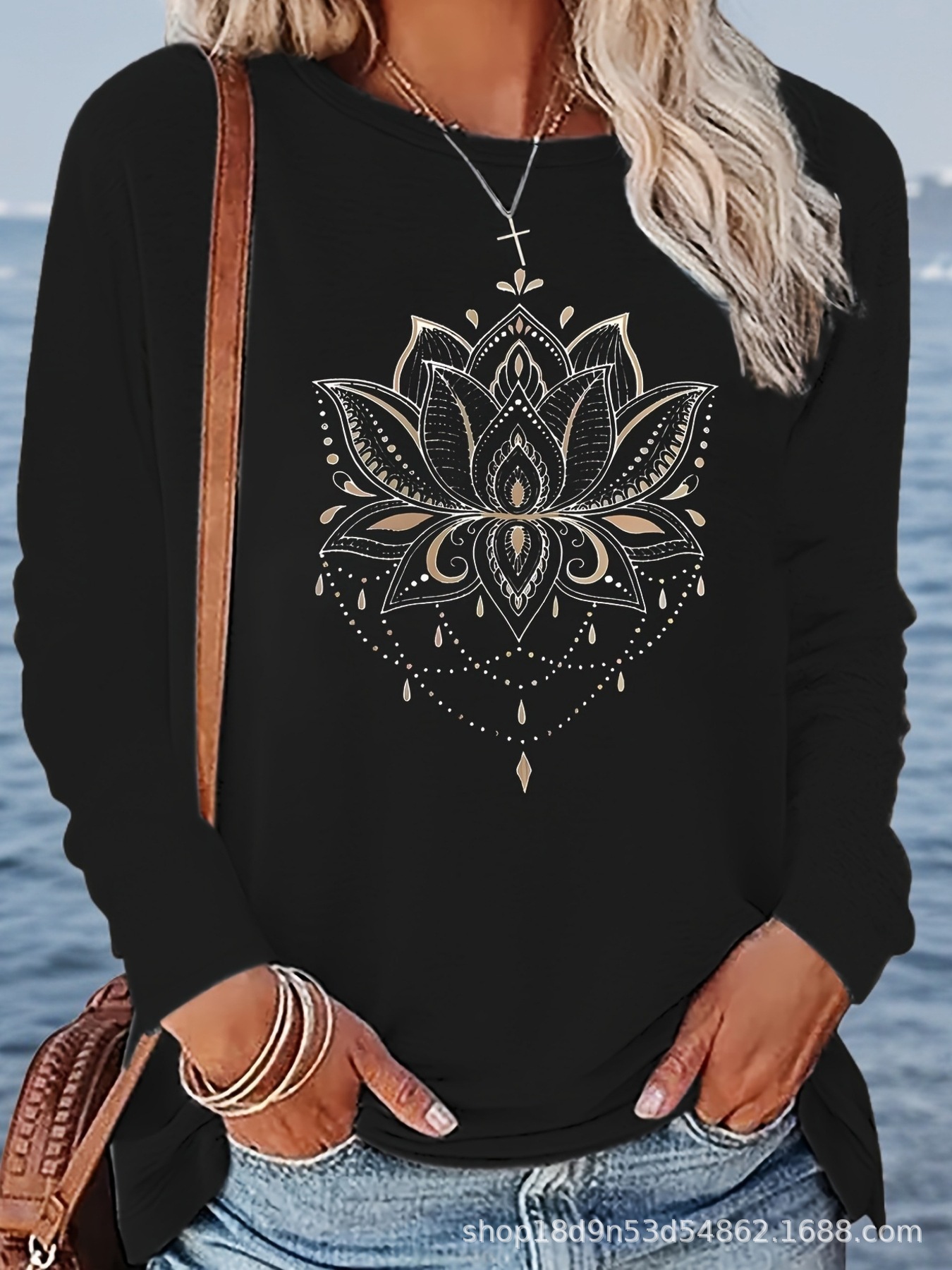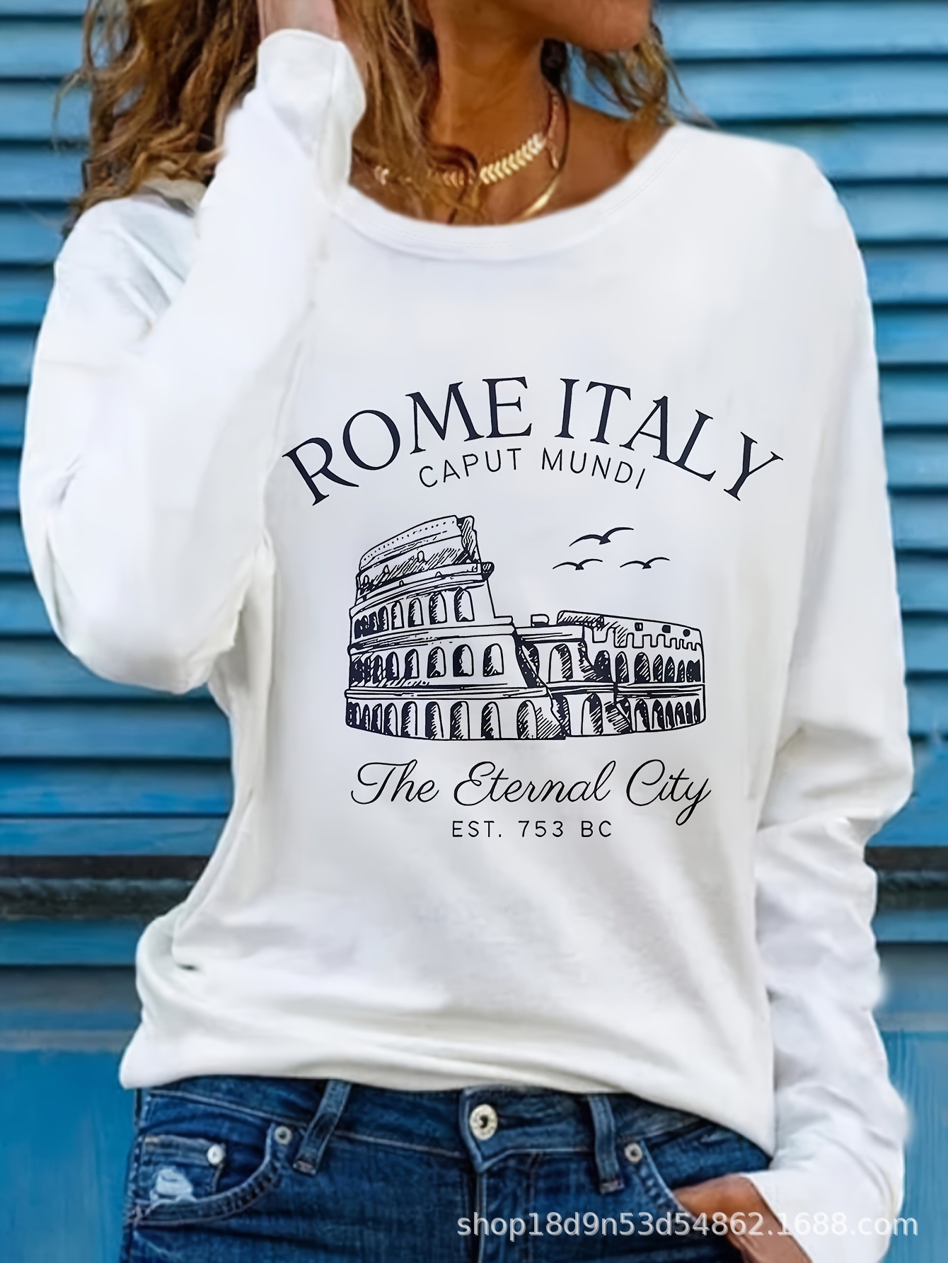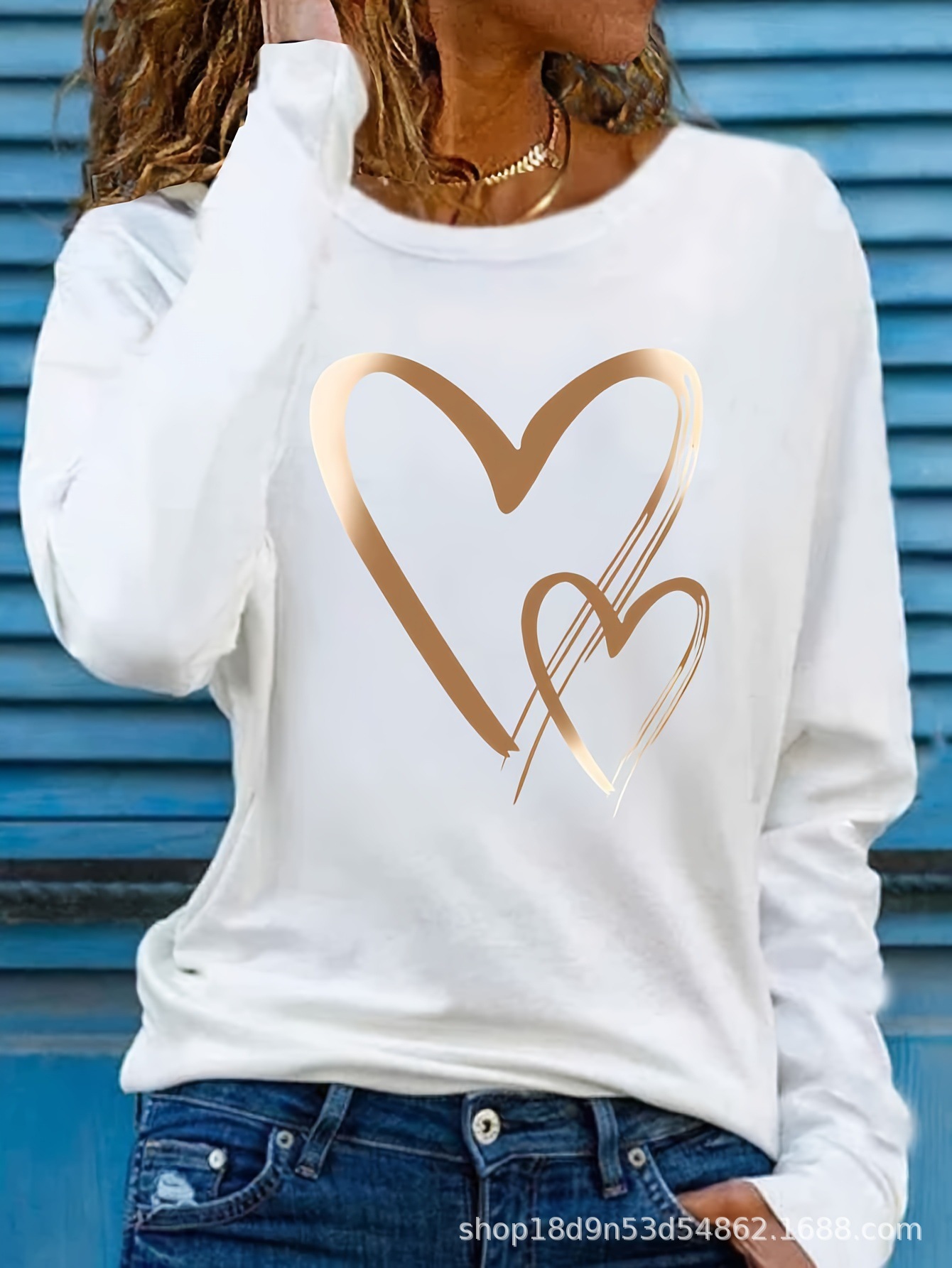 外贸现货印花T恤长袖女装秋冬跨境新款时尚休闲圆领长袖T恤上衣女