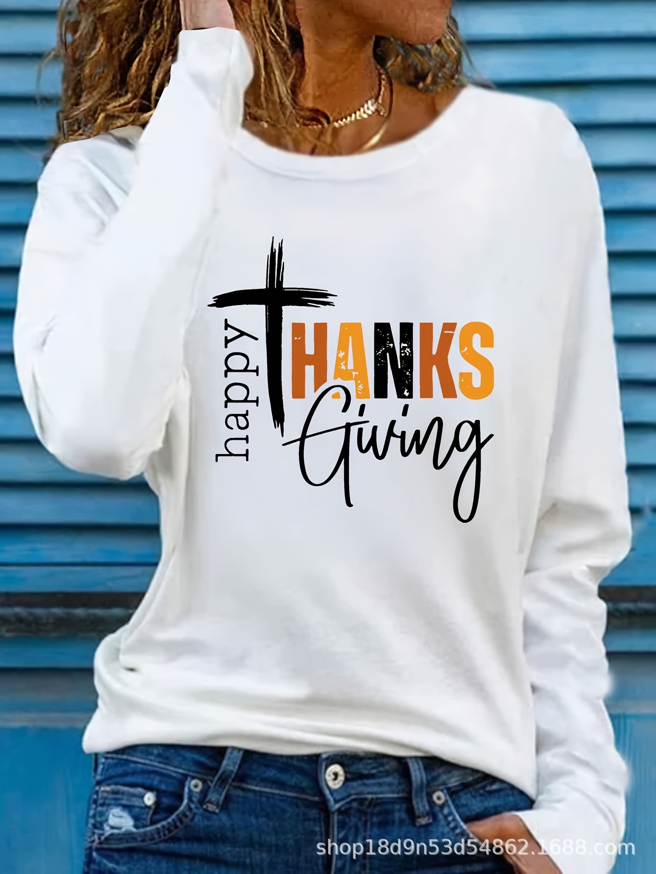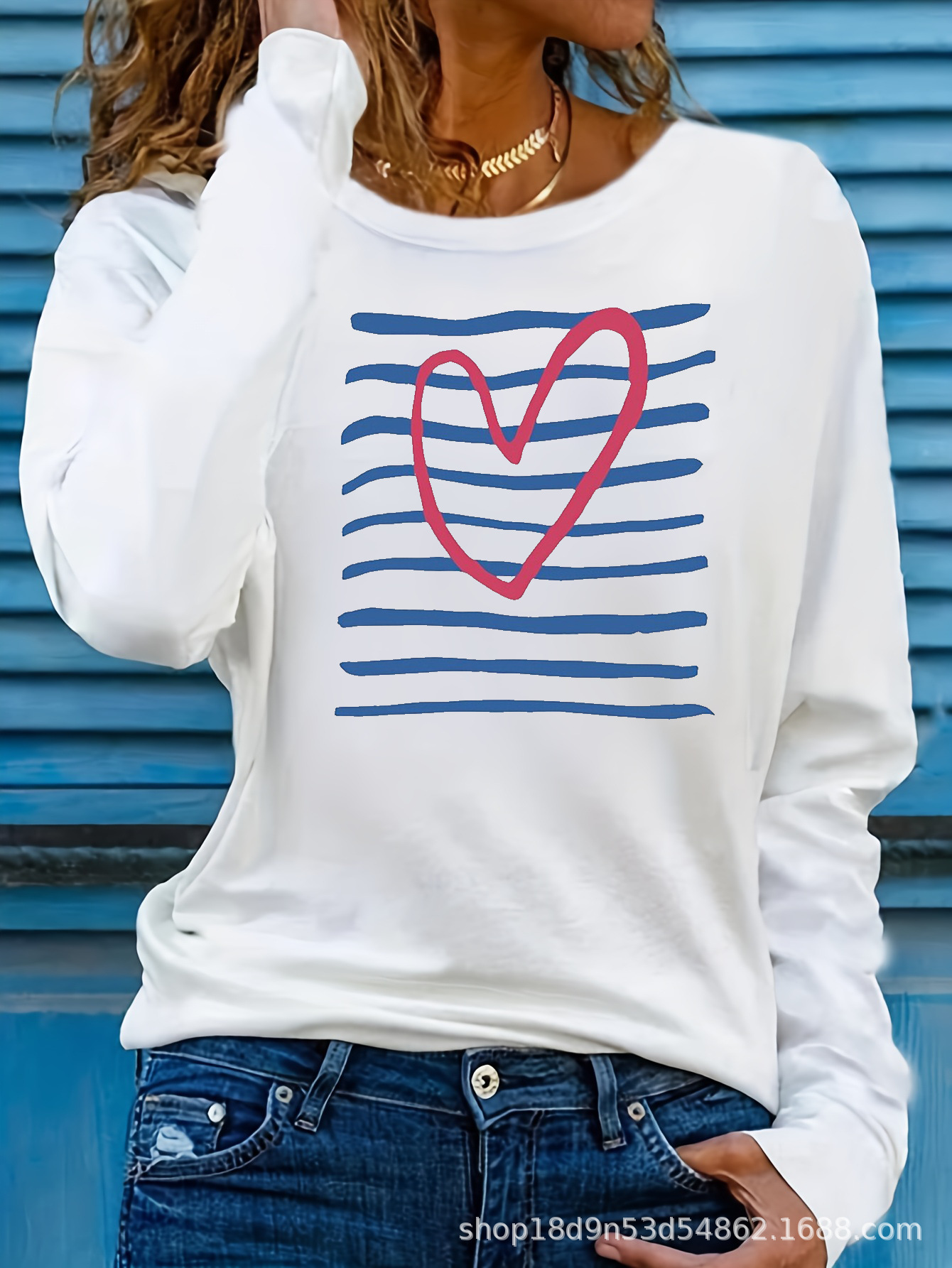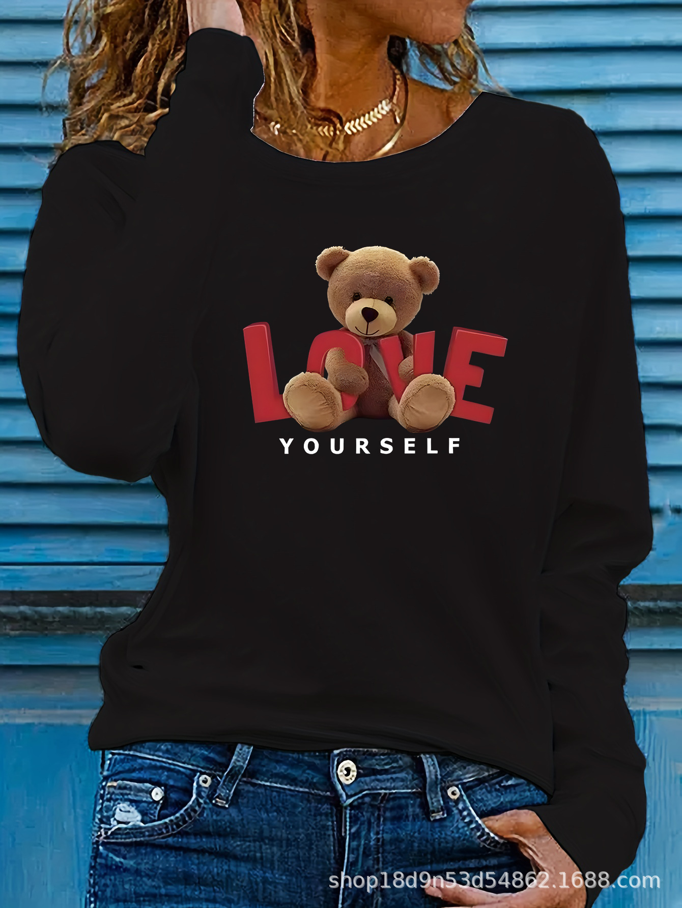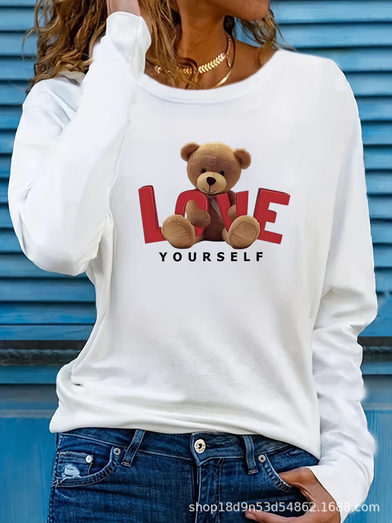 外贸现货印花T恤长袖女装秋冬跨境新款时尚休闲圆领长袖T恤上衣女