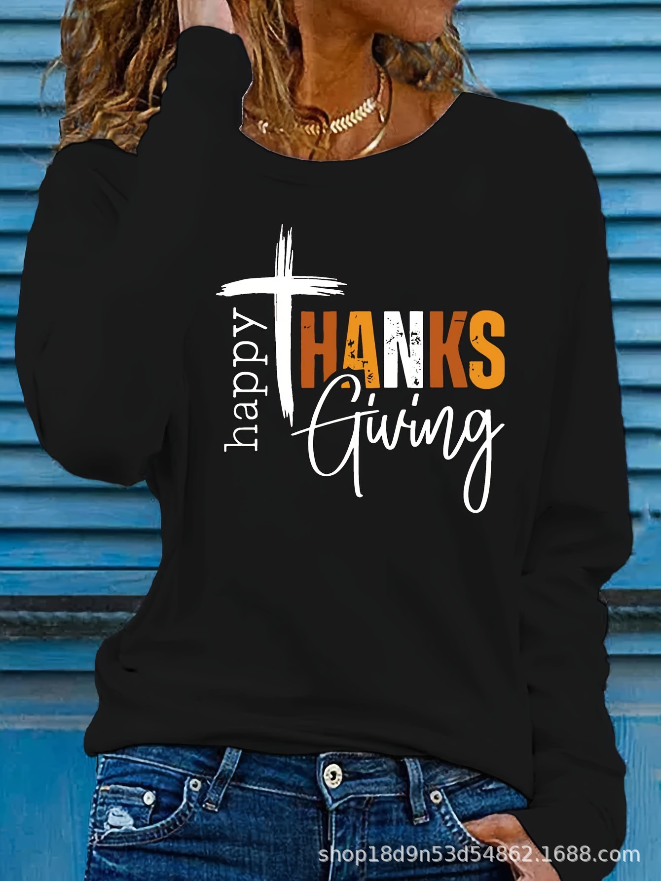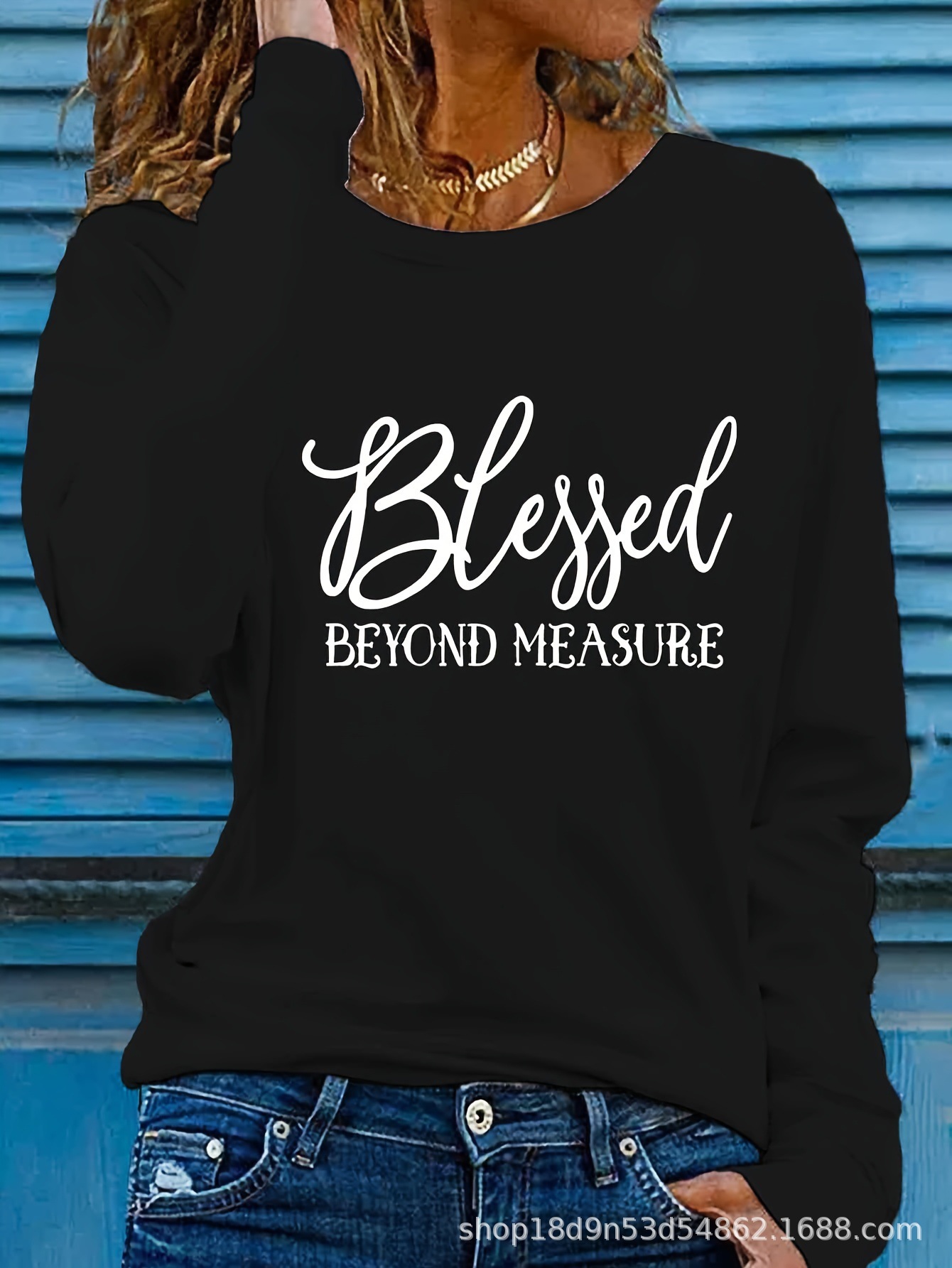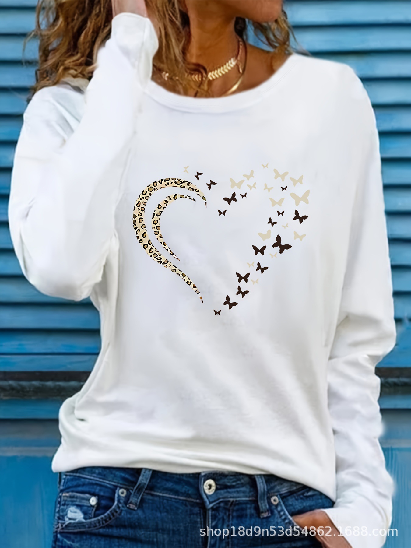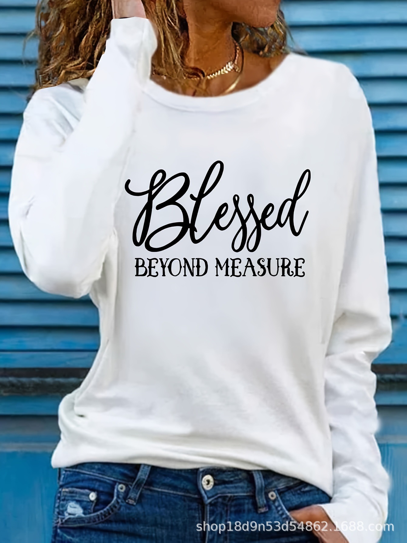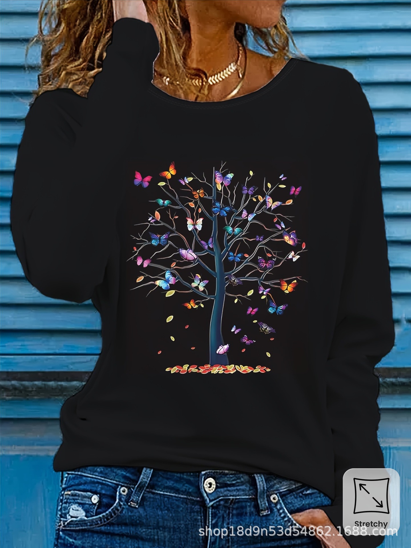 外贸现货印花T恤长袖女装秋冬跨境新款时尚休闲圆领长袖T恤上衣女