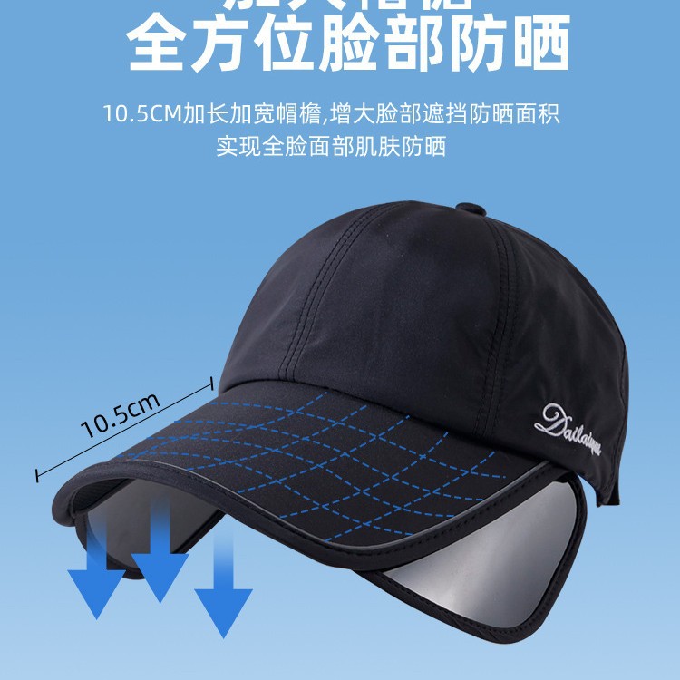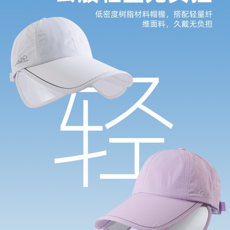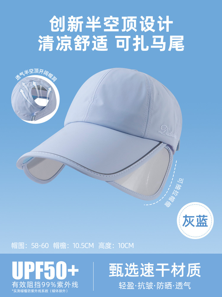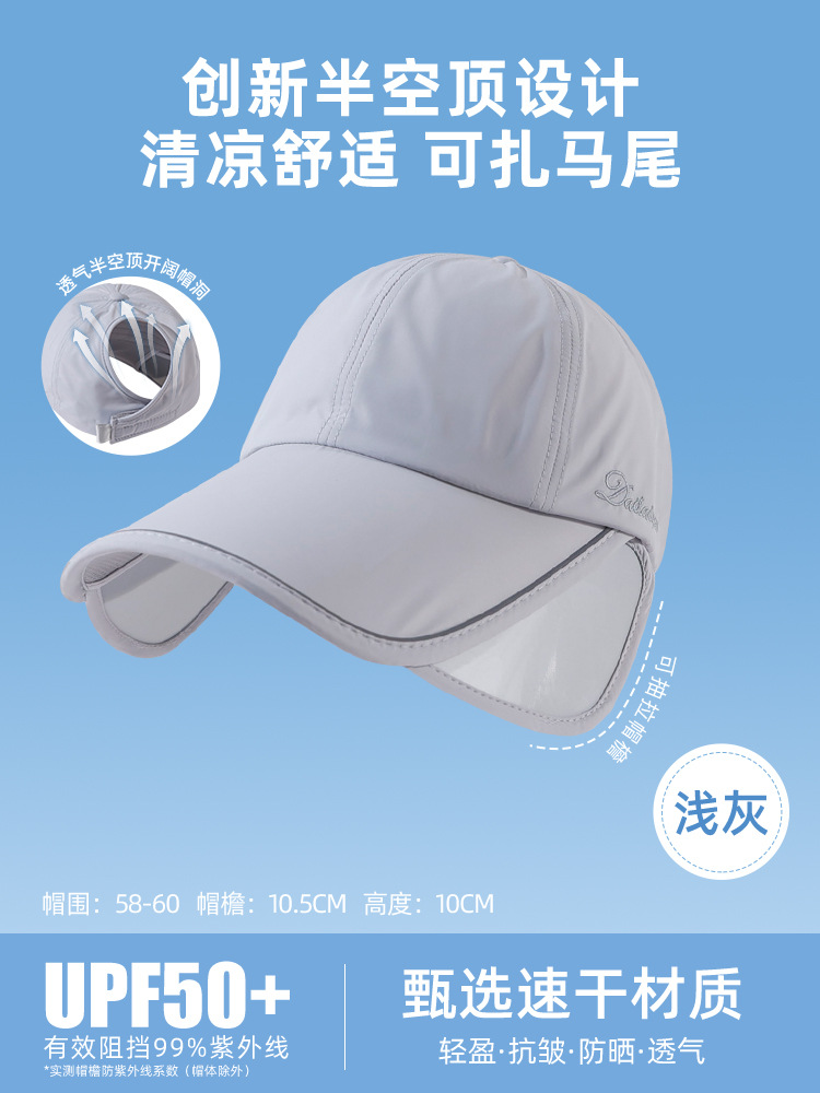 夏季防晒帽女加大加宽帽檐户外运动遮全脸空顶鸭舌帽扎马尾太阳帽