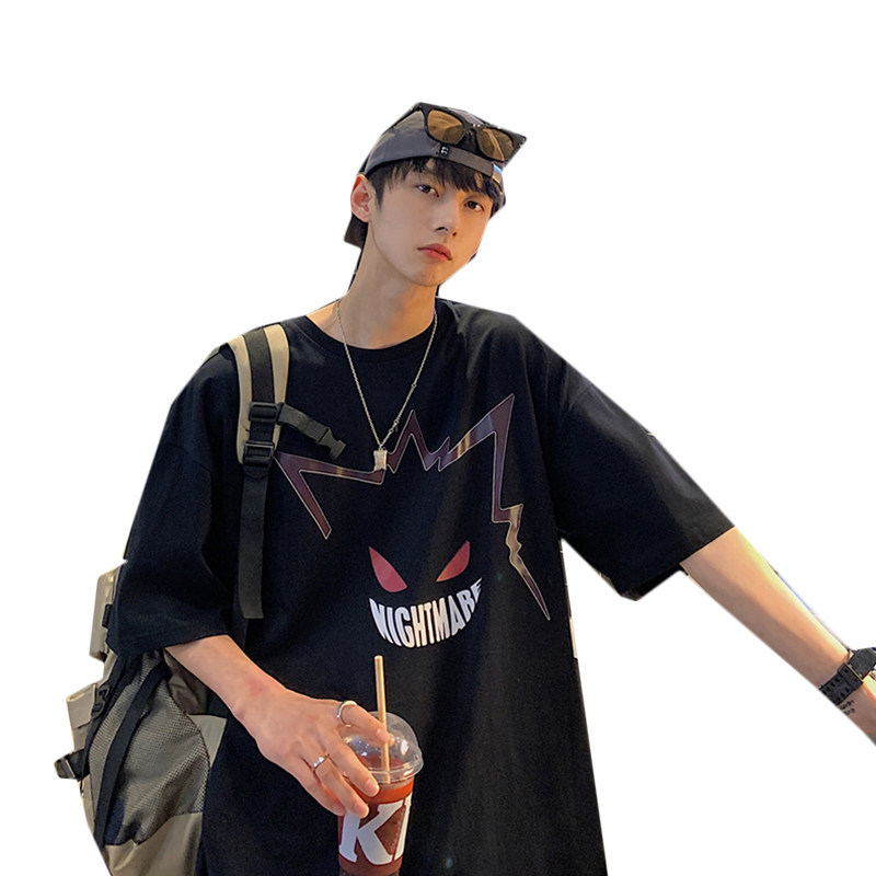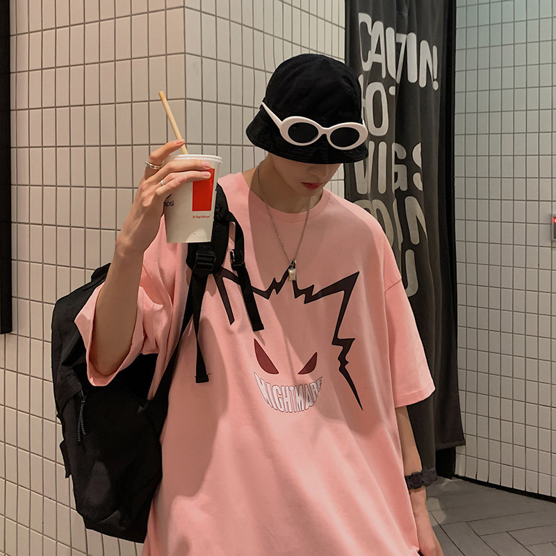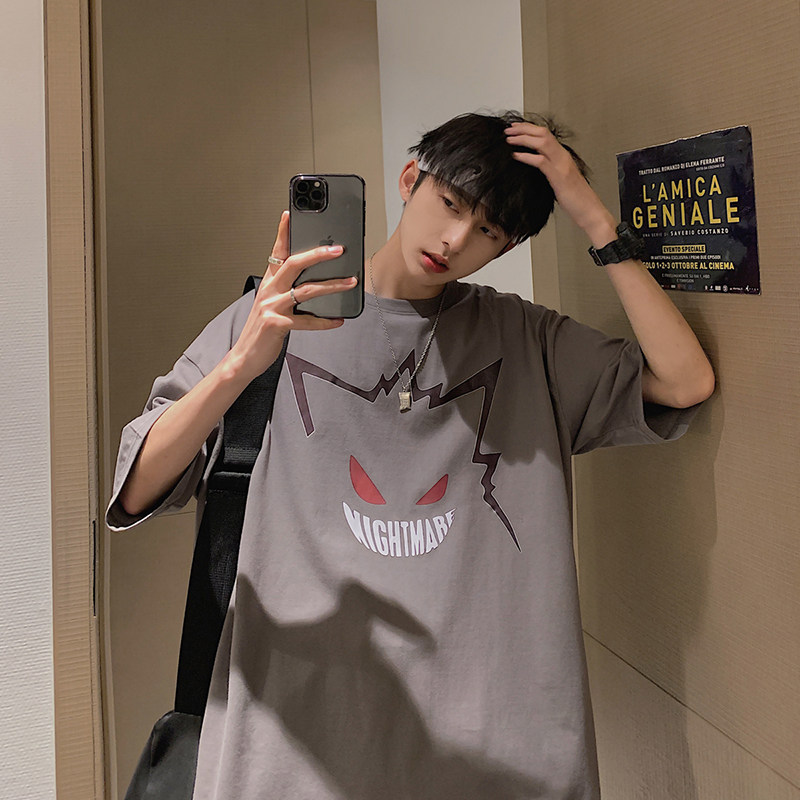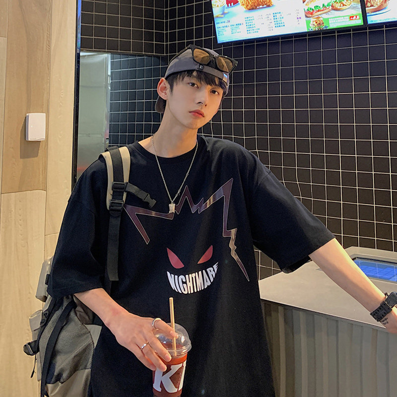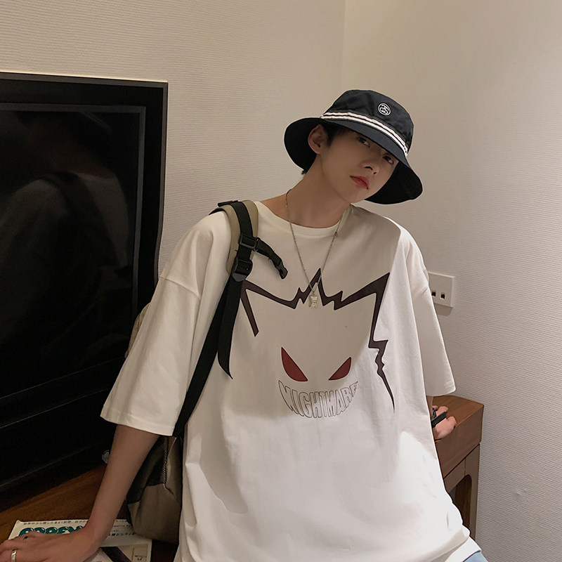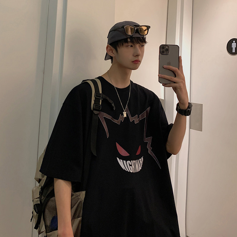 2023新款短袖t恤男ins潮牌宽松半袖潮流bf百搭港风卡通印花五分袖